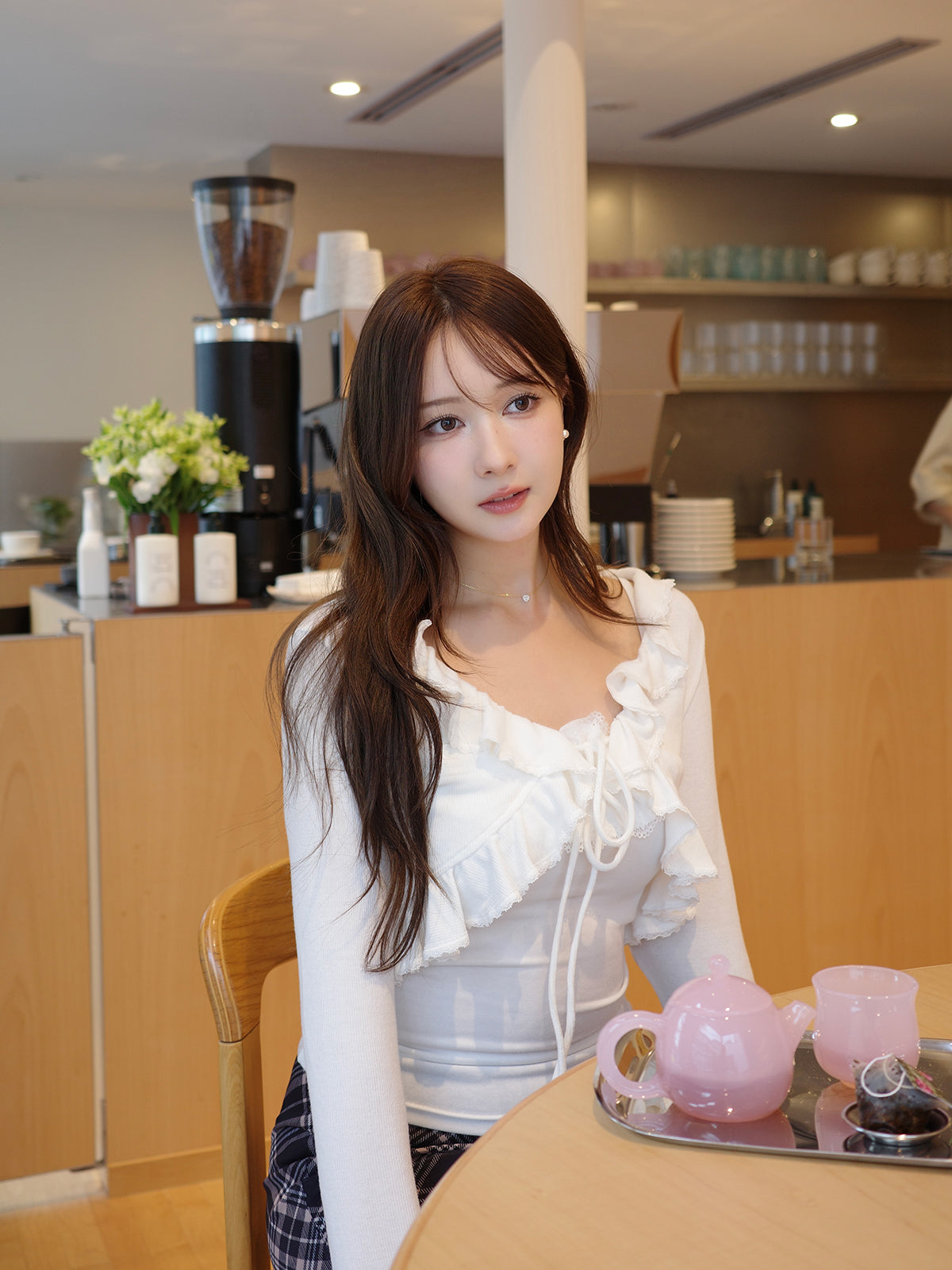 グレーとホワイトの2カラー展開で、甘さと上品さを兼ね備えたコーディネートを楽しめます。