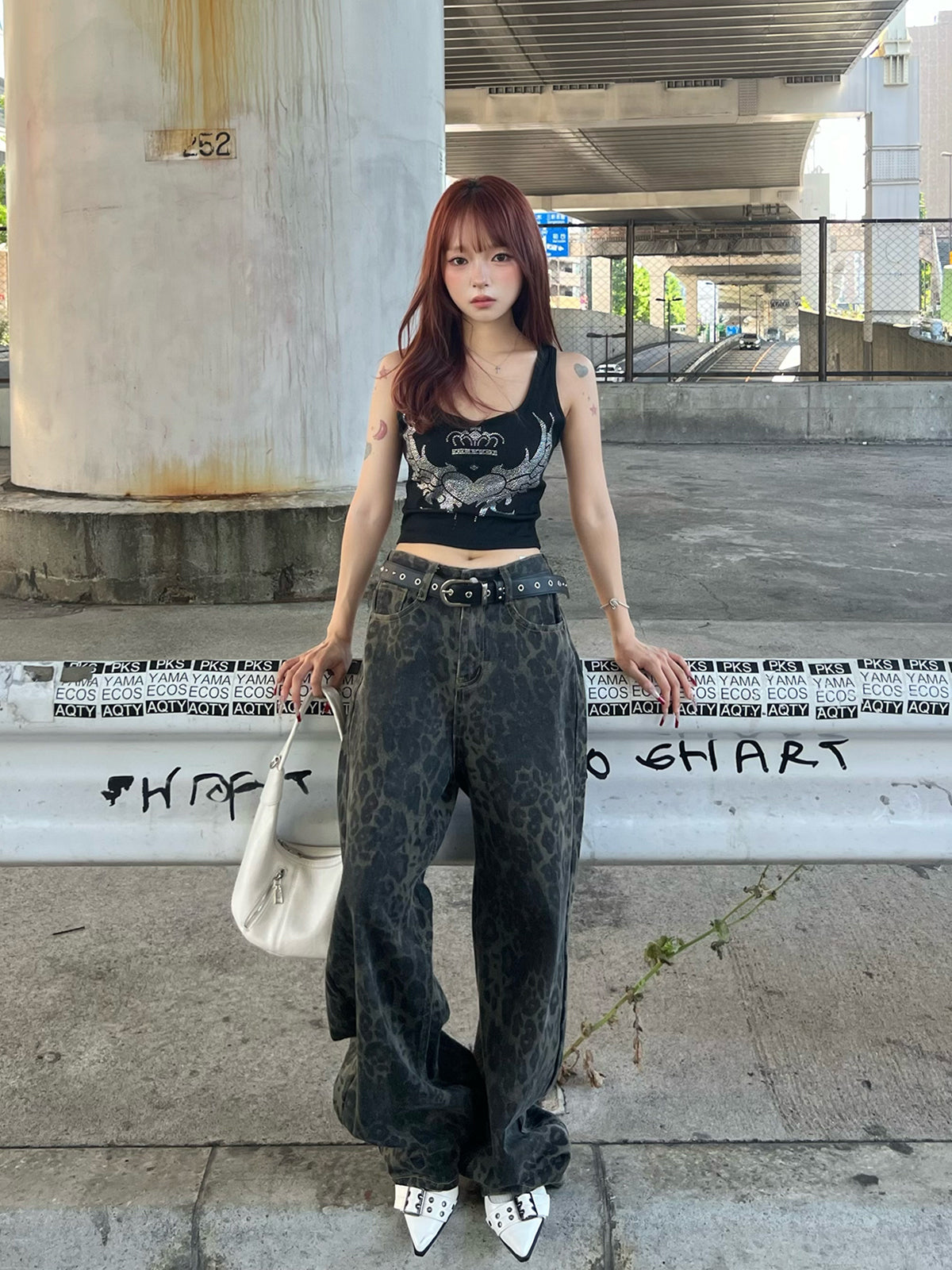 Leopard Wide Denim Pants