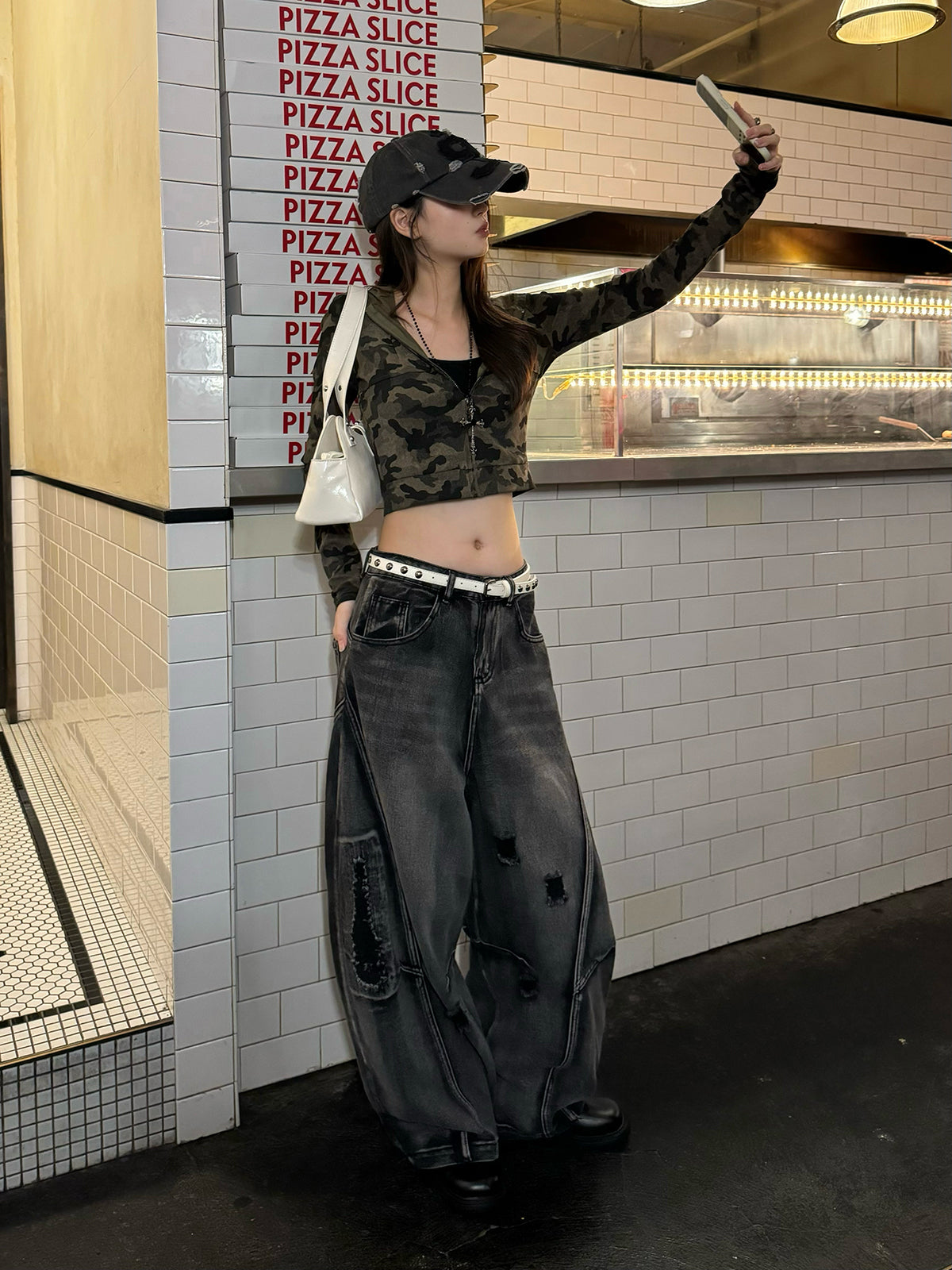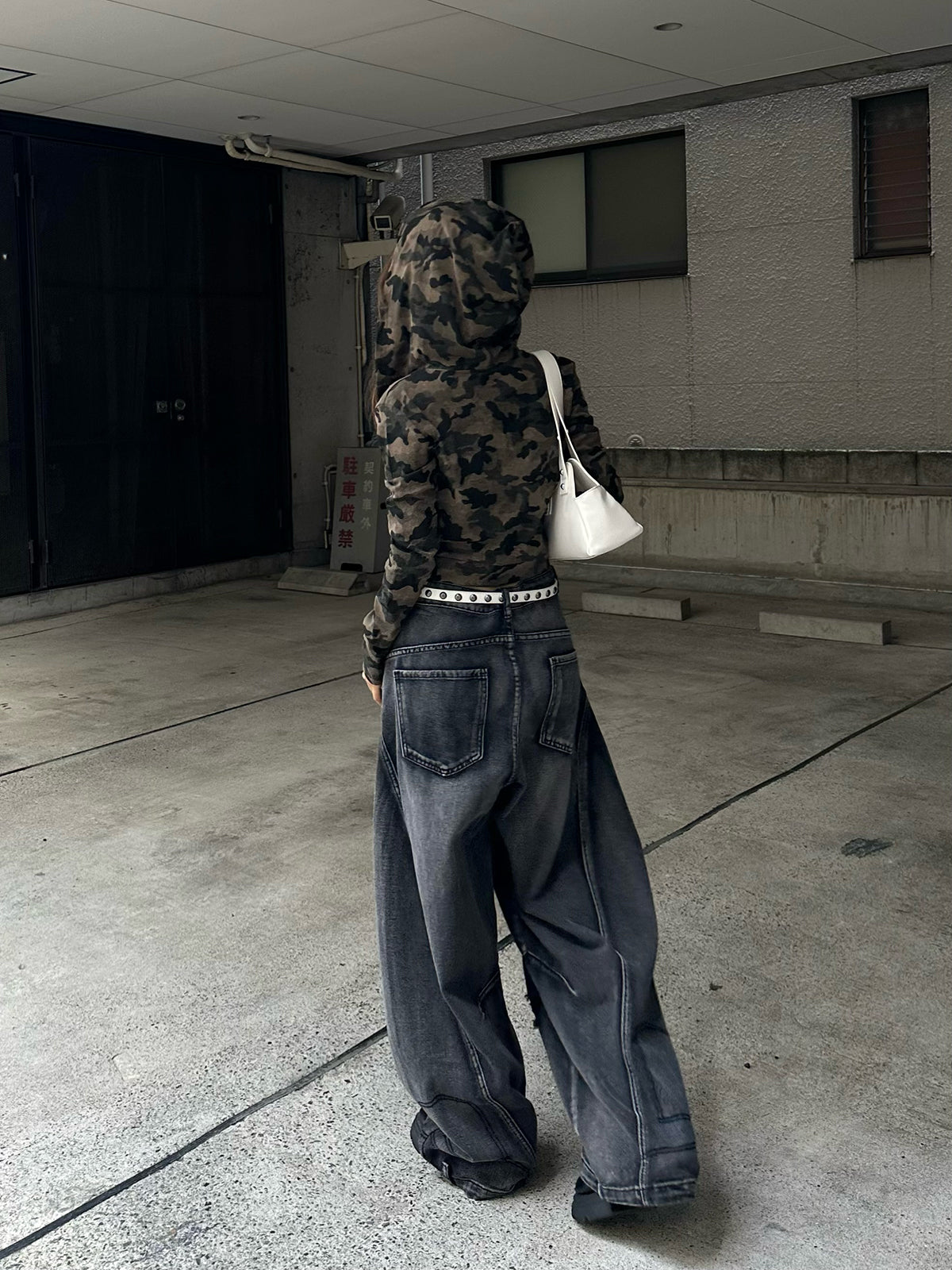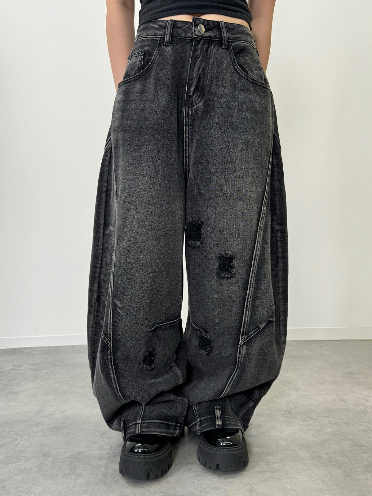 丸みのあるシルエットとたっぷりのボリューム感が魅力のデニムパンツ。