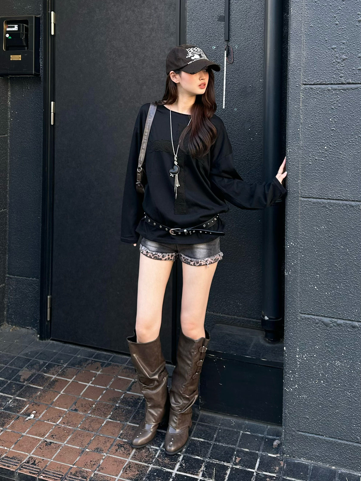 ・レオパードカフデニムショートパンツ