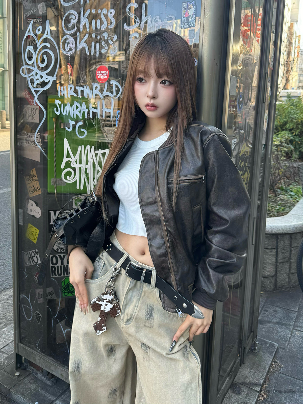 やや短めの着丈がバランスを取りやすく、全体をすっきりと見せてくれるアイテムです。