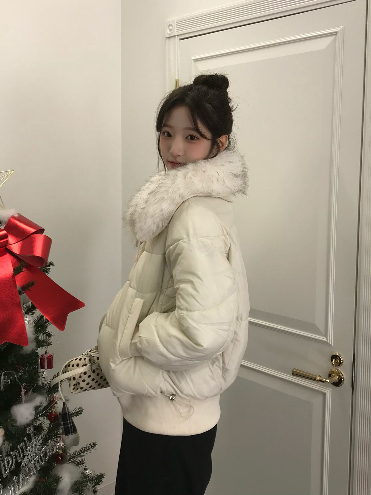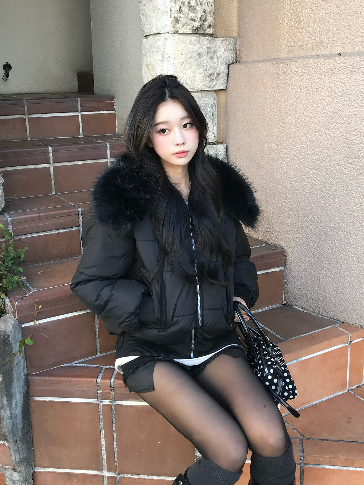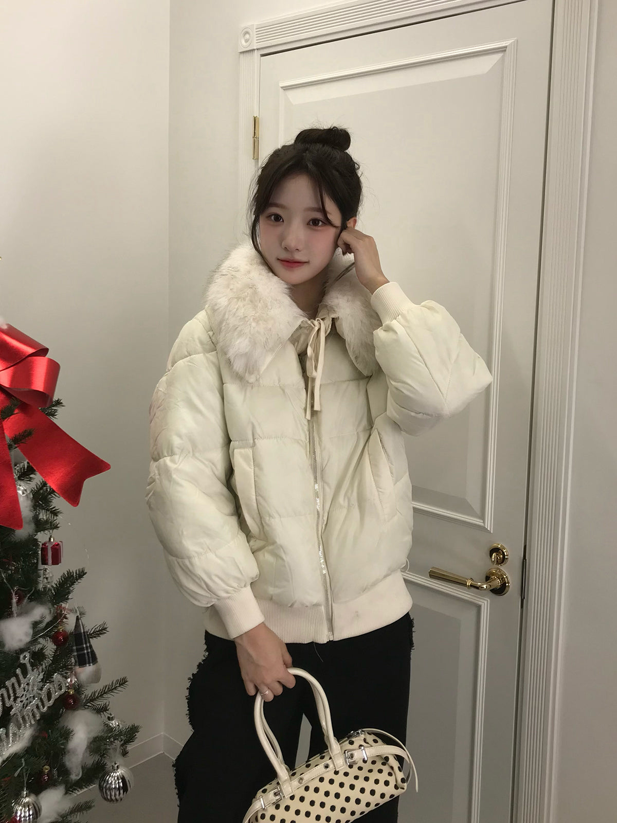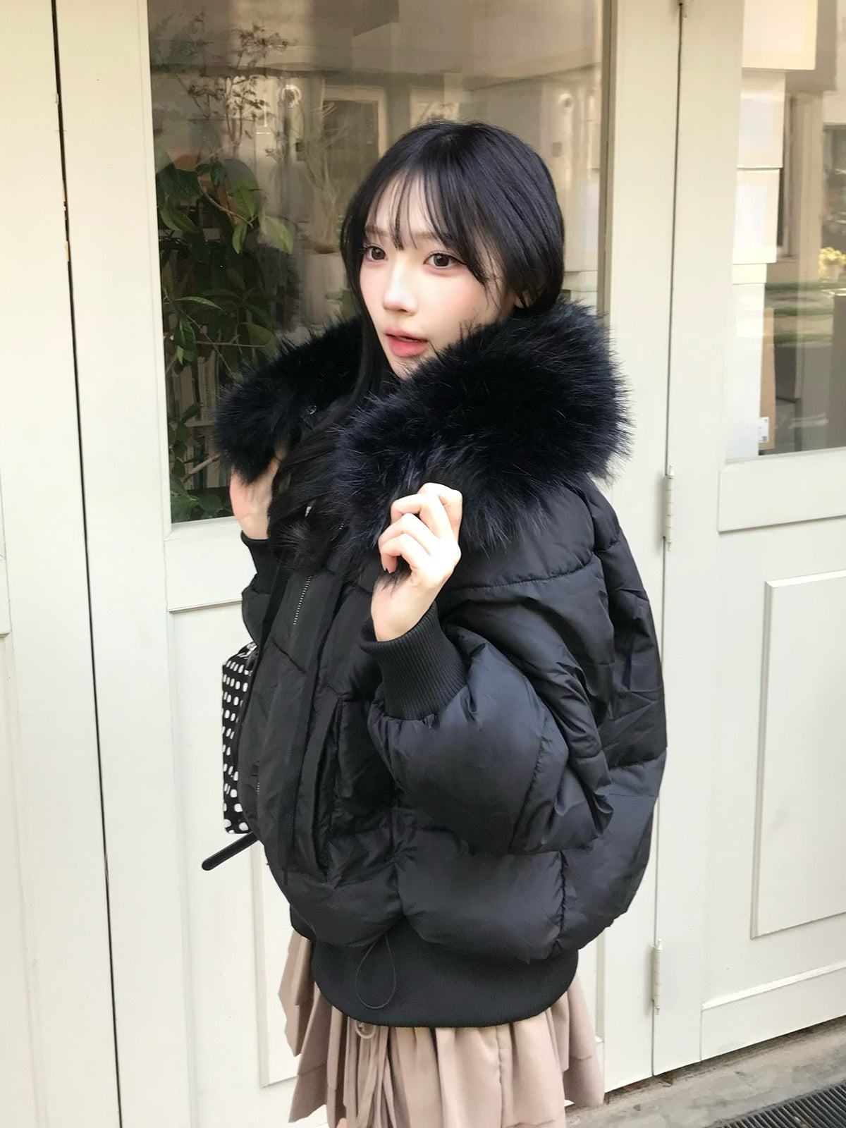 ふわふわのファータッチの襟がポイントのブルゾン。