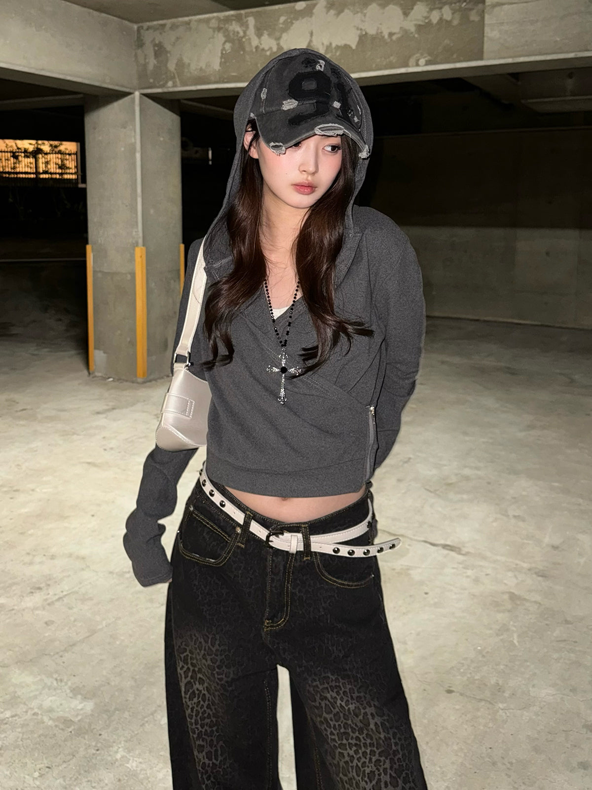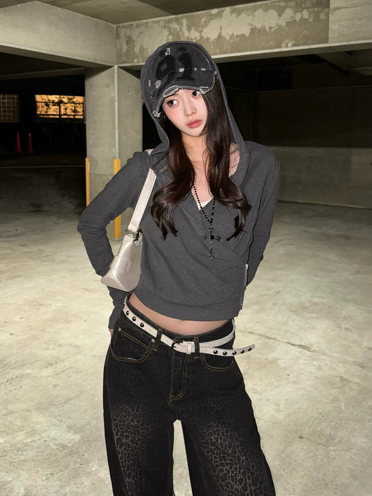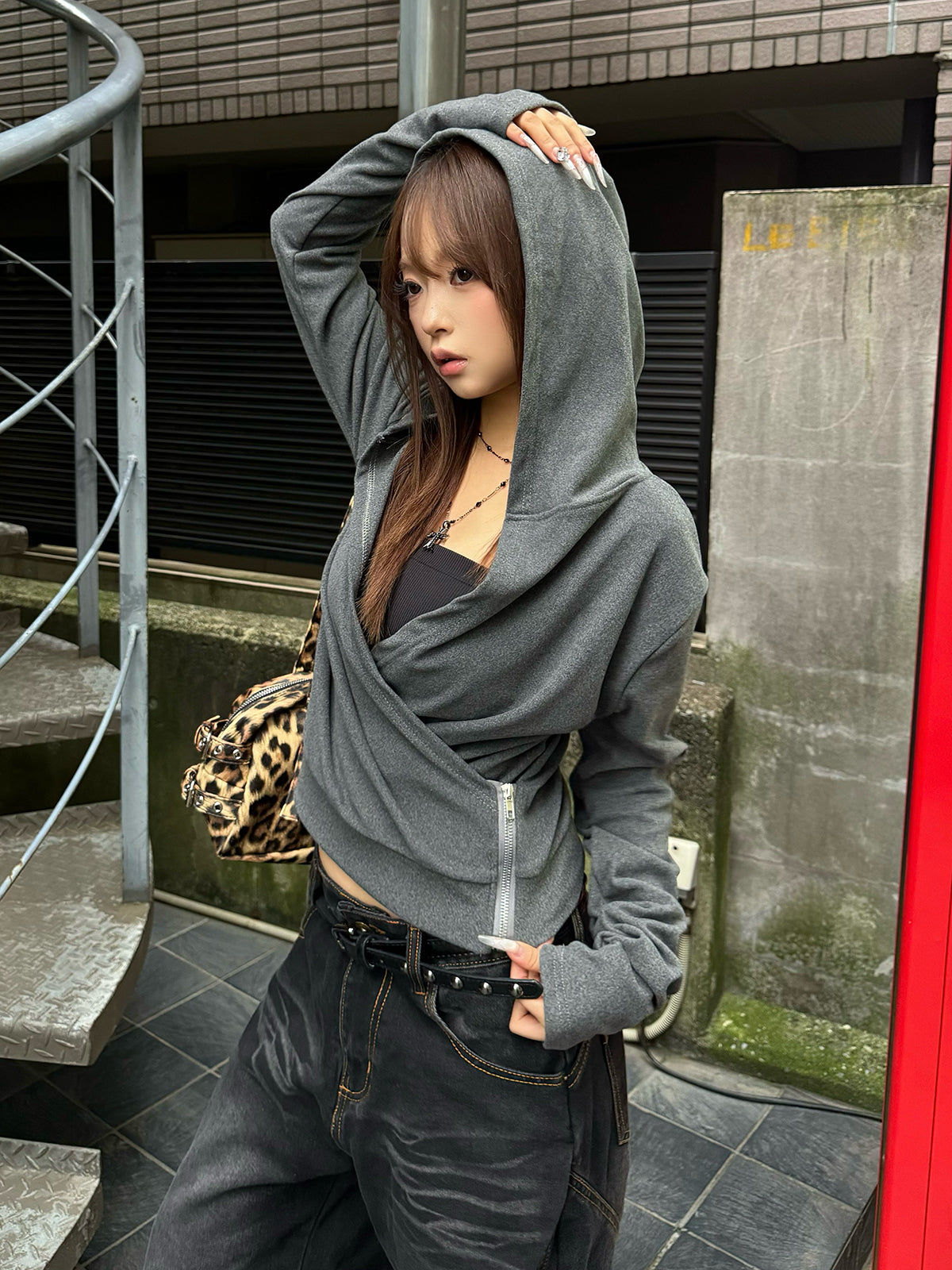 短めの丈感にカシュクールデザインを取り入れたフーディーカットソー。