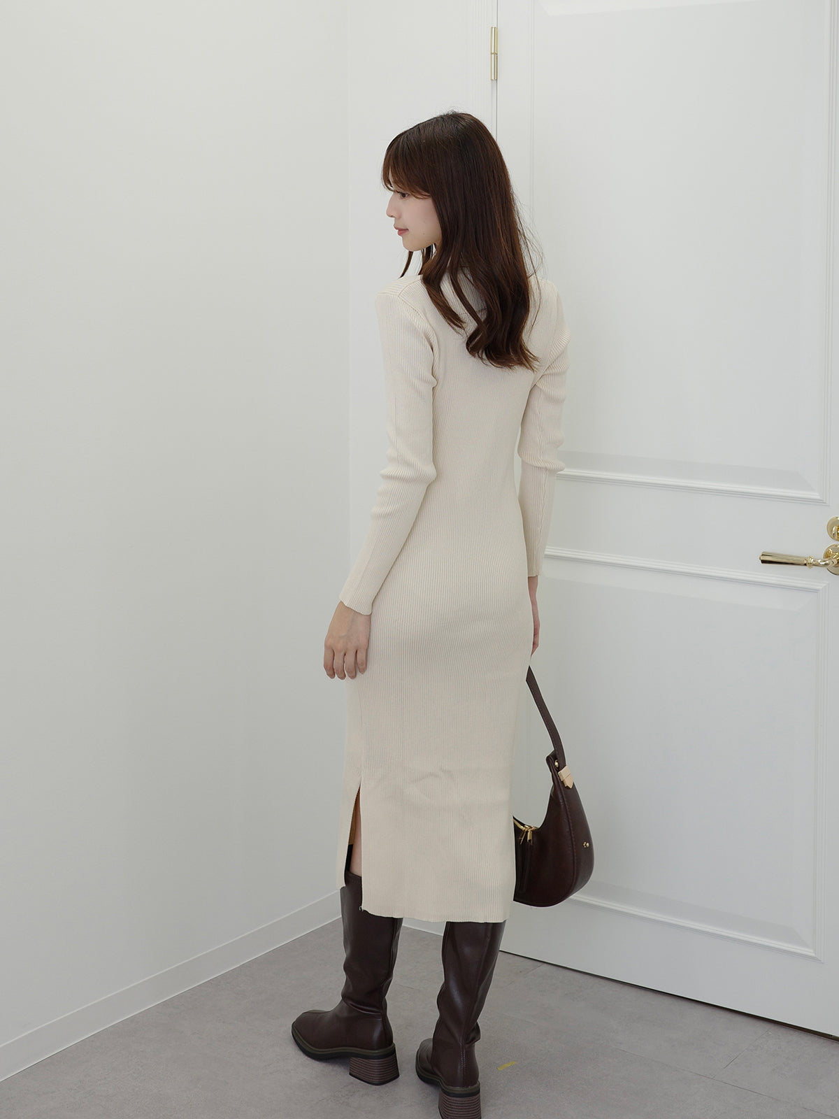 ホルターネックリブニットワンピース