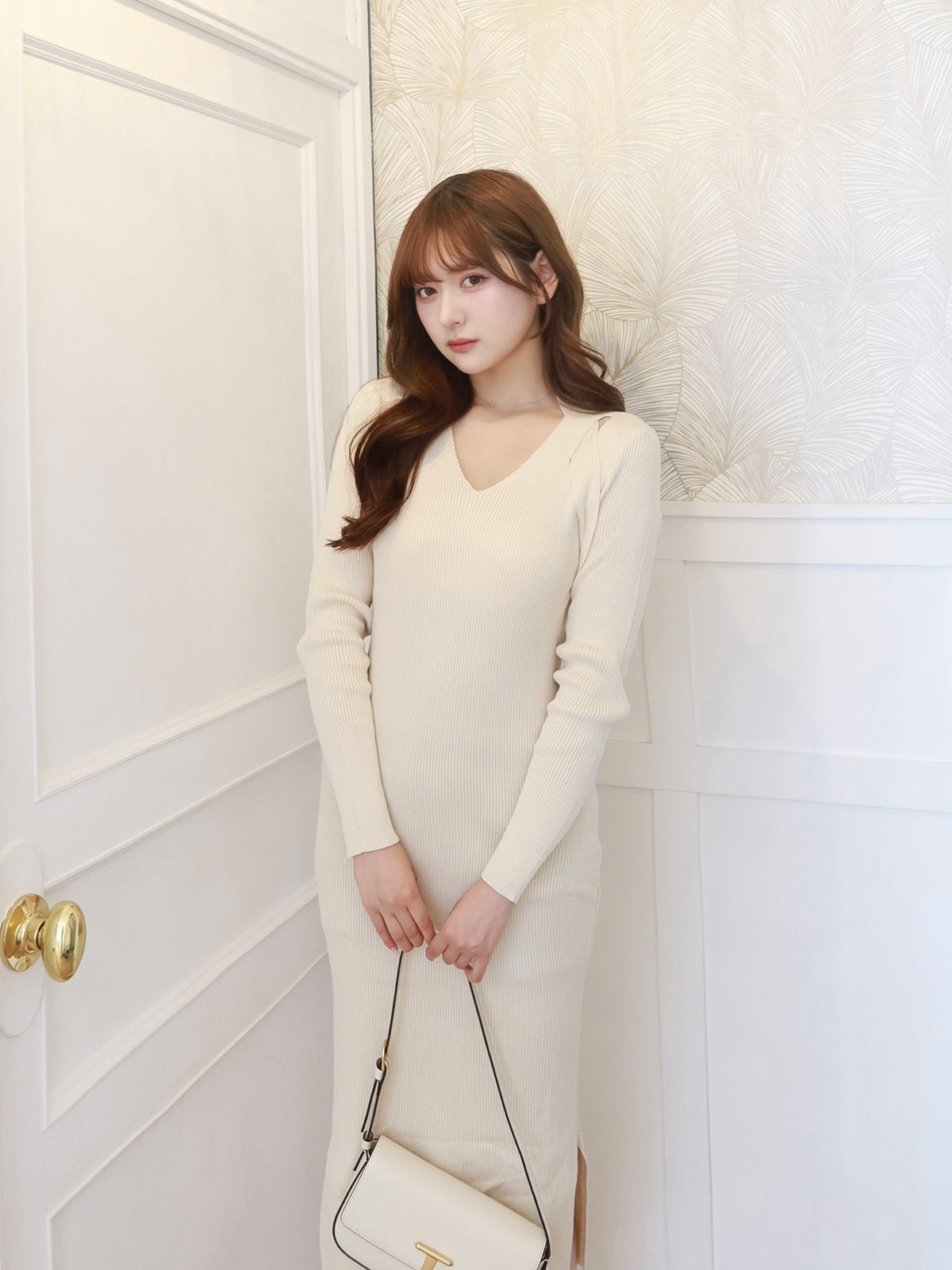 リボンオフショルリブニットワンピース