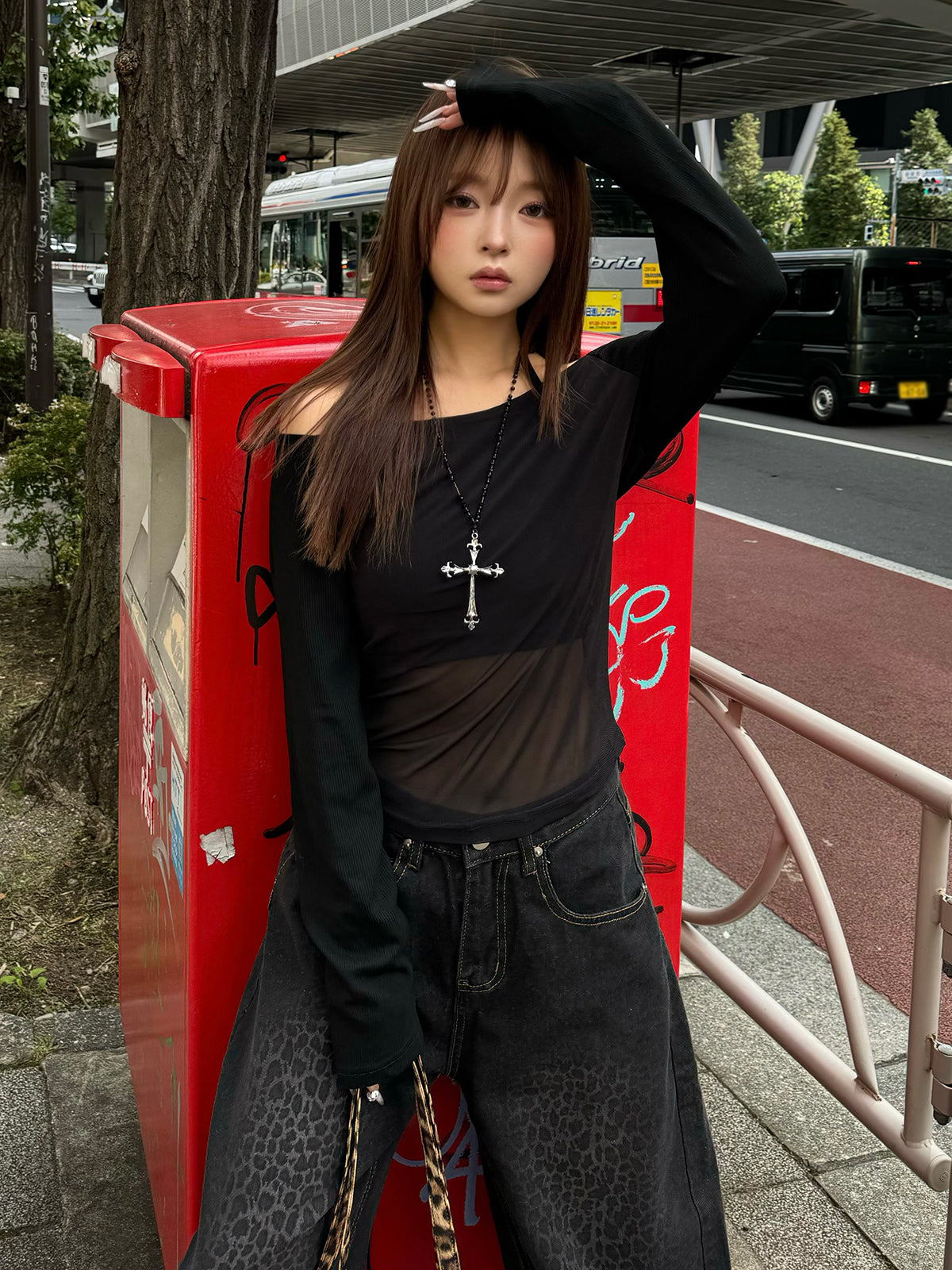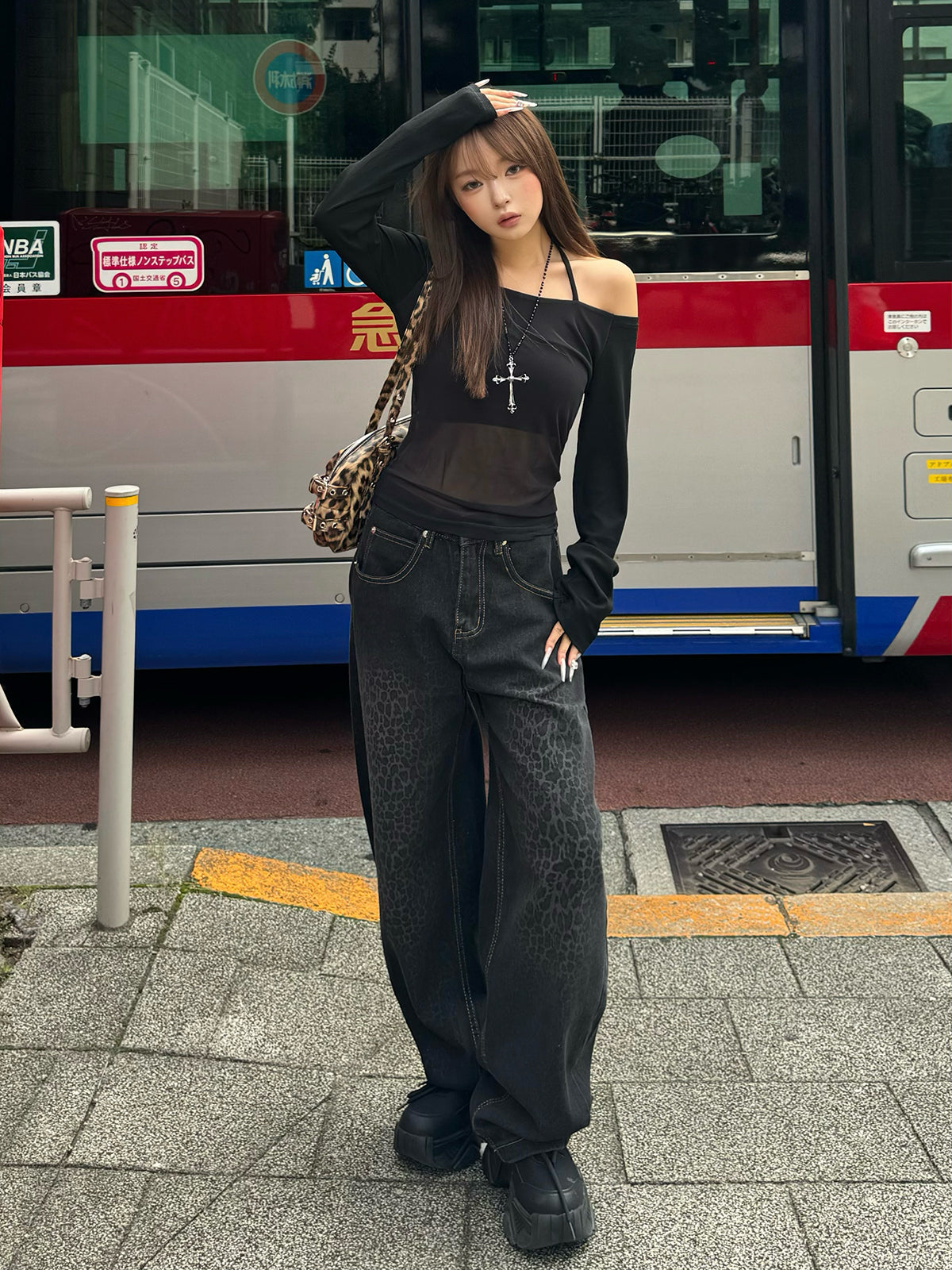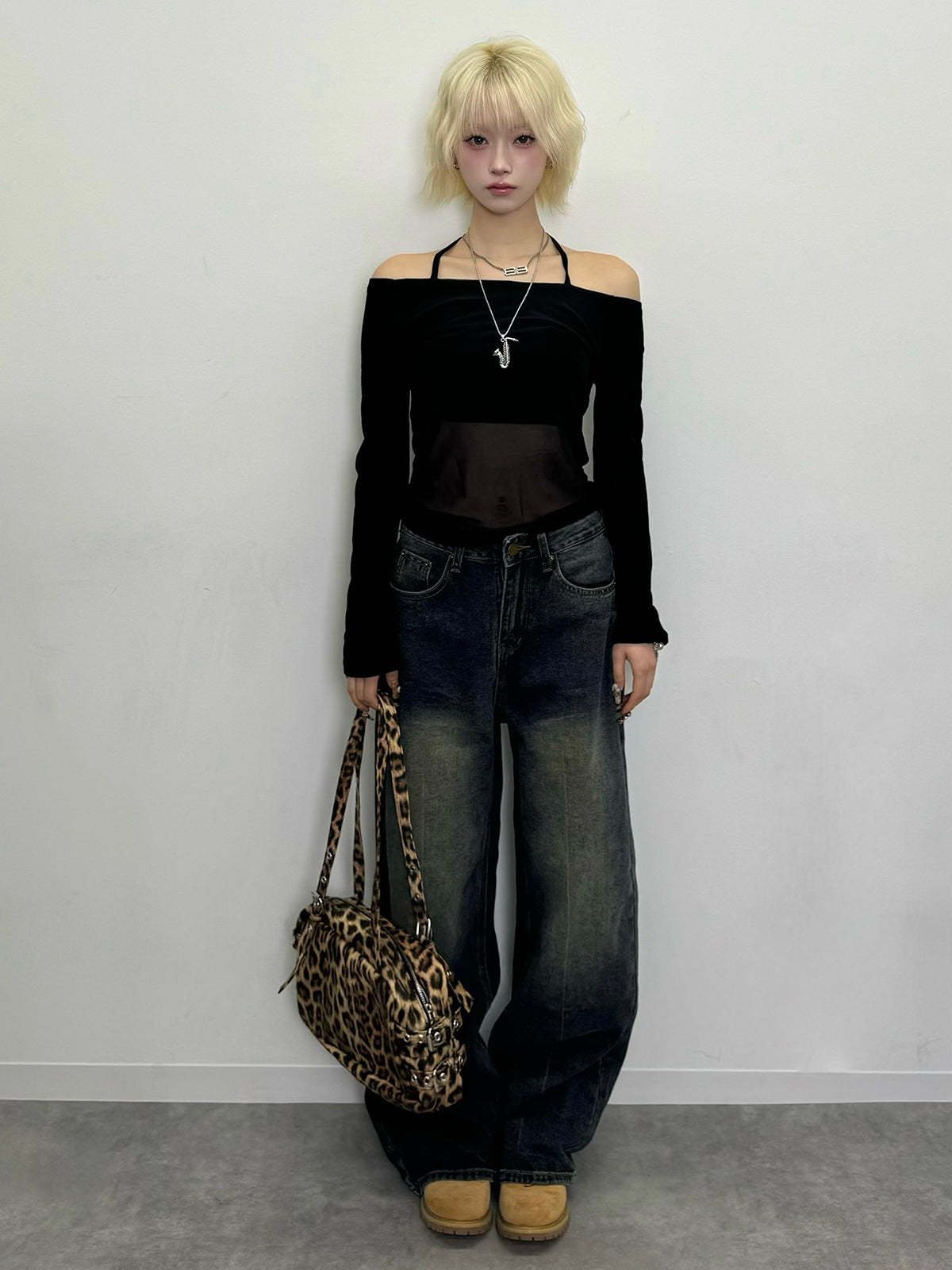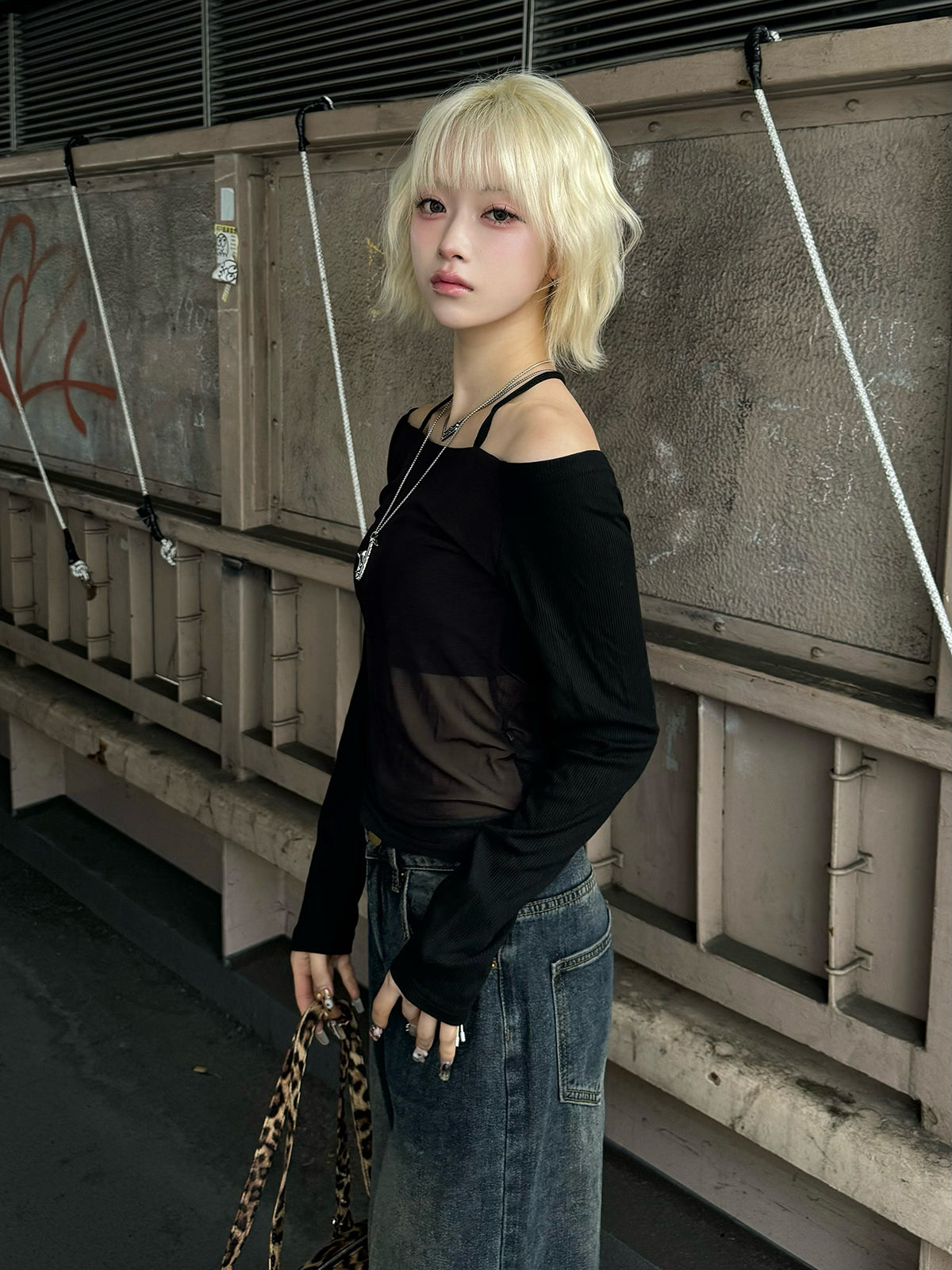 オフショル仕様に華奢なホルターストラップが女性らしさを際立てるトップス。