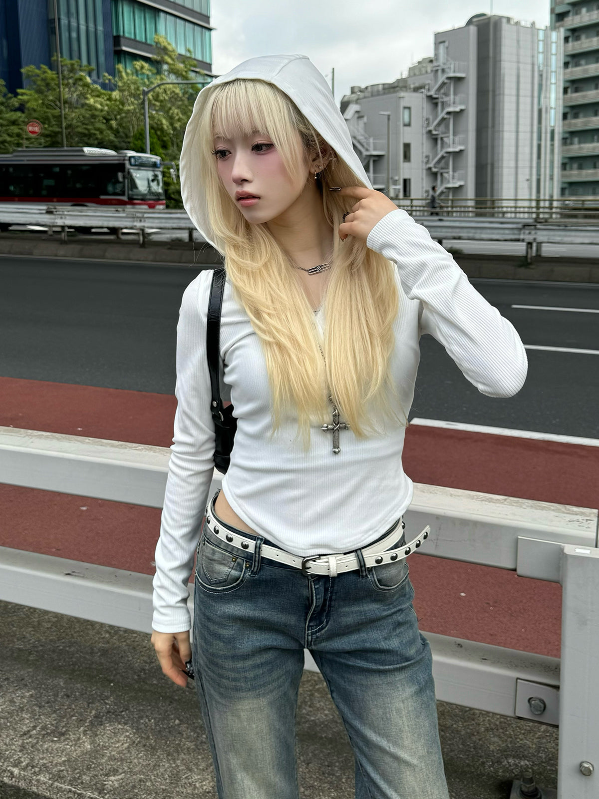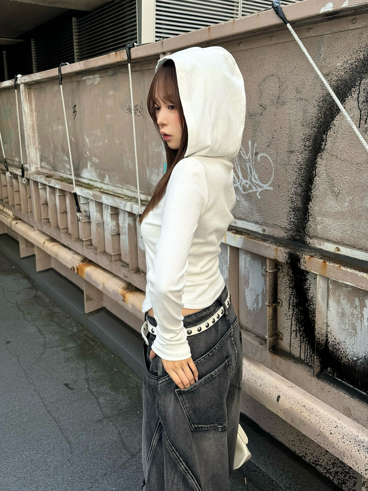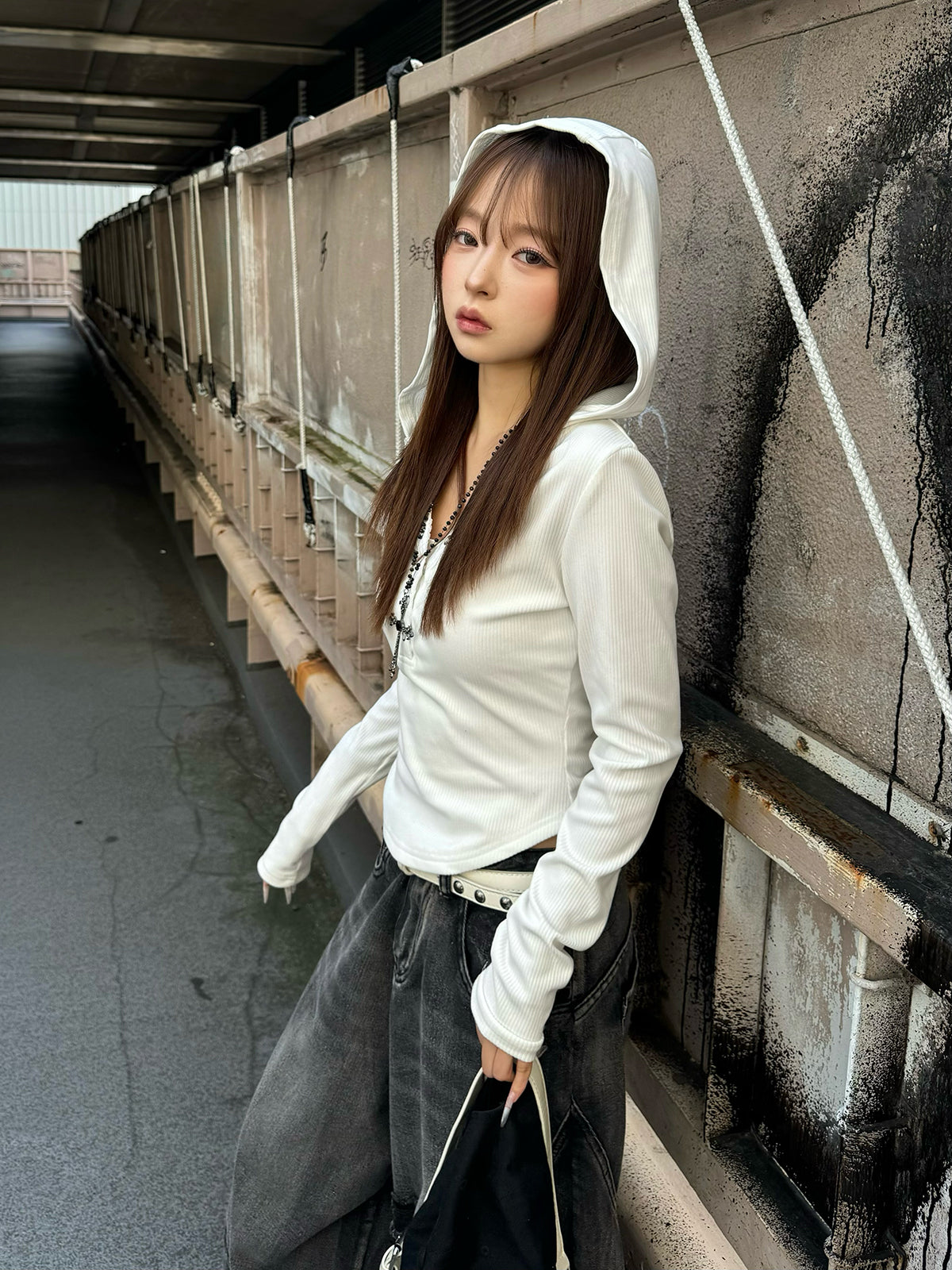リブボタンフーディーカットソー