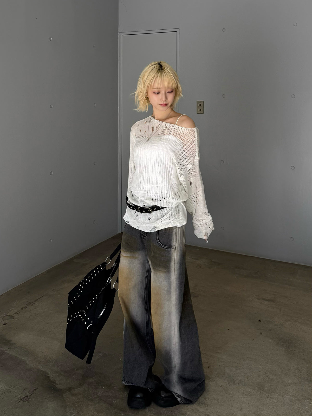 ・Random Distressed Sheer Knit