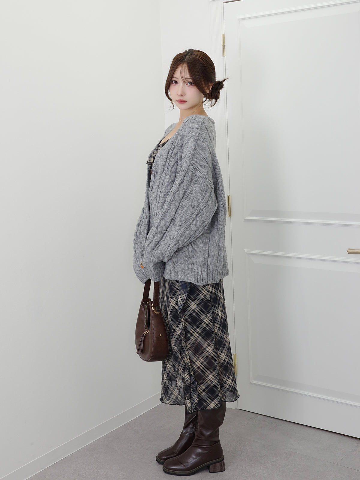 手編みのような温かみのあるケーブル柄が魅力のニットカーディガン。