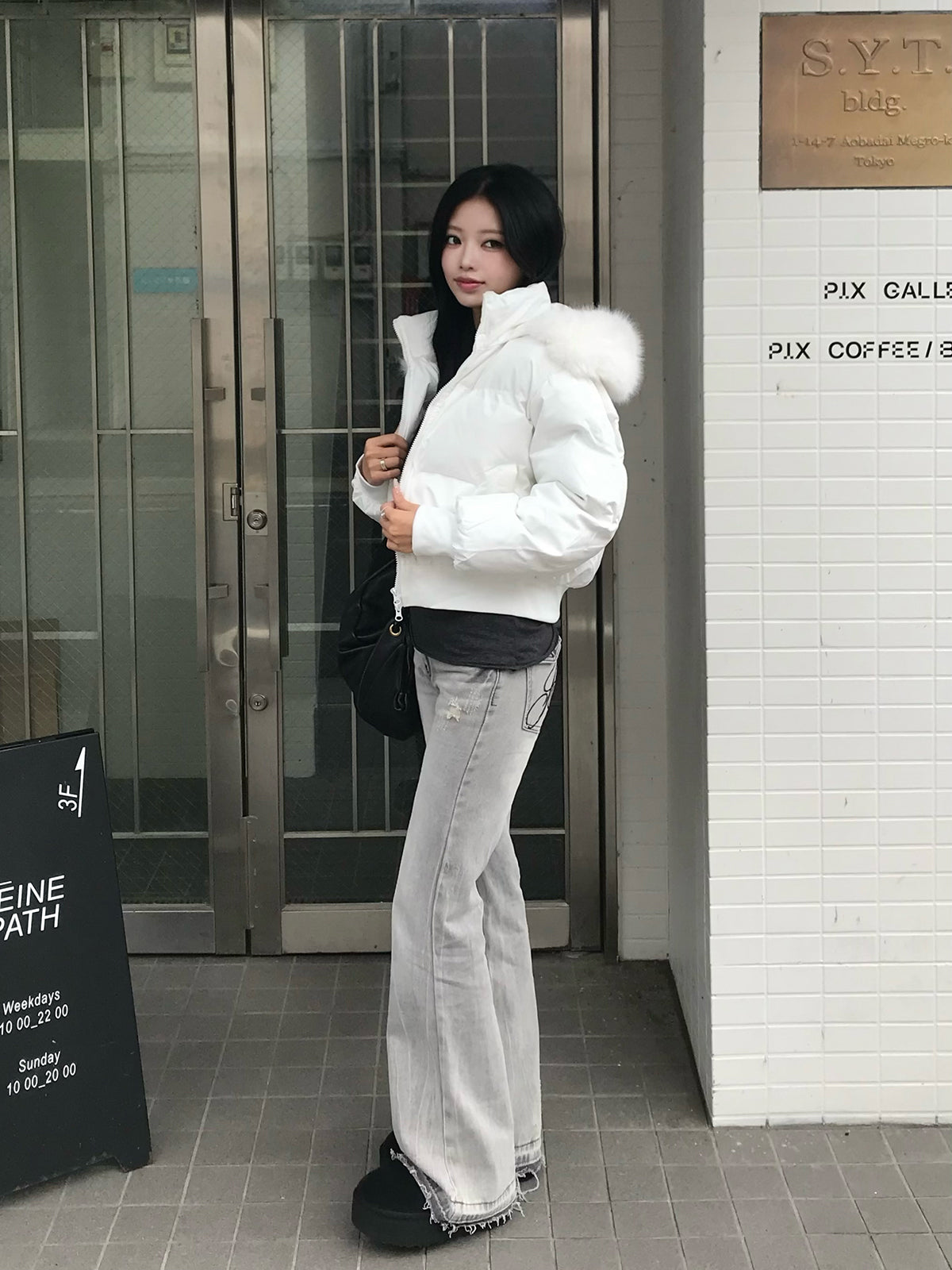 裾が広がるセミフレアデザインが、足元に抜け感を与えつつもスタイルアップを叶えてくれます。