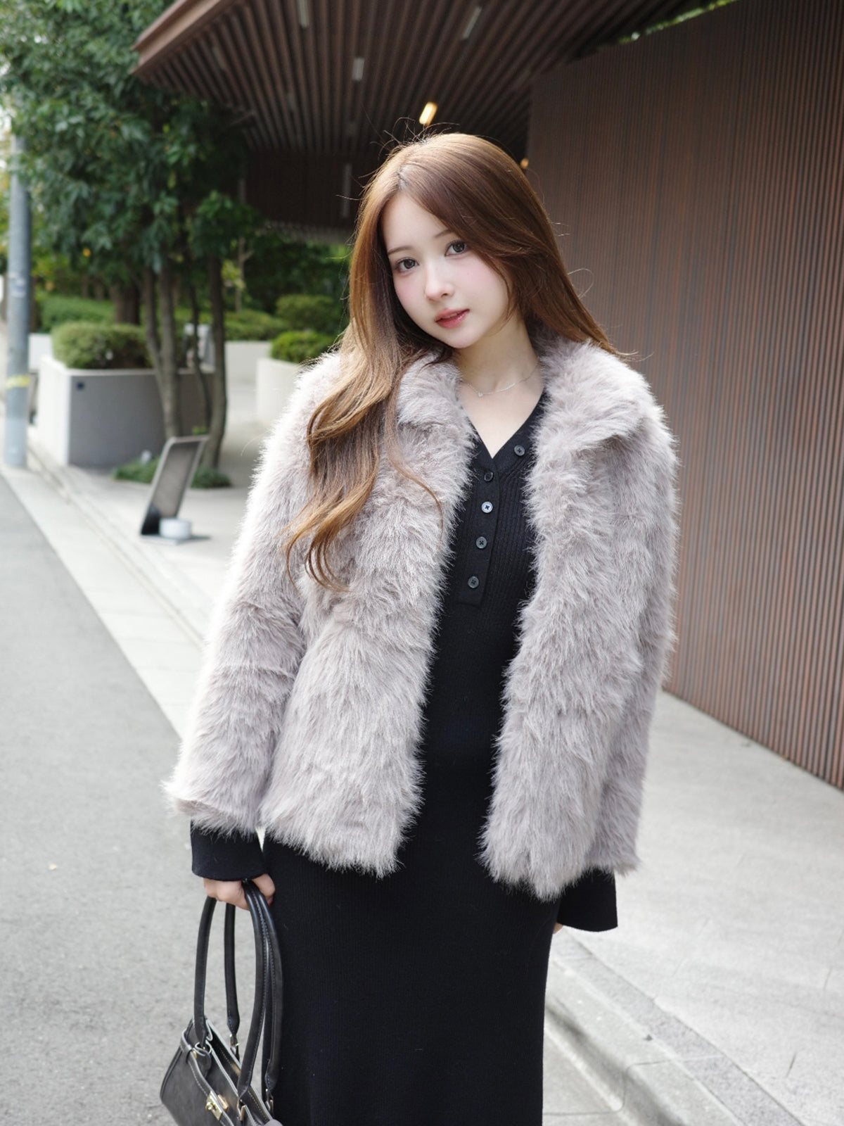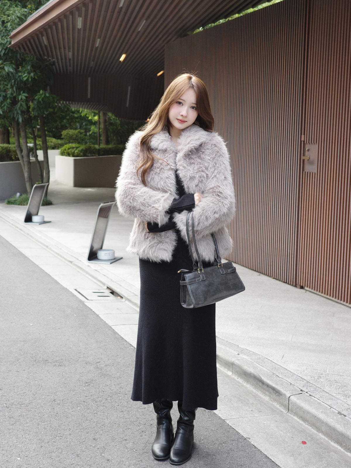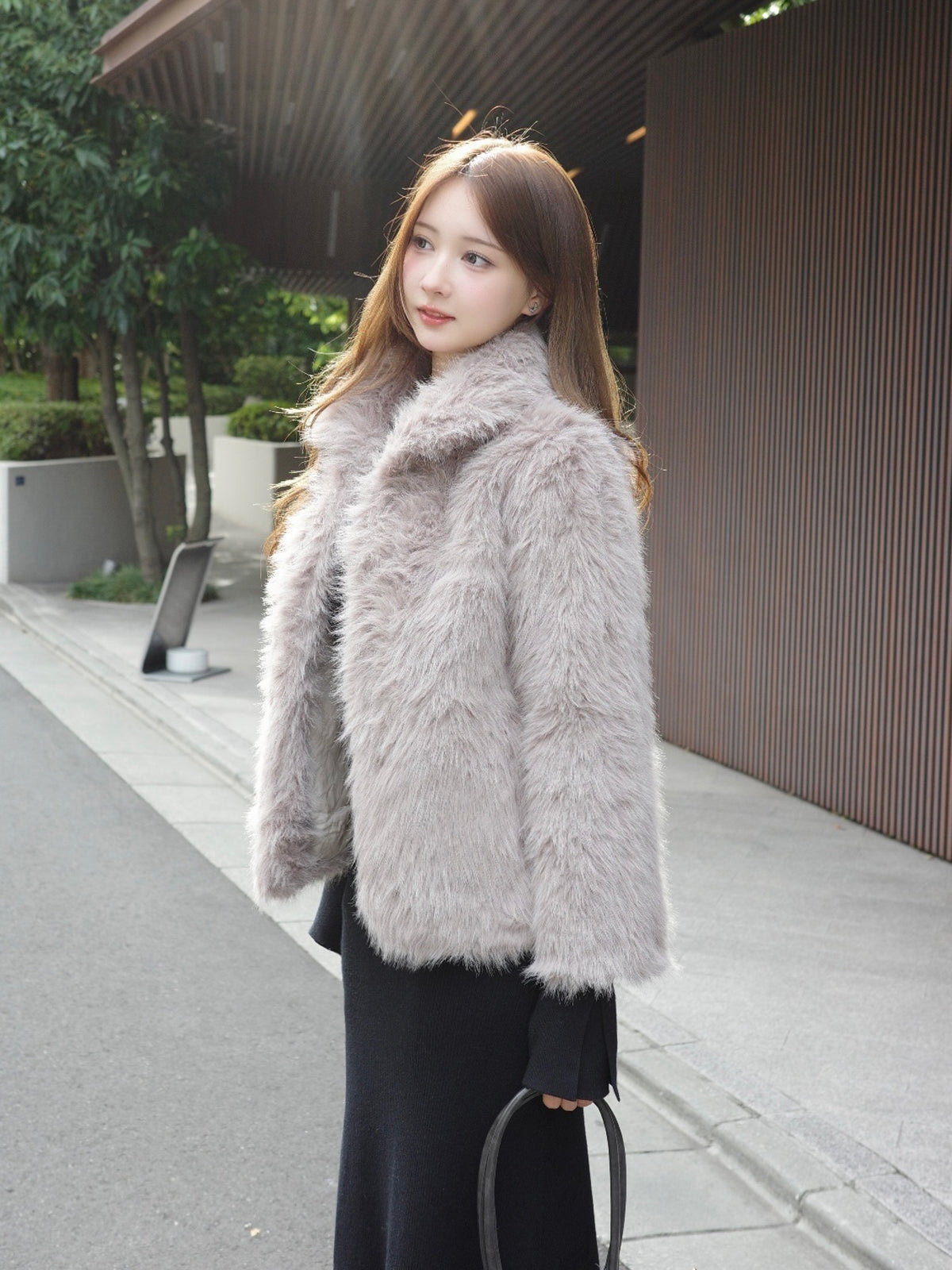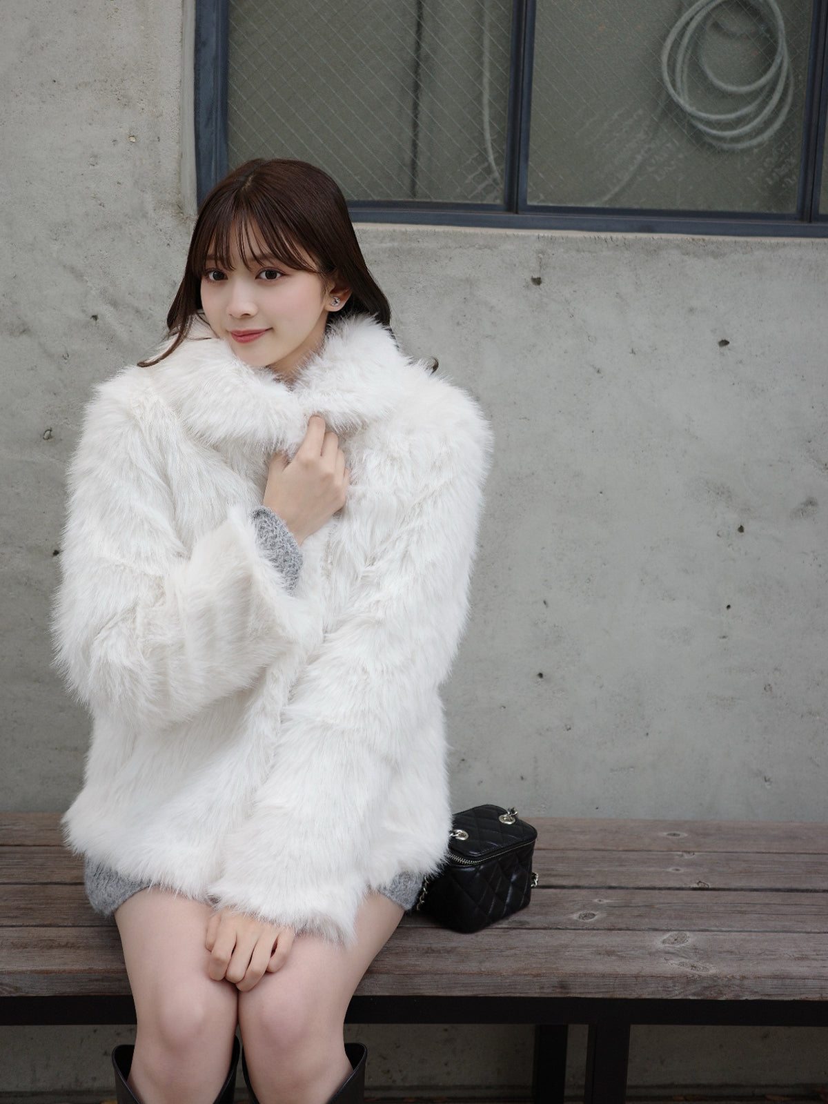 ボリューム感たっぷりのファータッチ素材が目を惹く一着。