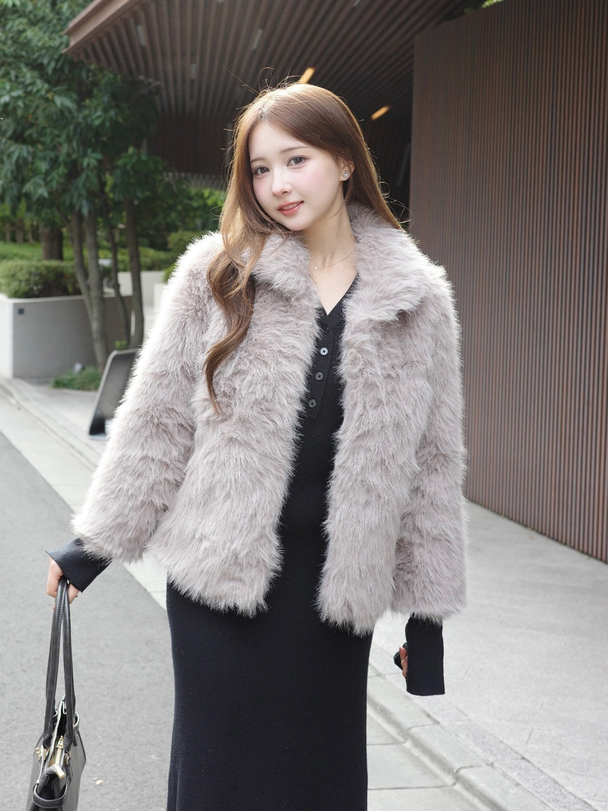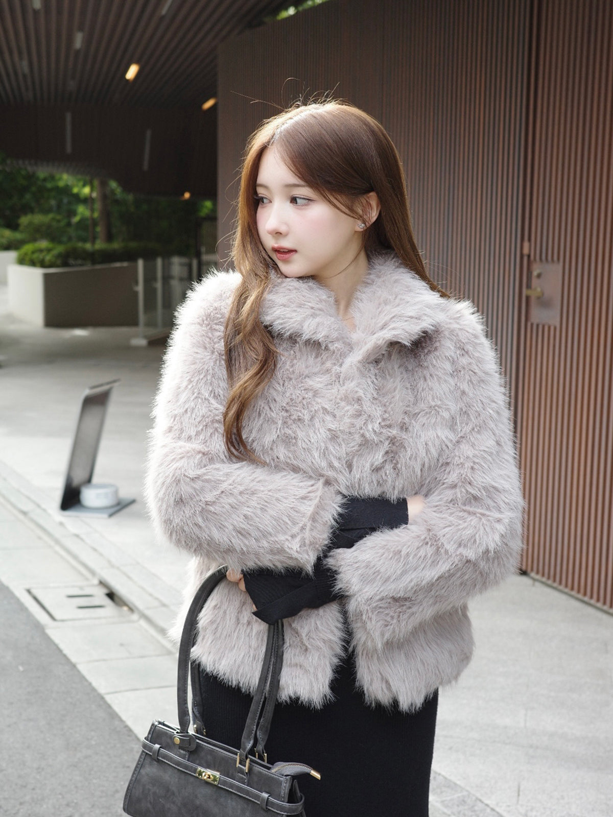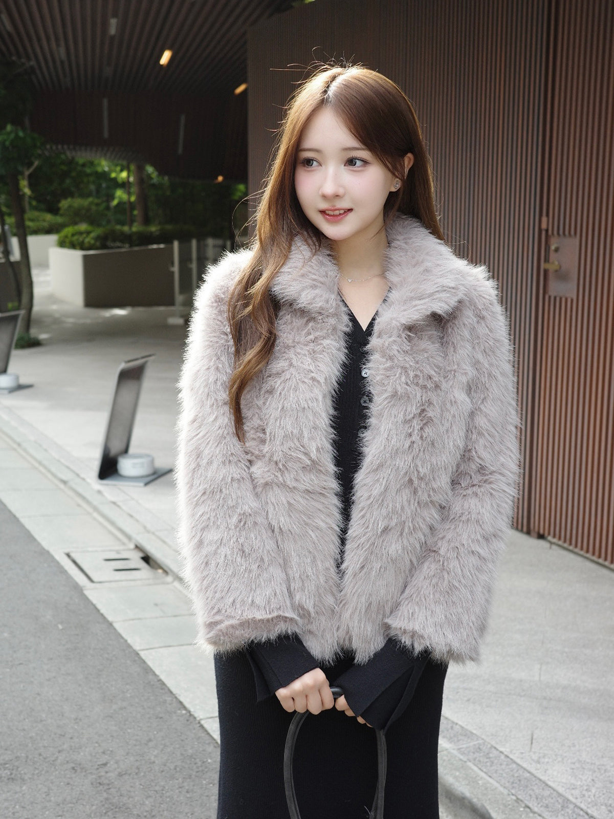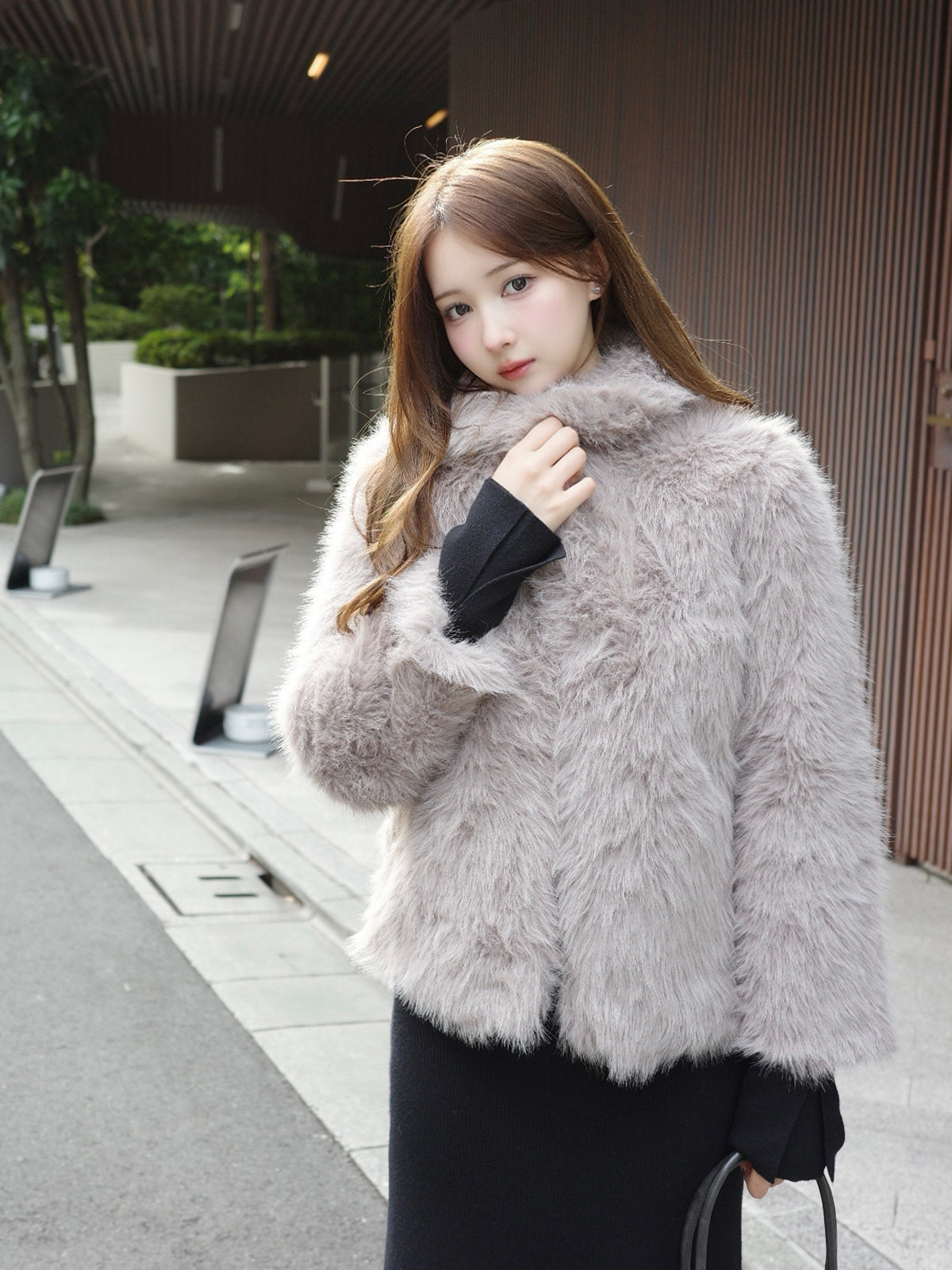 ボリューム感たっぷりのファータッチ素材が目を惹く一着。