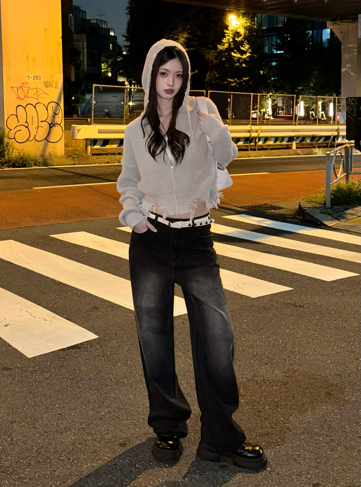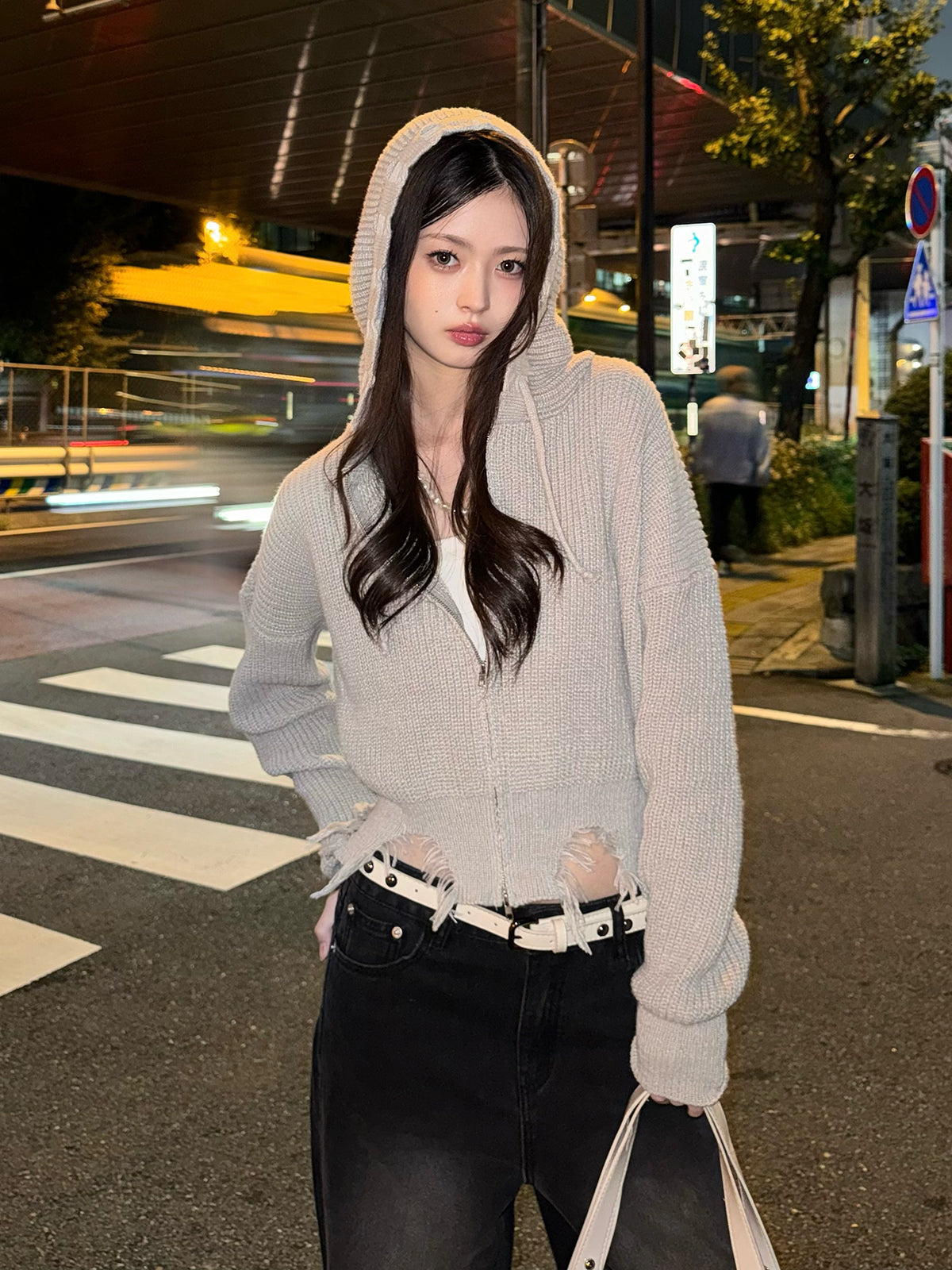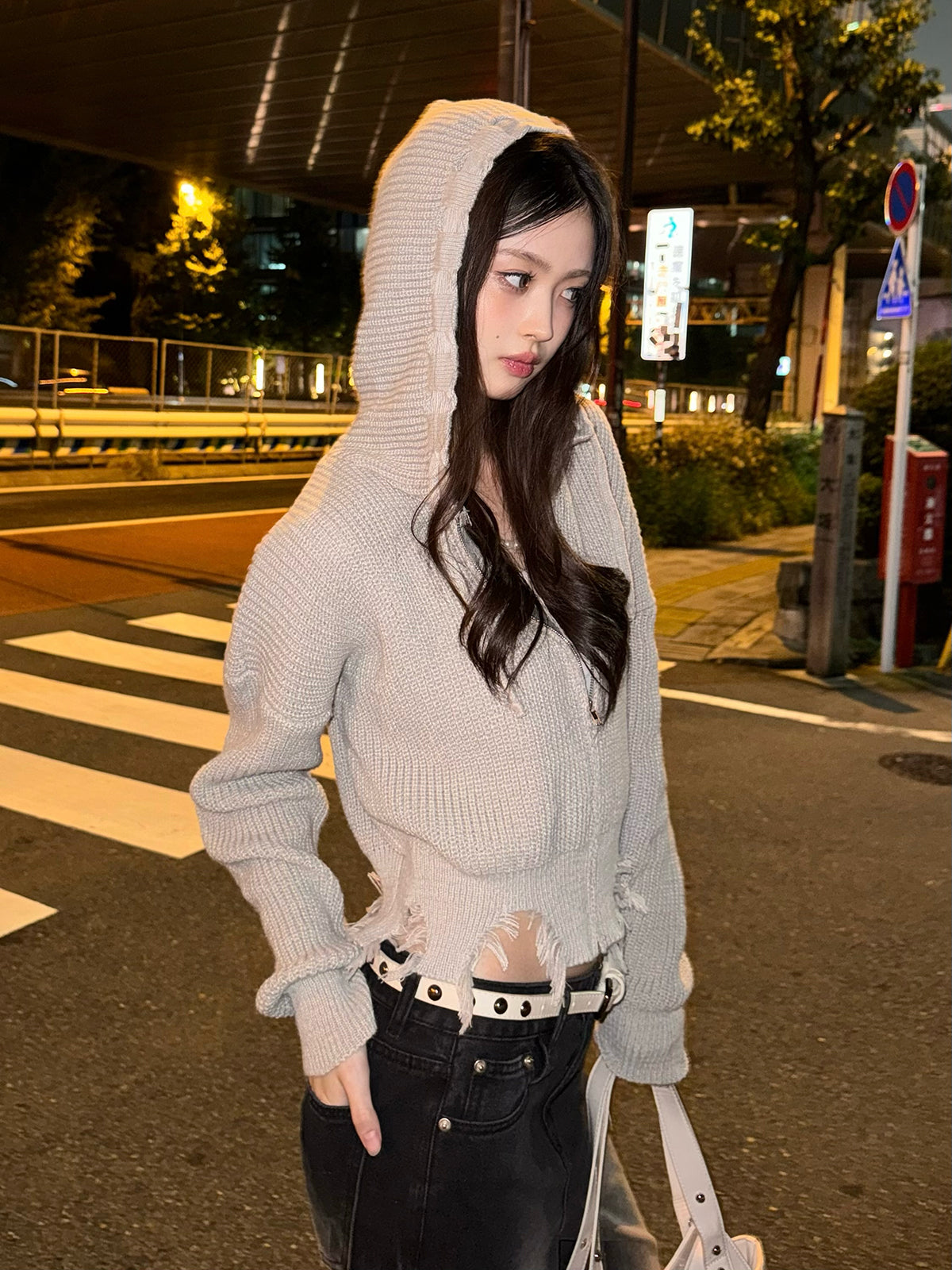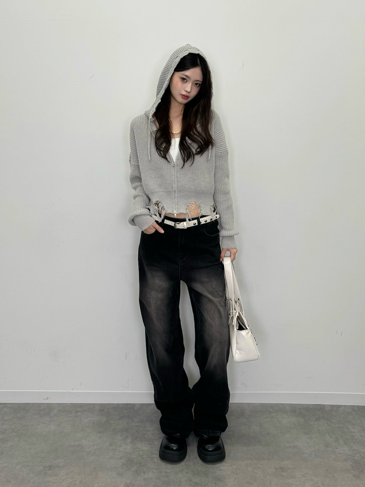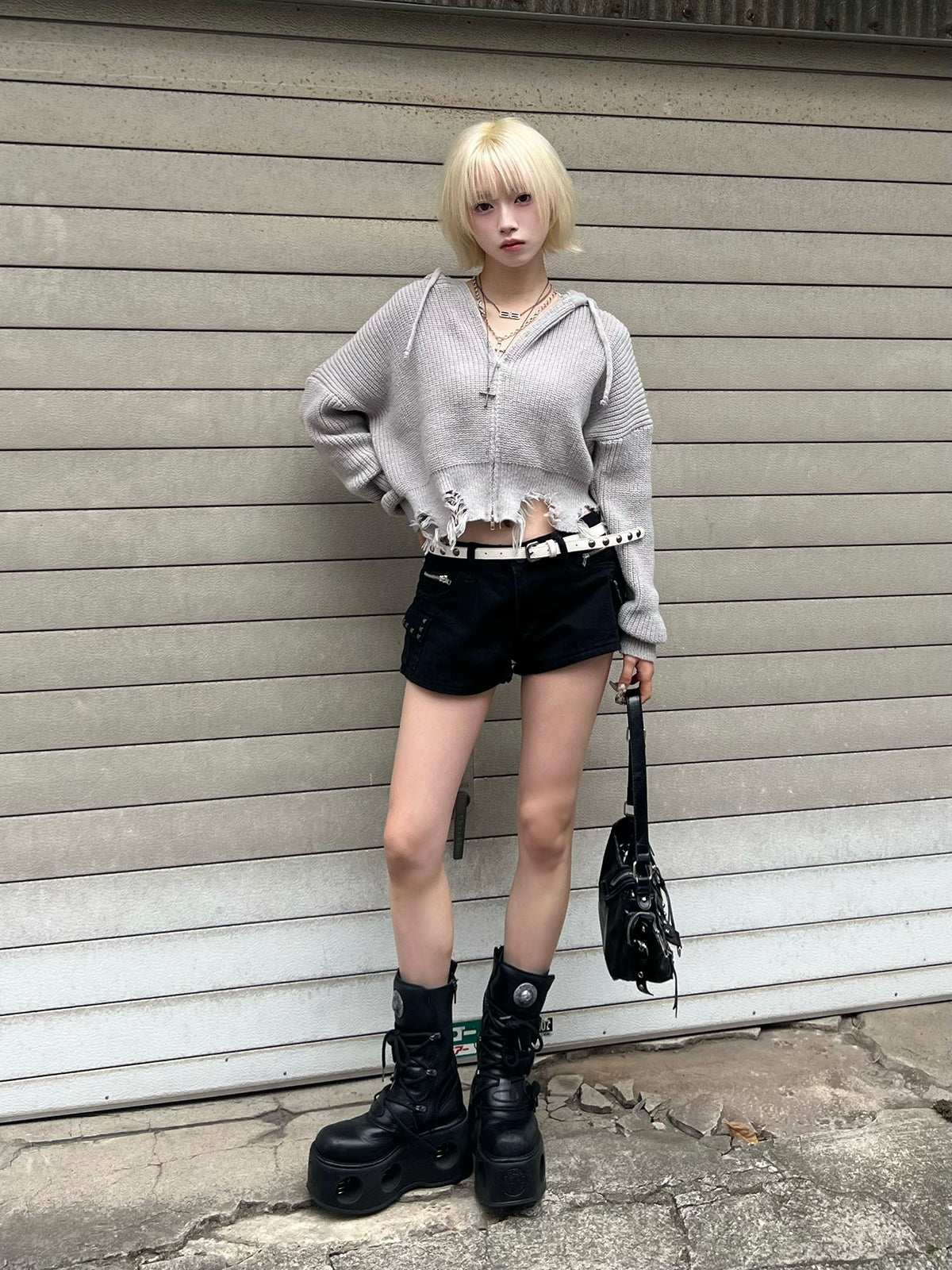 ダメージニットダブルジップパーカー