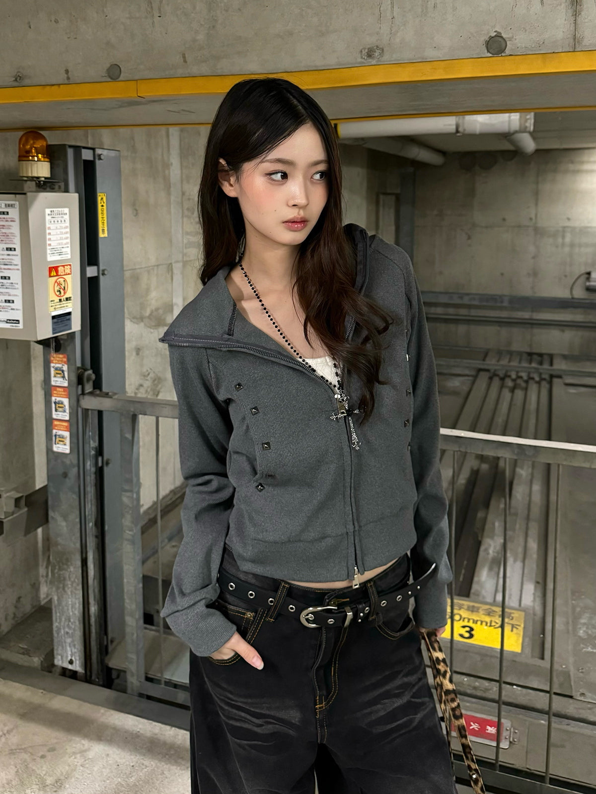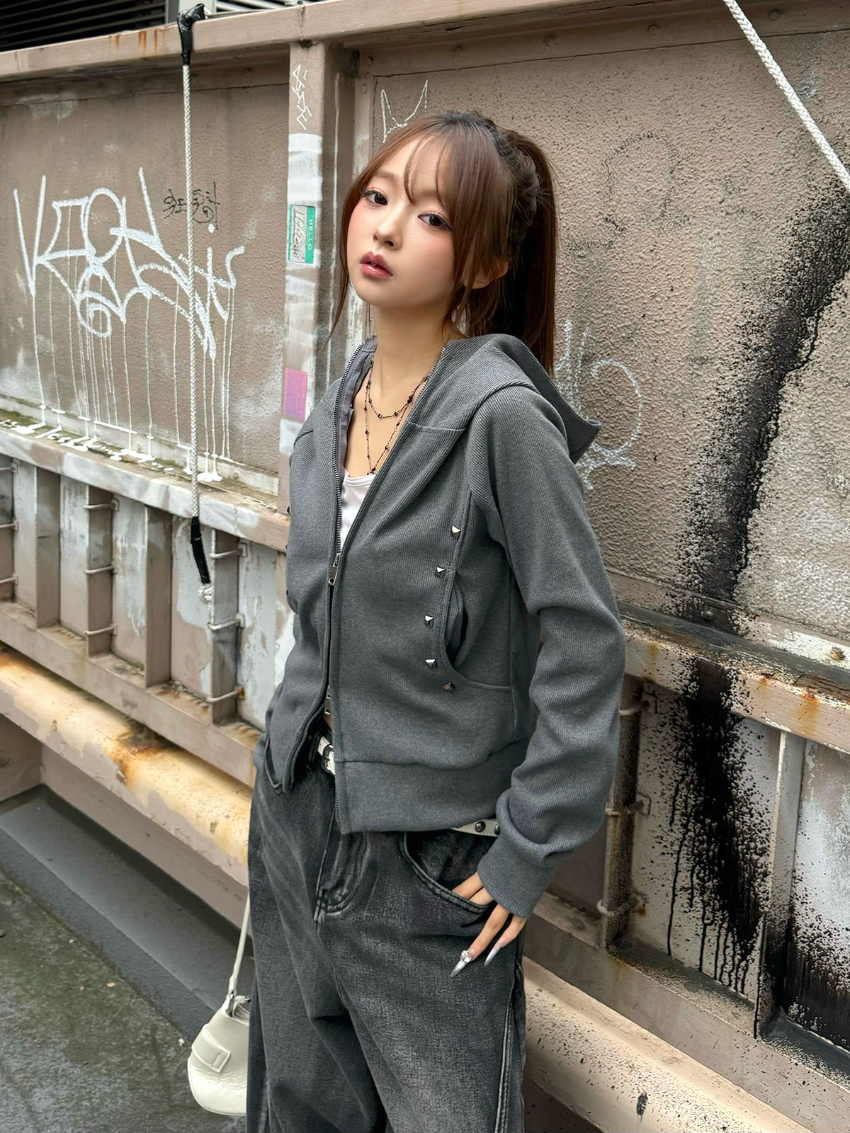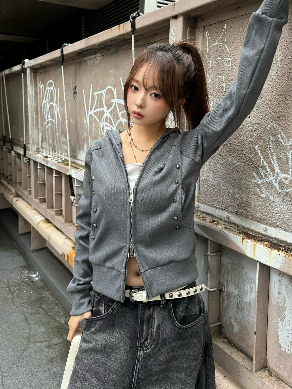 フロントにはスタッズをあしらい、シンプルな中にさりげないエッジをプラスしています。