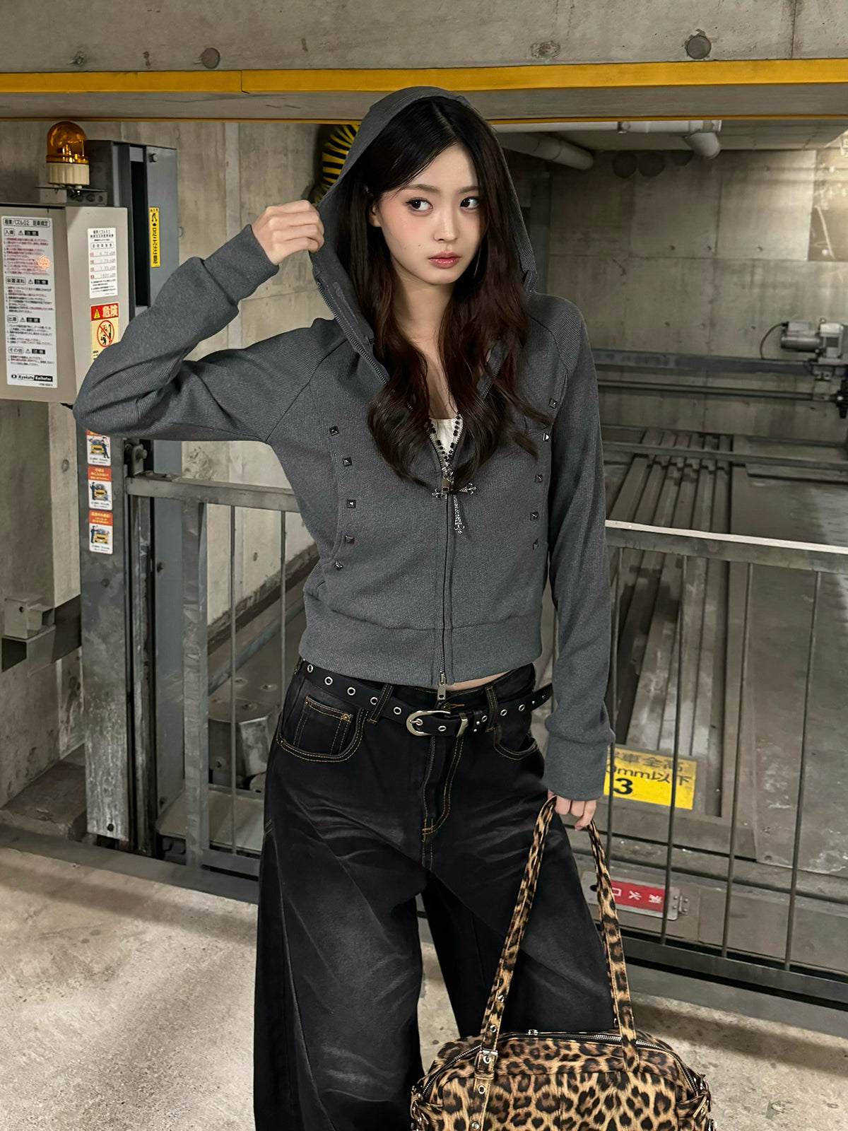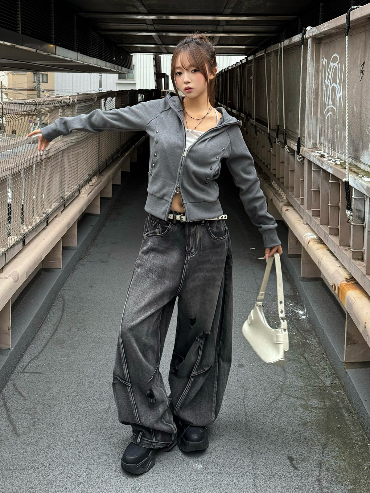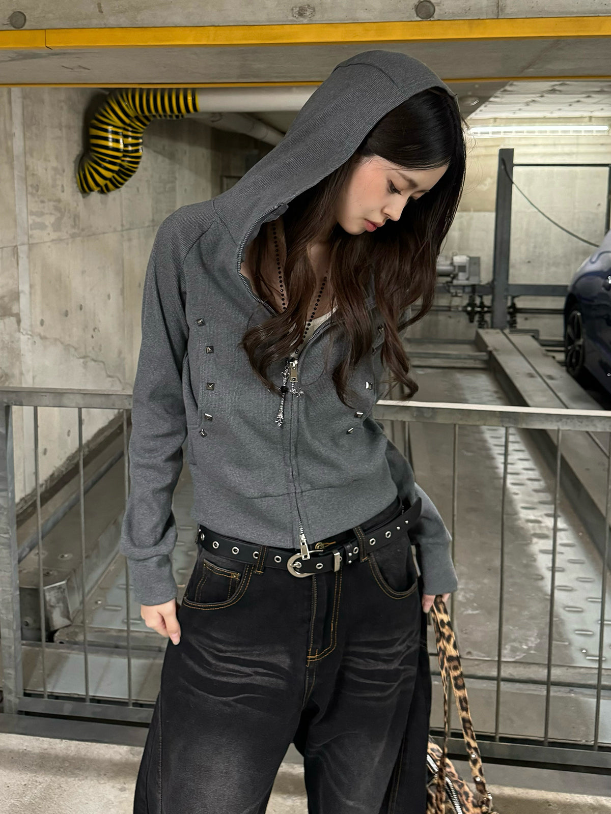 フロントにはスタッズをあしらい、シンプルな中にさりげないエッジをプラスしています。