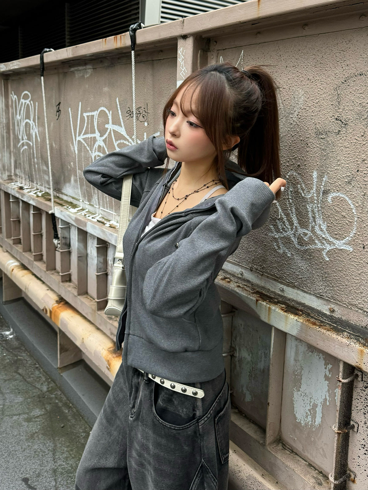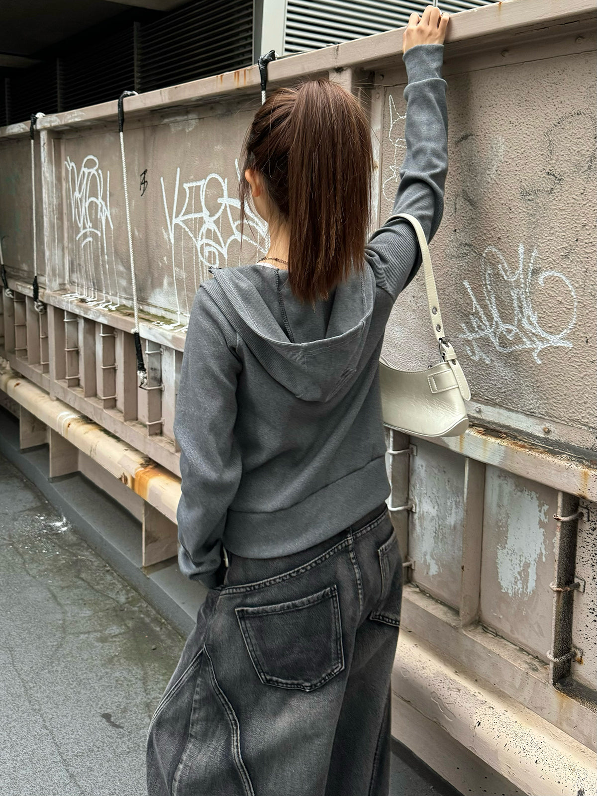 細身のシルエットがすっきりとした印象に仕上げてくれるダブルジップリブパーカー。