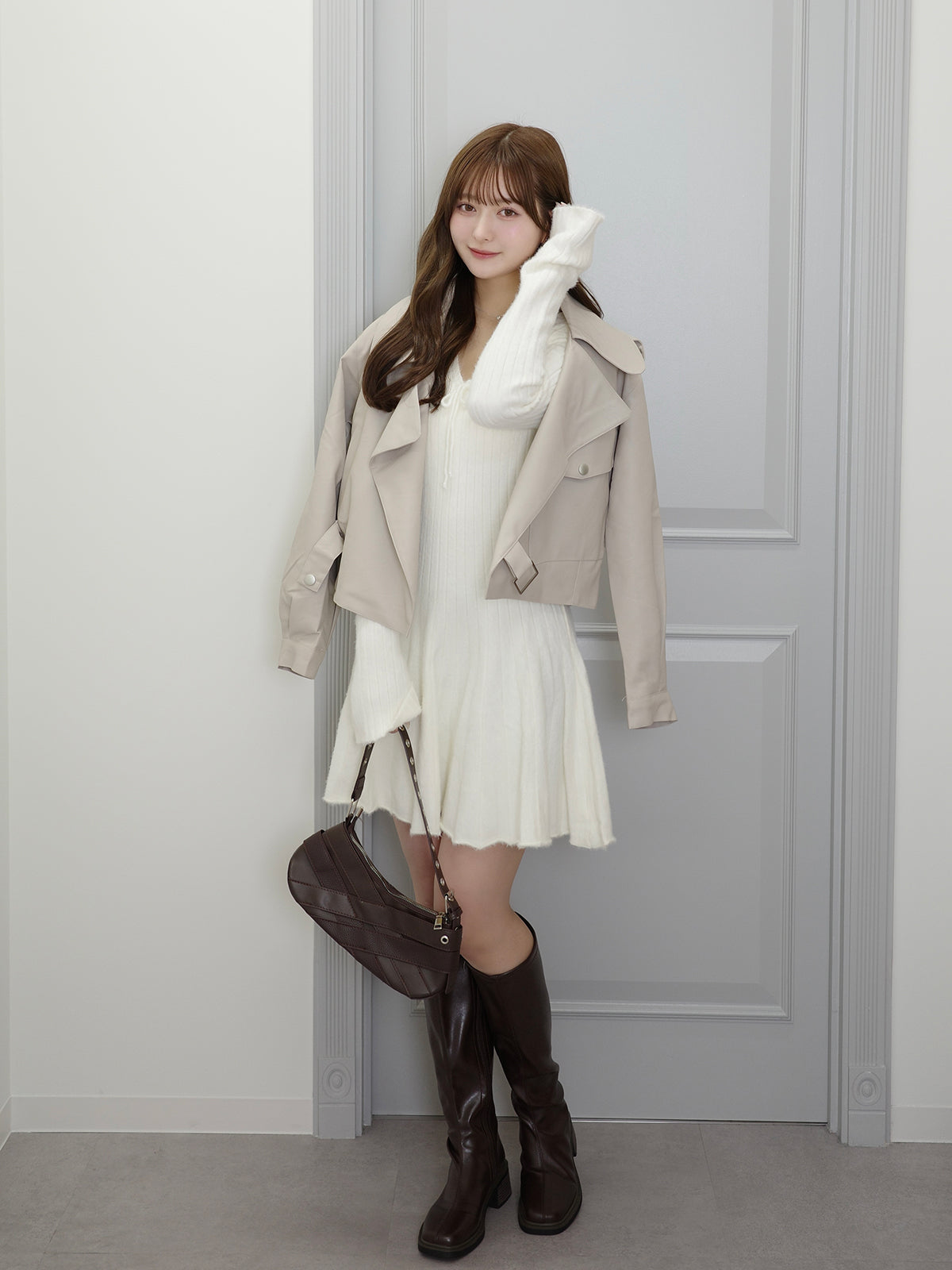 甘めワンピースはレザーアイテムと合わせるのがおすすめです。