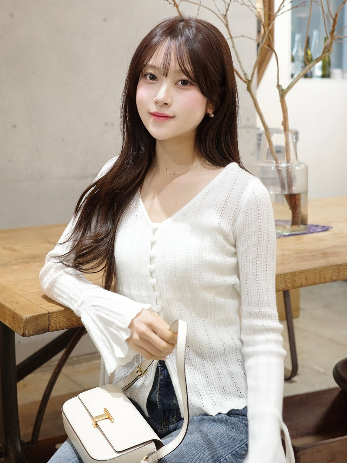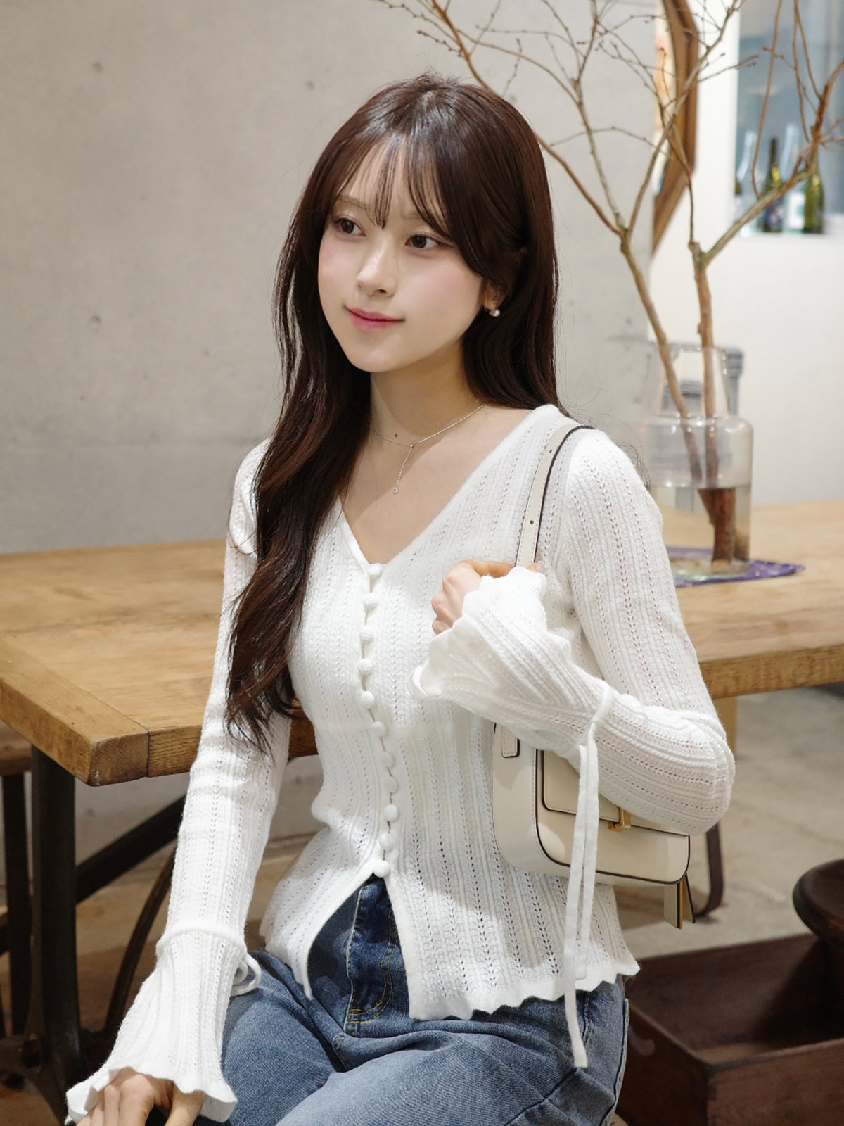 フレアスリーブニットカーディガン