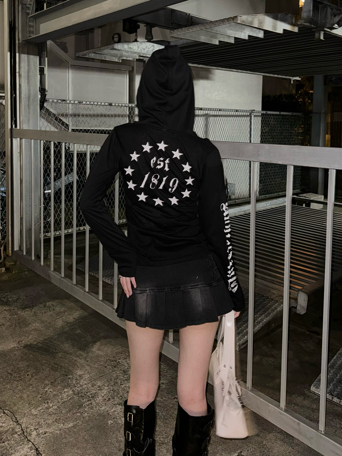 バックと袖にあしらったグラフィックロゴが映えるフーディーカットソー。
