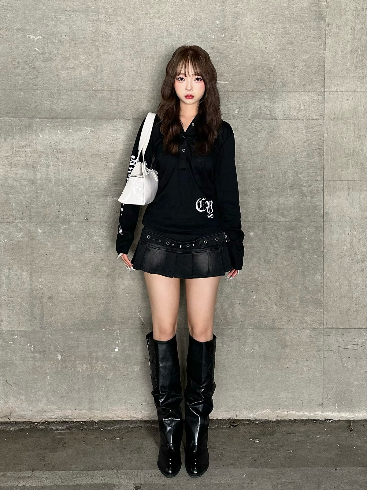 ・ダブルベルトプリーツデニムミニスカート