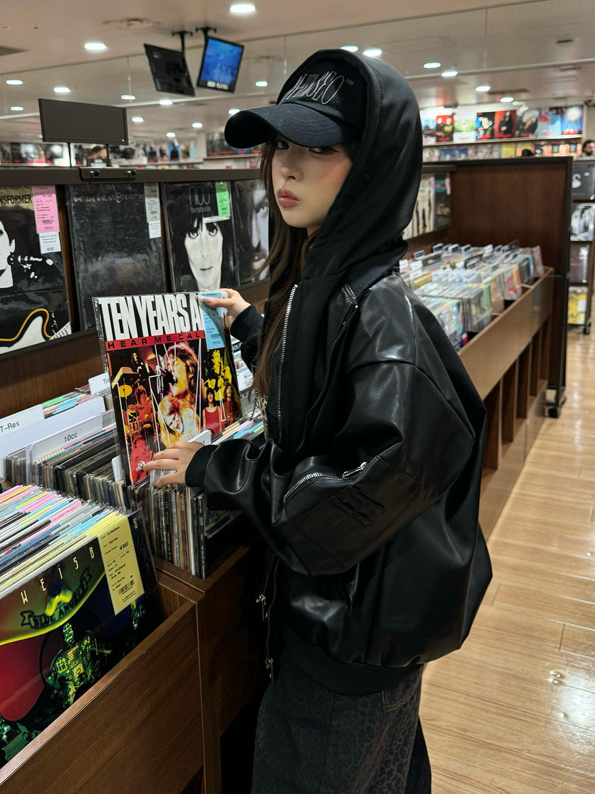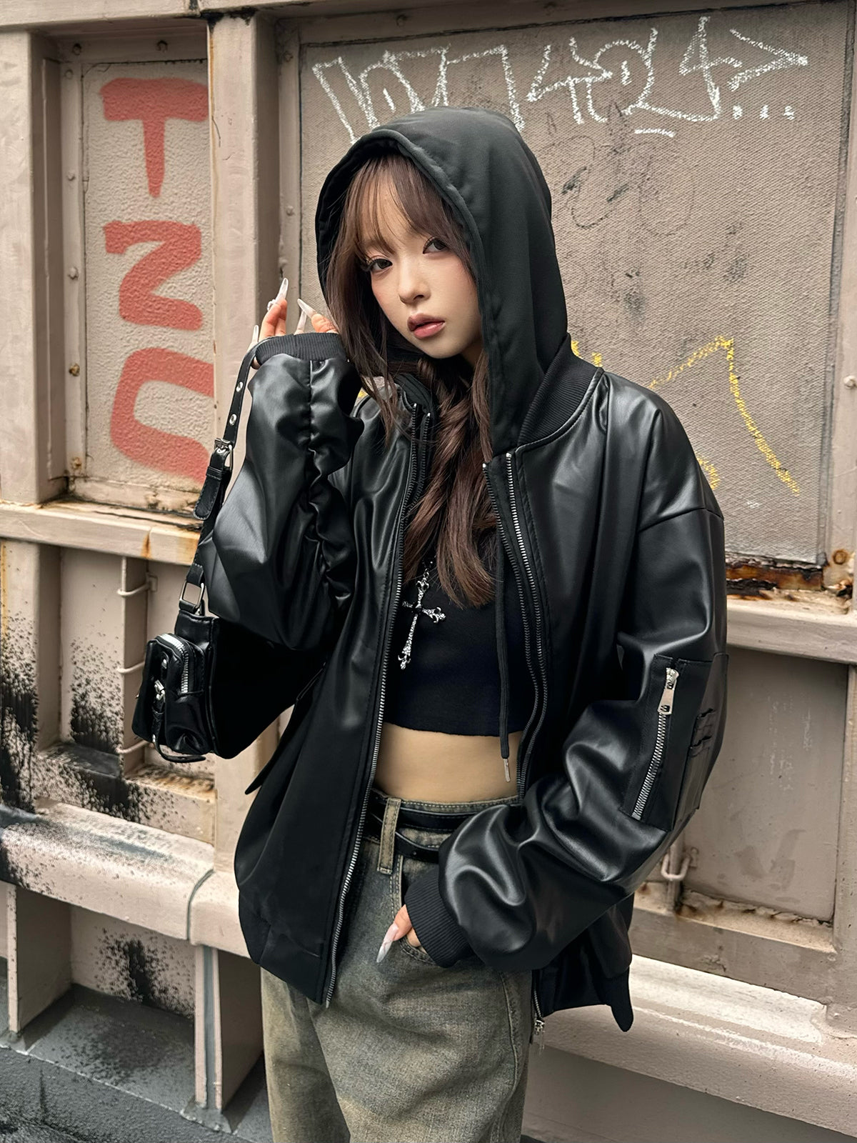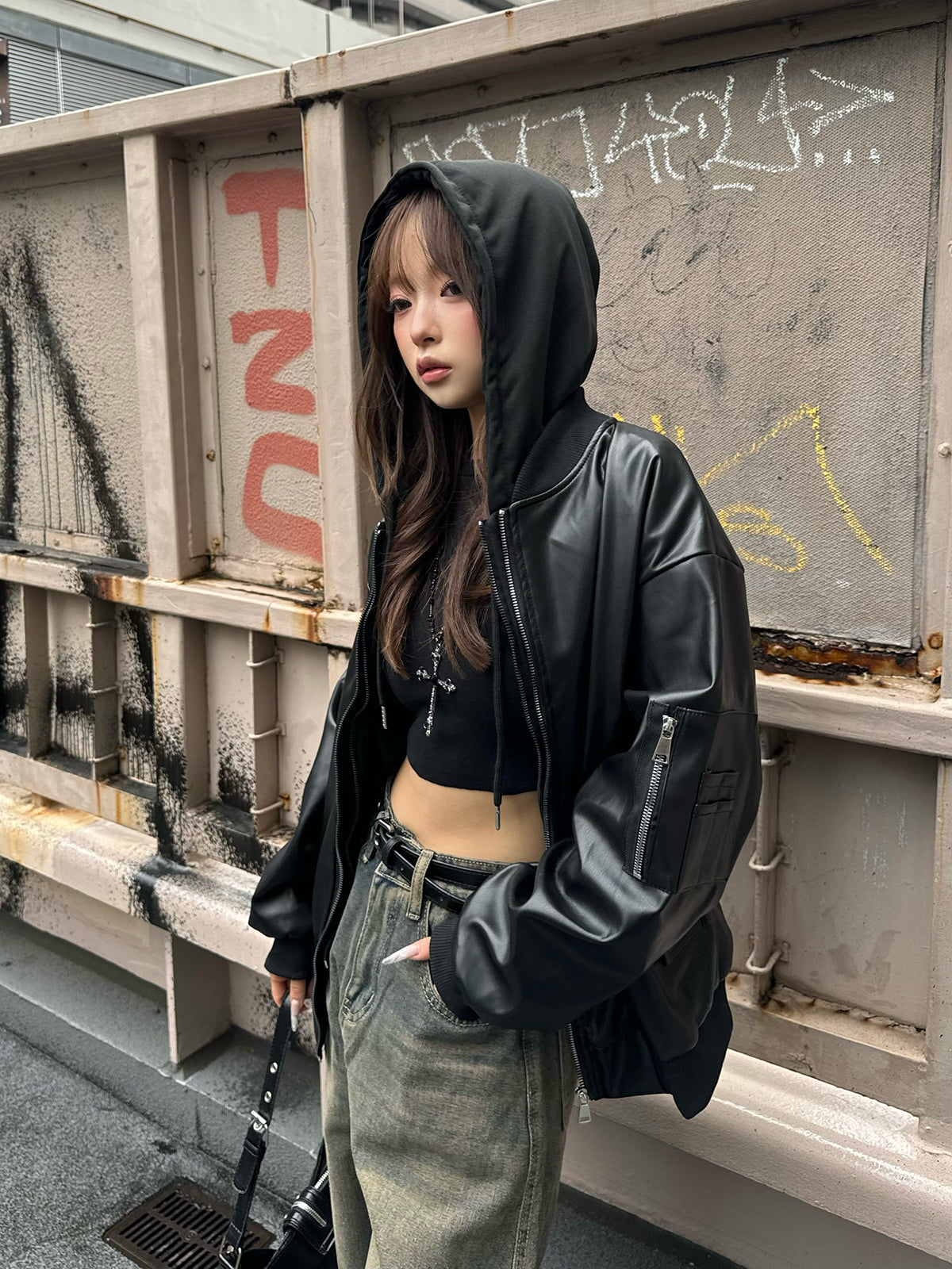 レザータッチ×フードがドッキングしたデザインジャケット。
