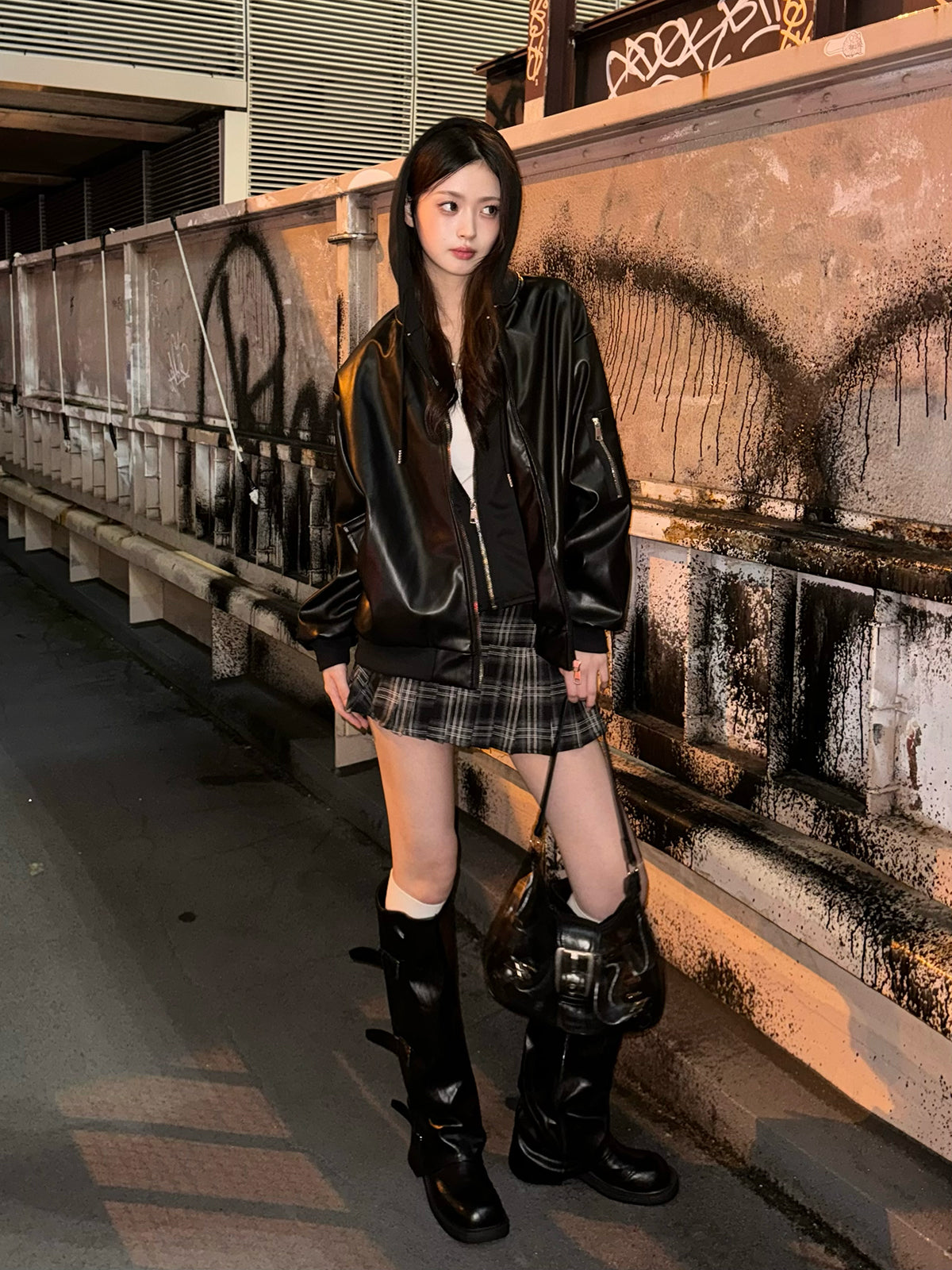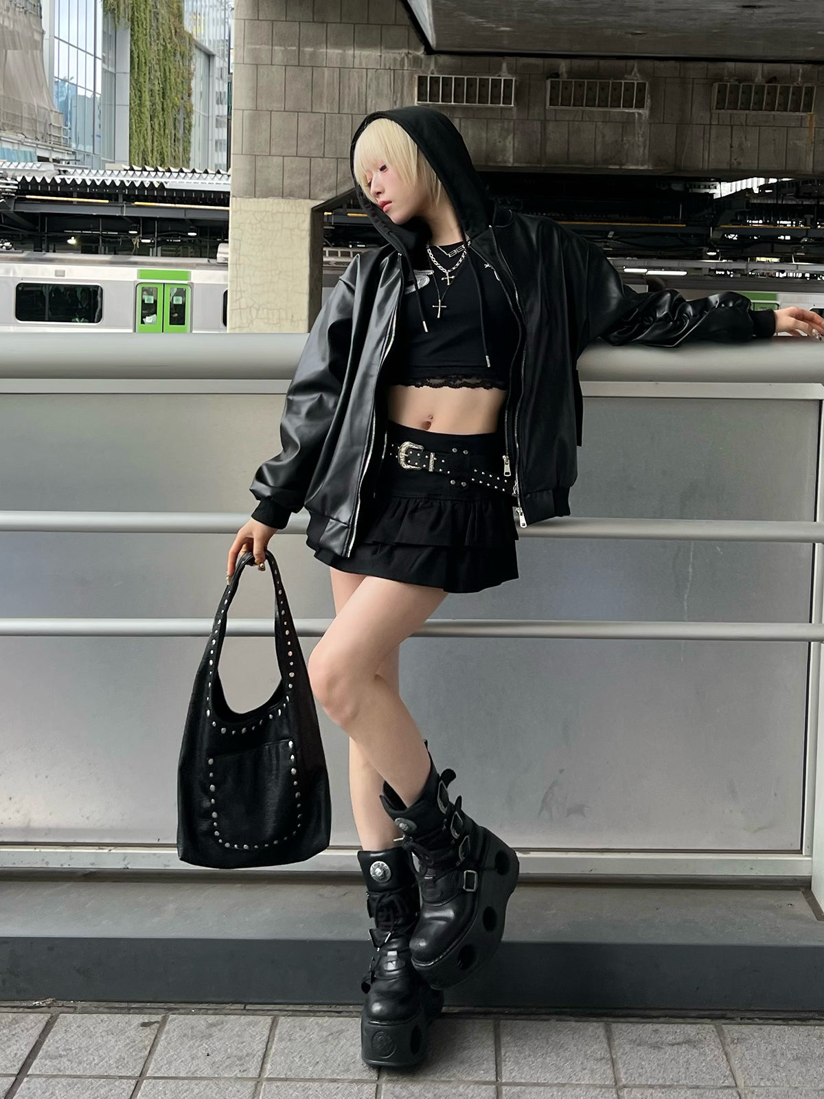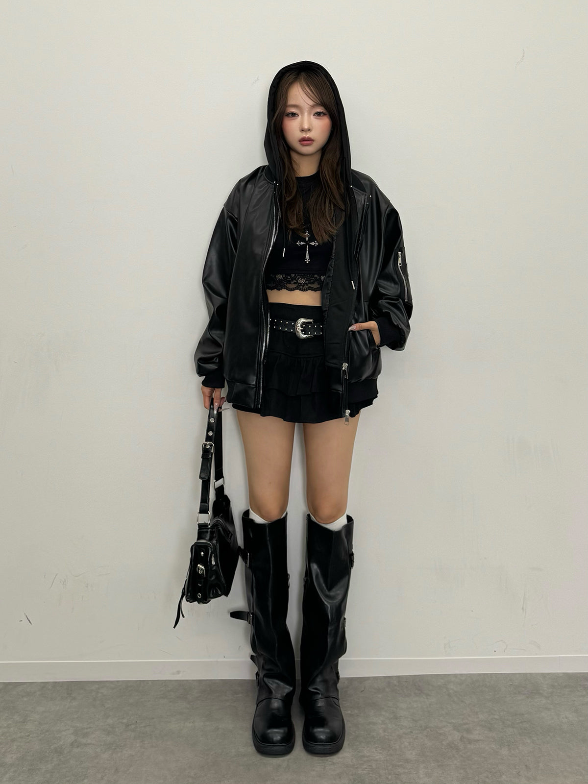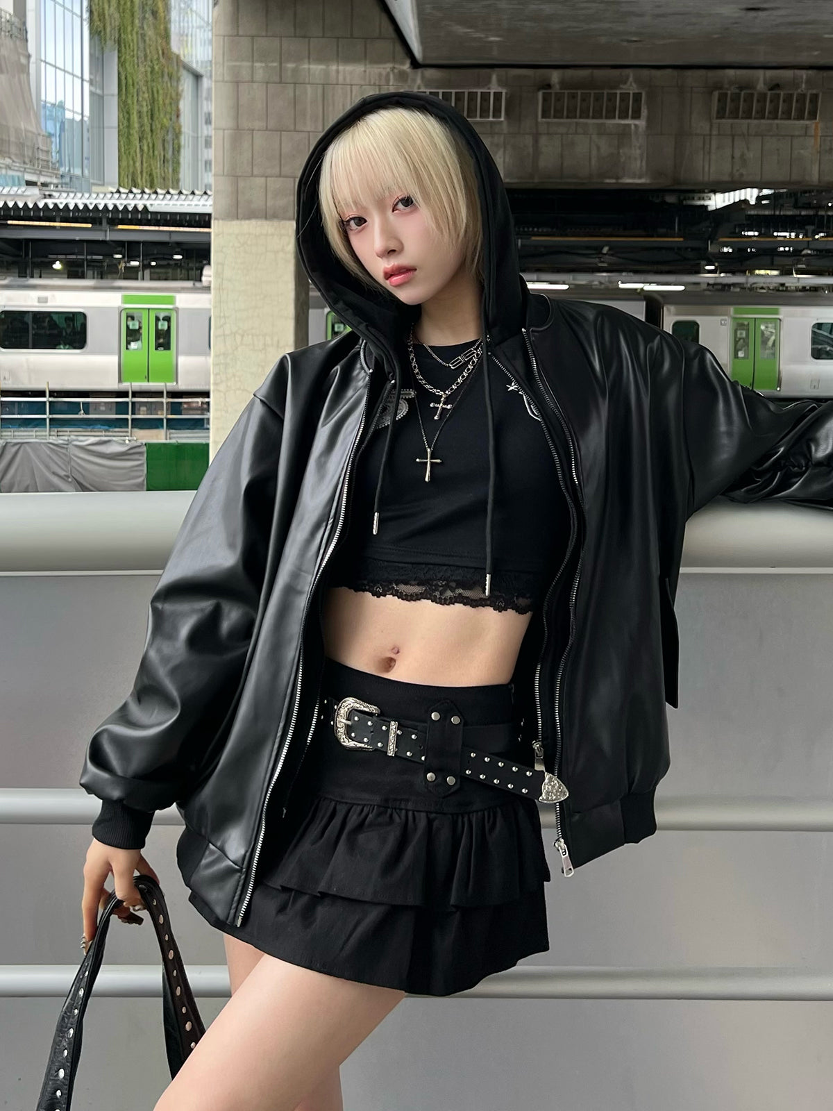 レザータッチ×フードがドッキングしたデザインジャケット。
