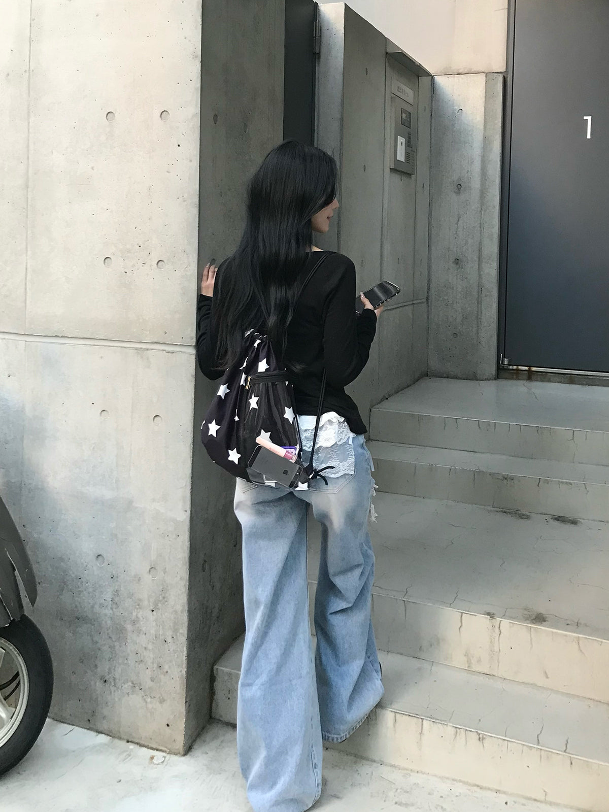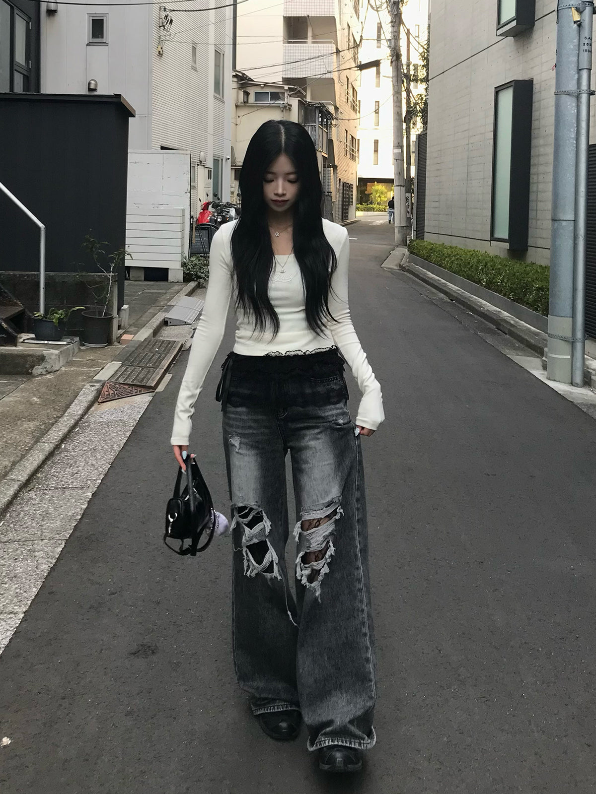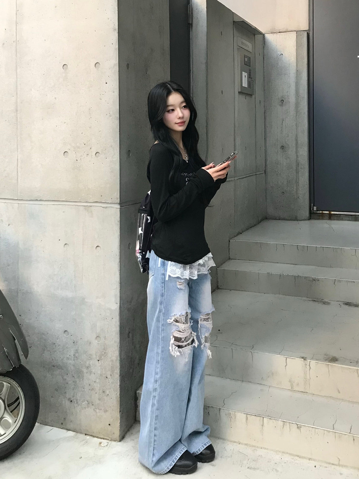 The damaged area features a lace design, soThis is a piece that minimizes skin exposure and is easy to challenge.