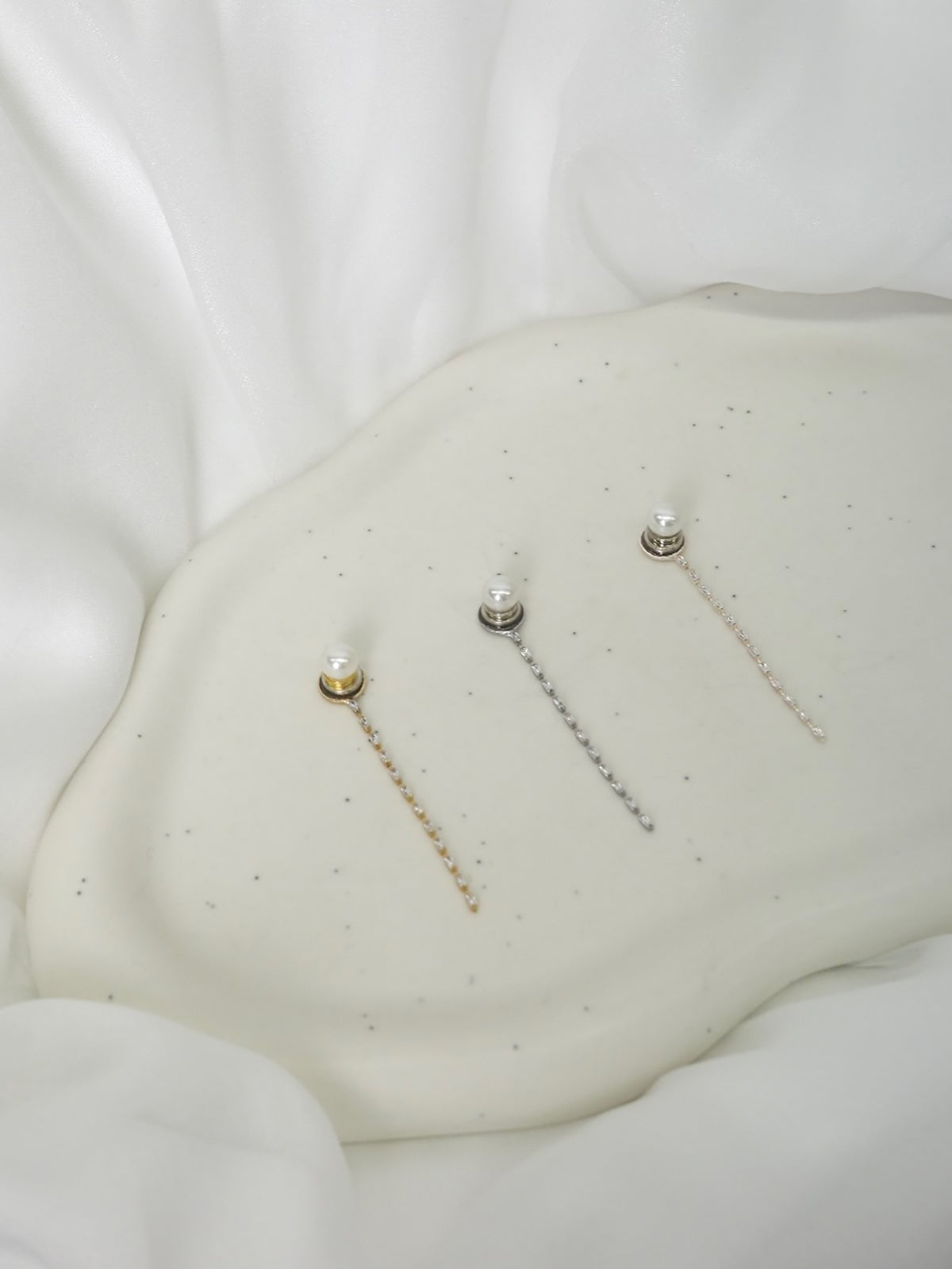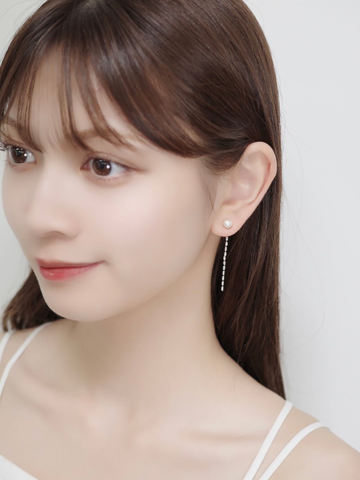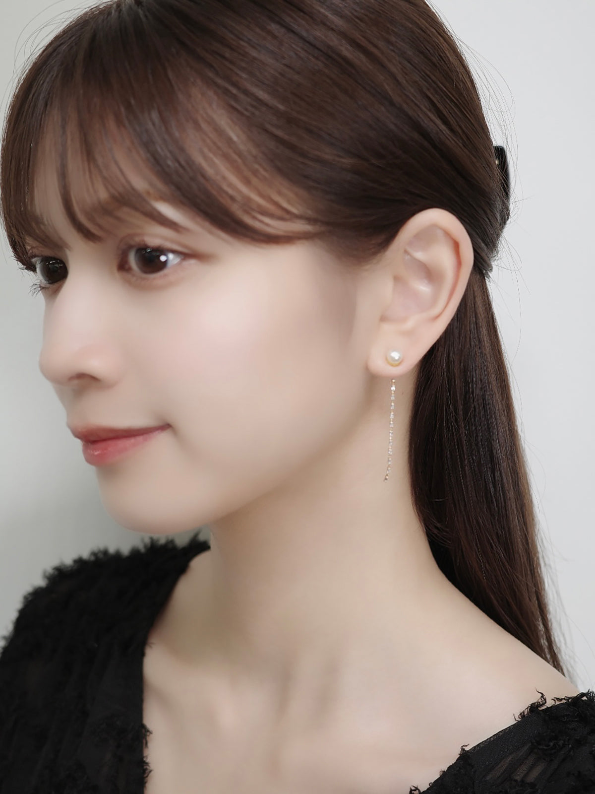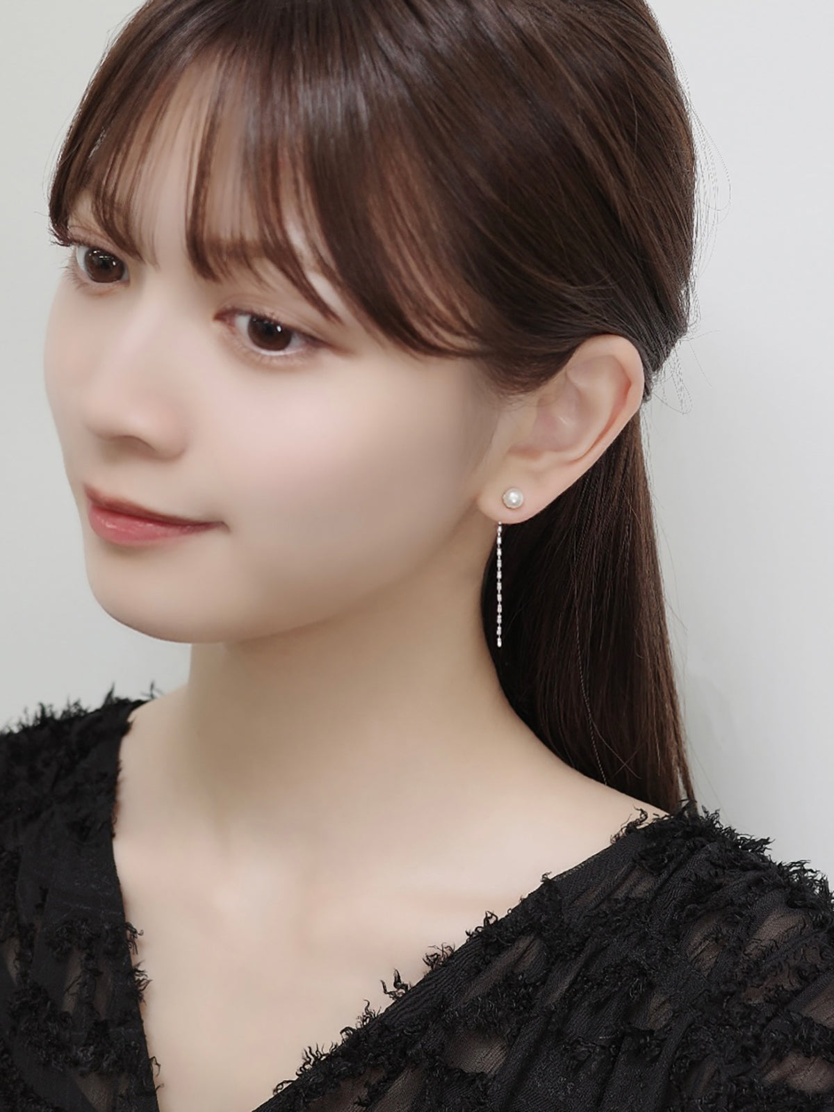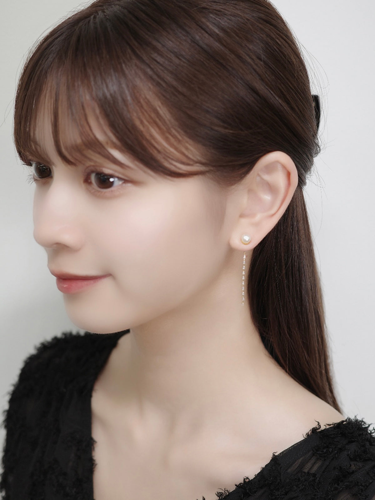 シーンに合わせて付け替えられる2WAY仕様で、ジルコニアチェーンのスタイルと、シンプルなパールだけのスタイルの2パターンをお楽しみいただけます。