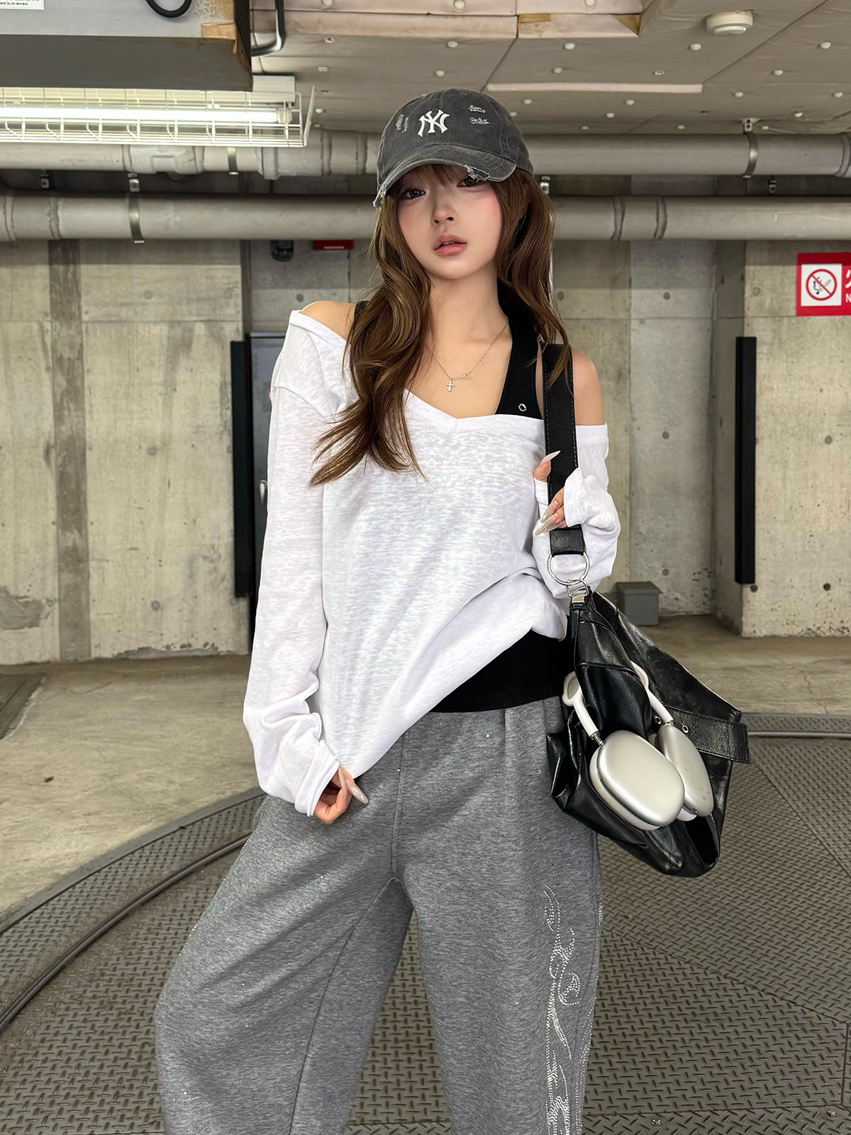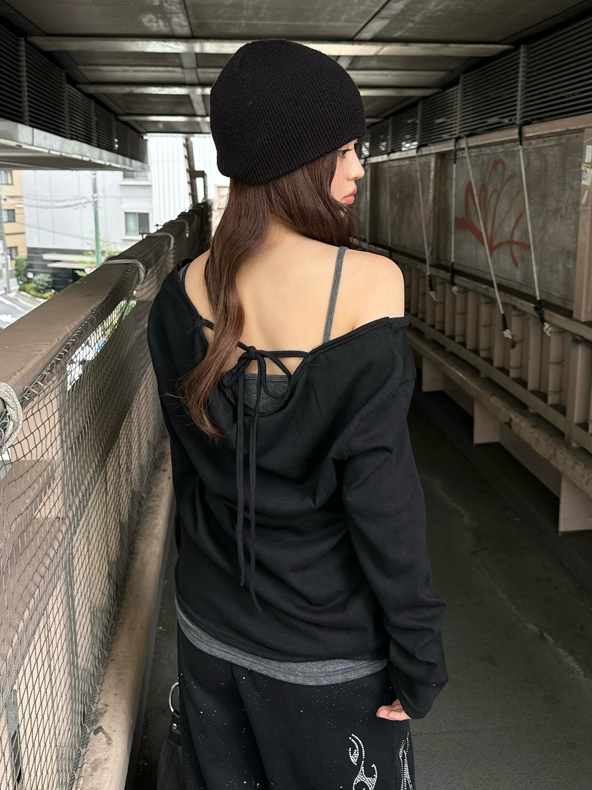 前後を変えて紐を首に回すことで、ホルターネック風の着こなしも楽しめます。