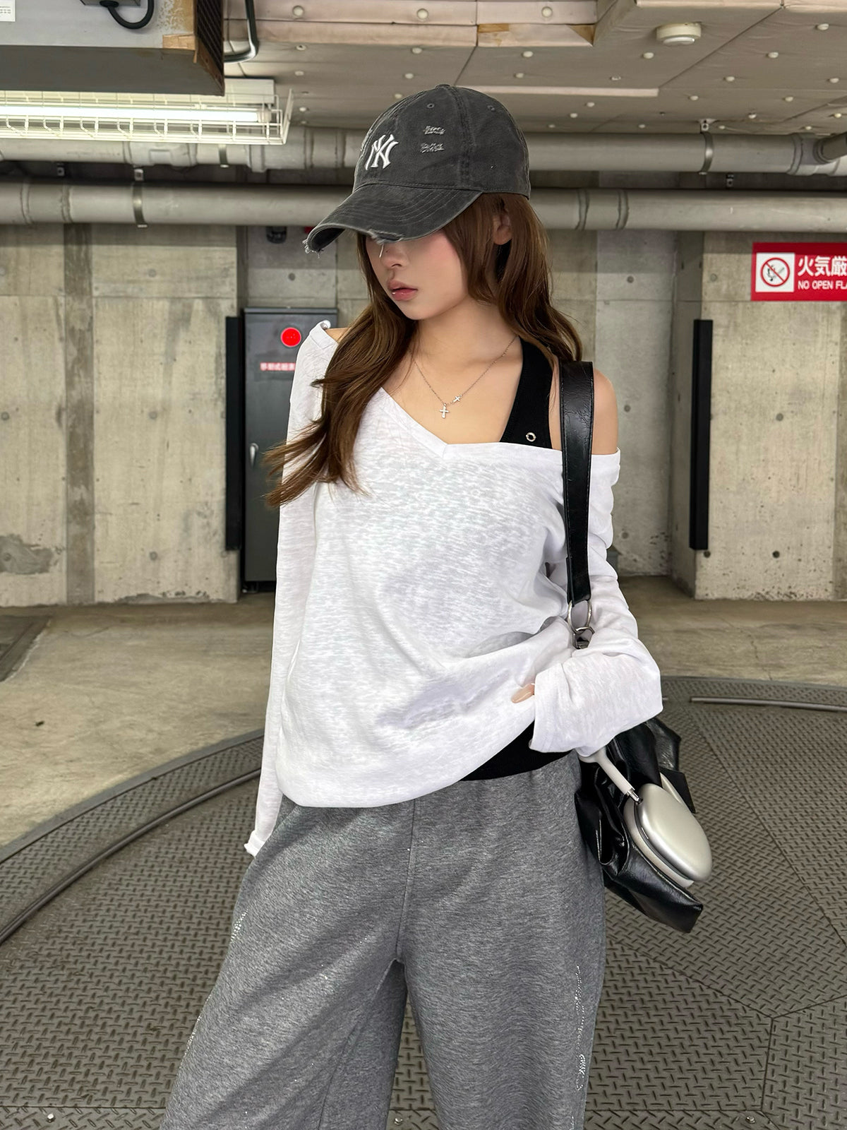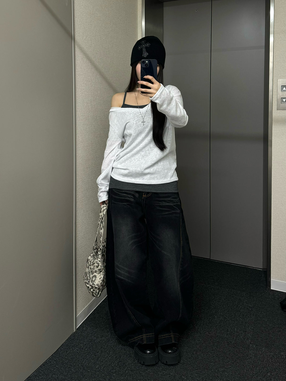 ゆるく落ちるシルエットが抜け感を演出する、ルーズカットソー。