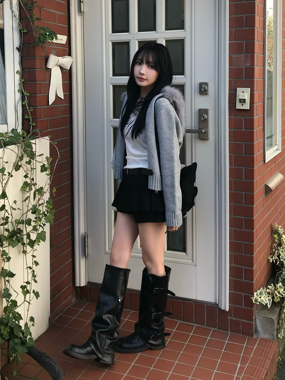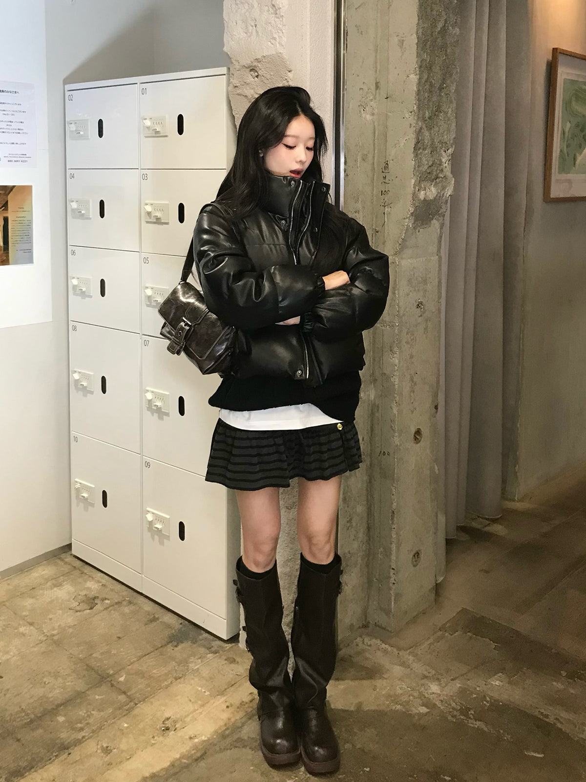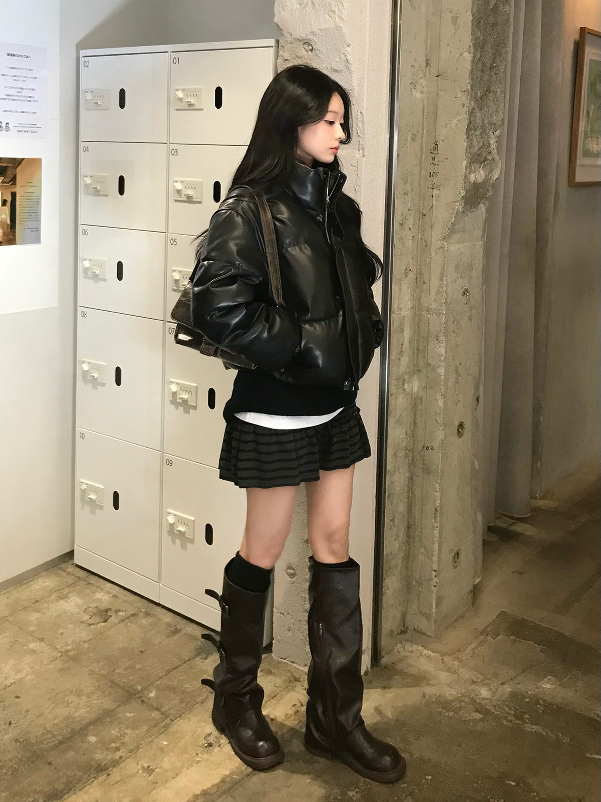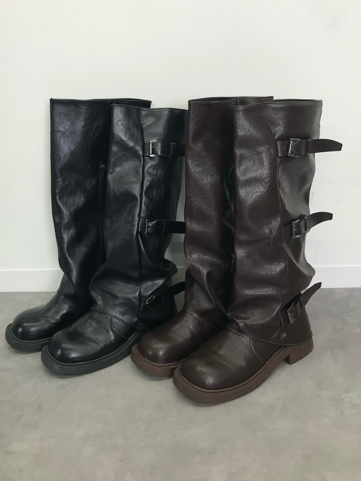 エッジの効いたベルトデティールがアクセントのカバーロングブーツ。
