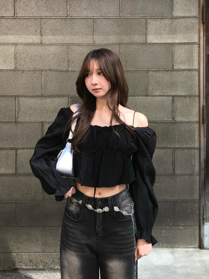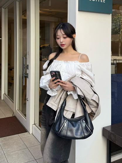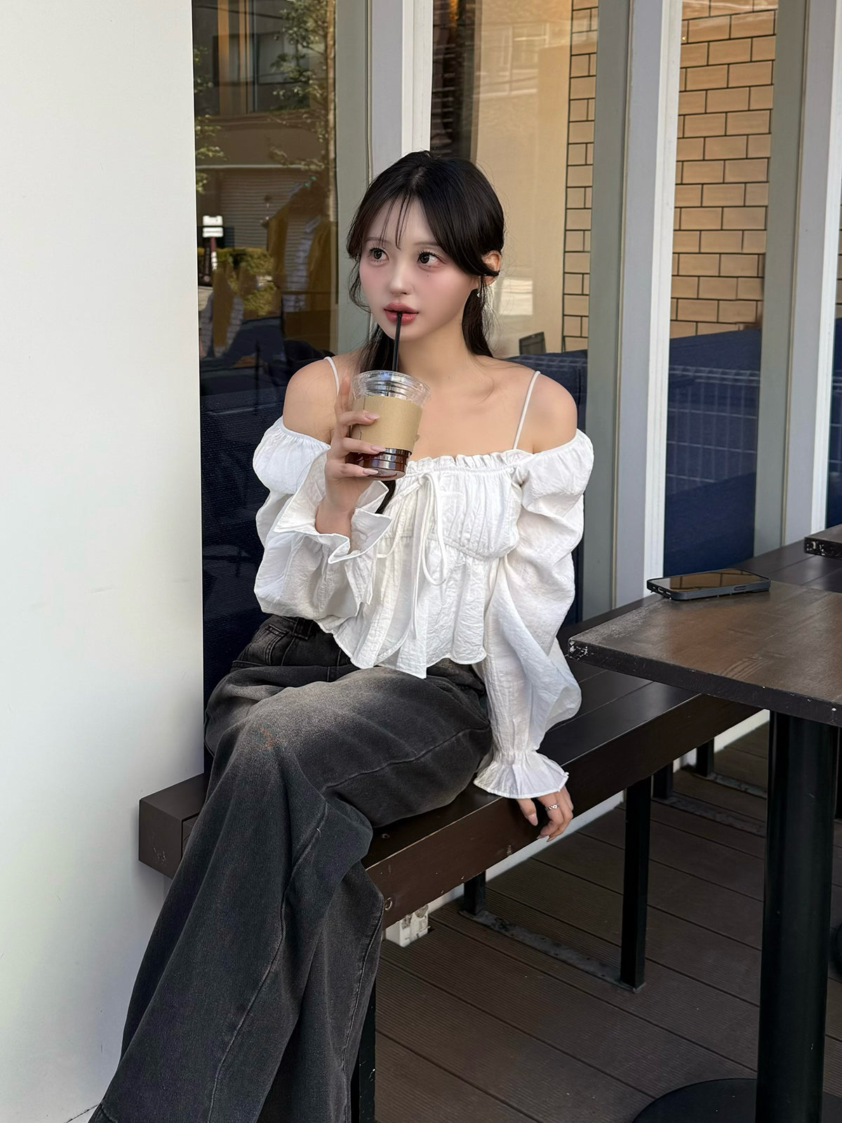 肩から落としてオフショルでも着用可能な2way仕様です。