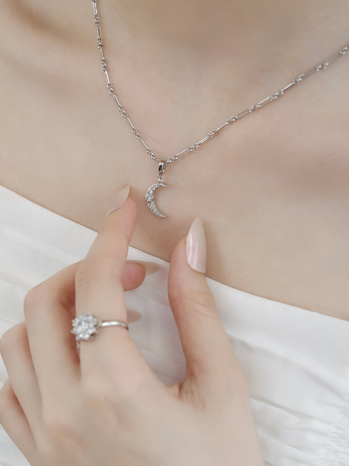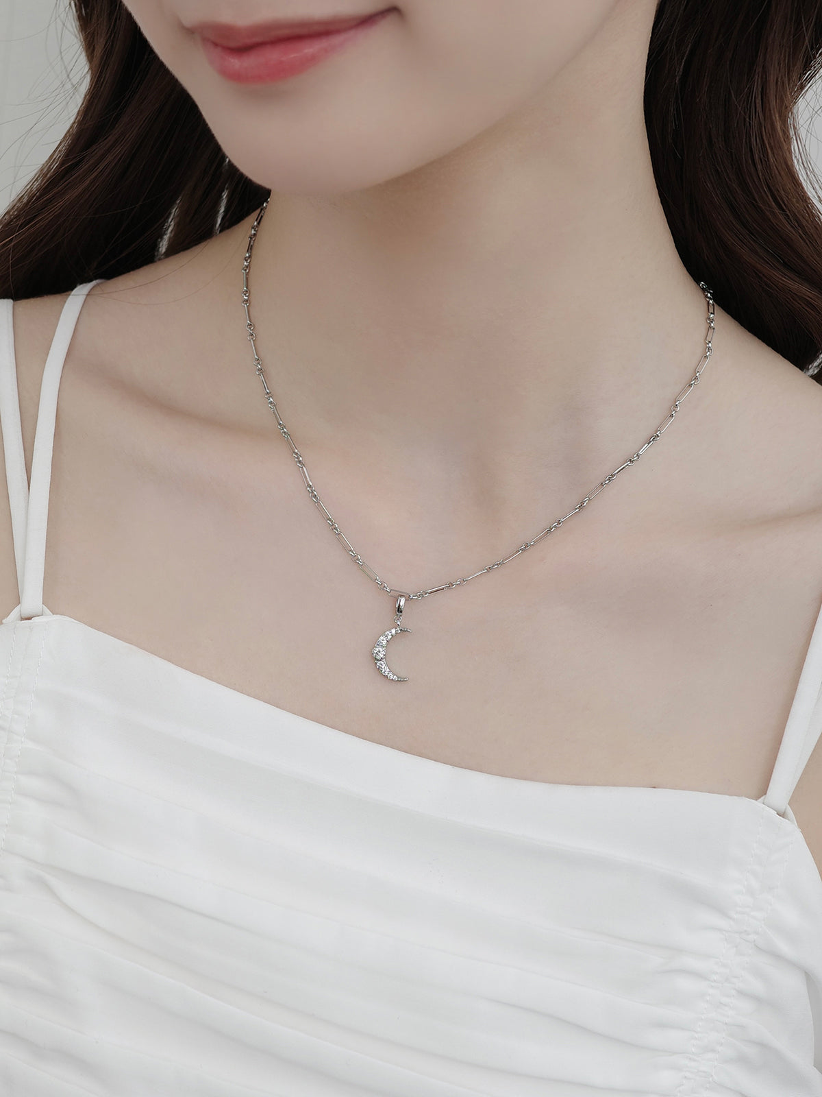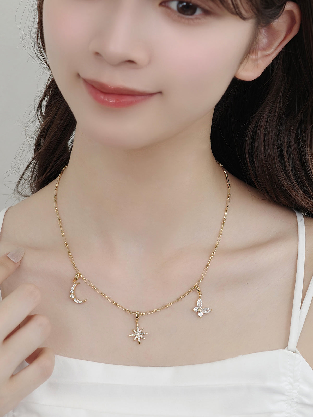 月のモチーフにキュービックジルコニアが繊細に輝く、幻想的なクリスタルルナチャーム。