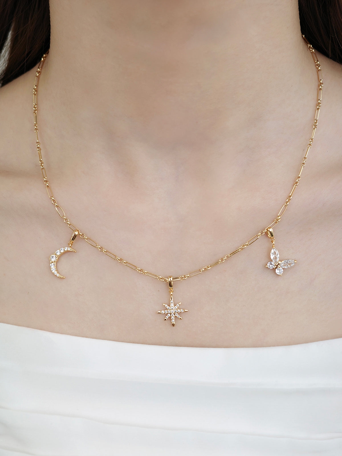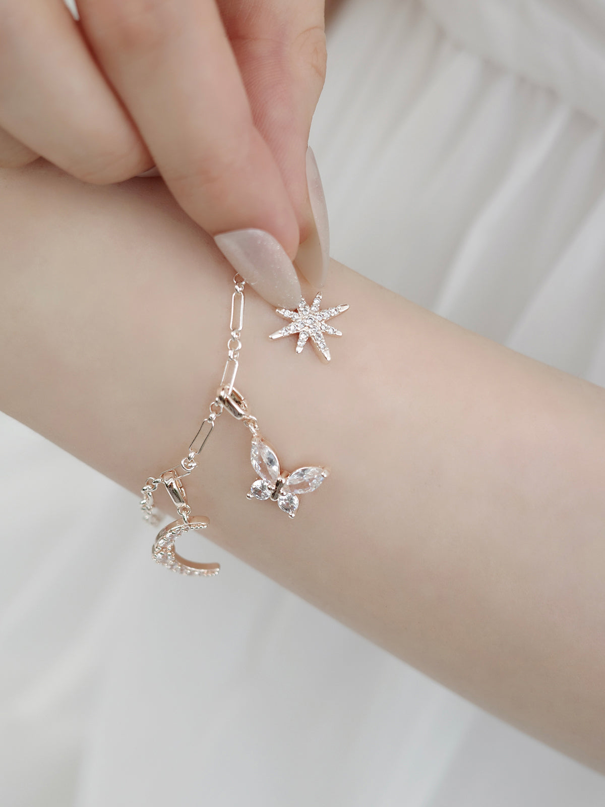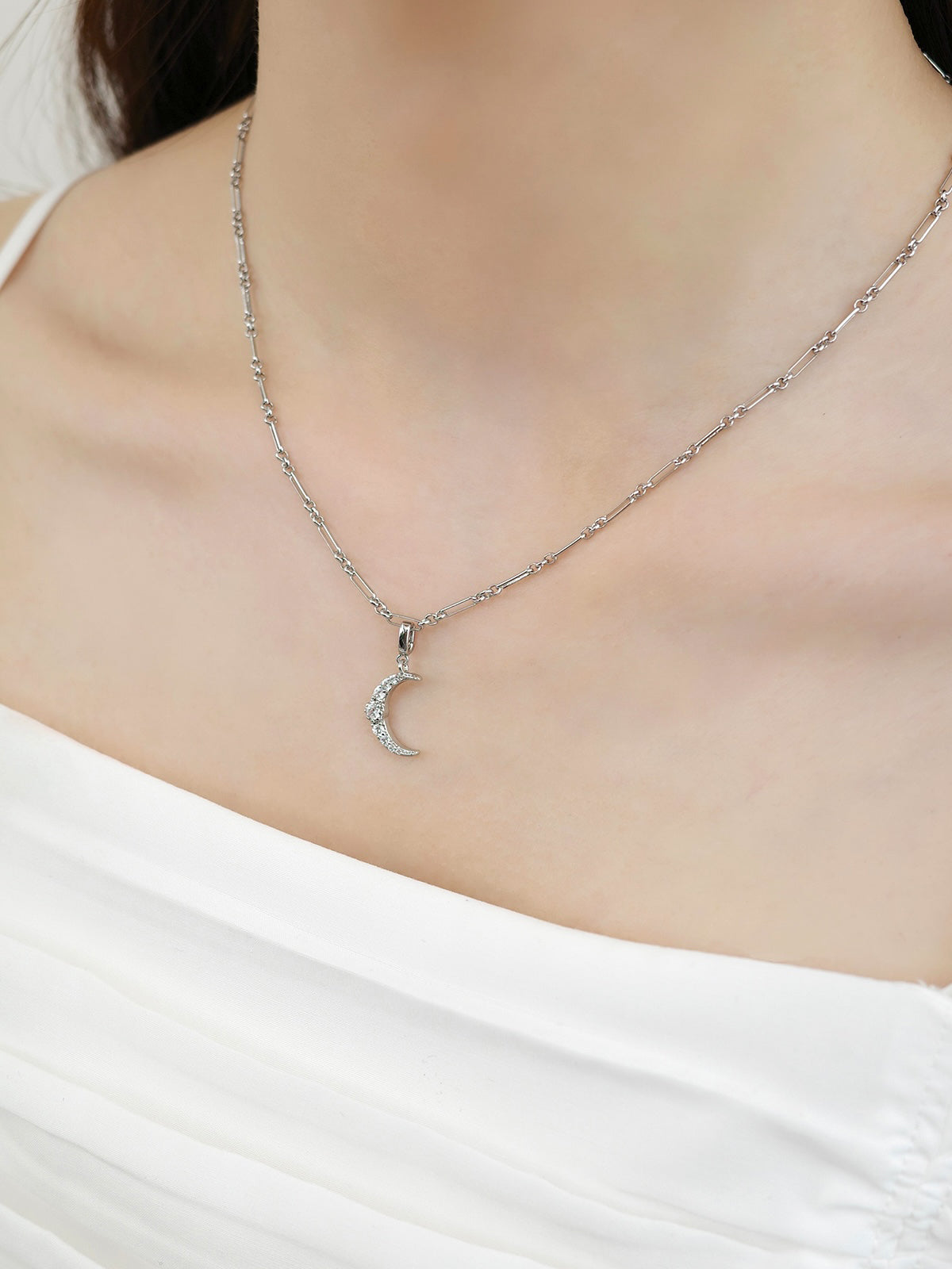 月のモチーフにキュービックジルコニアが繊細に輝く、幻想的なクリスタルルナチャーム。