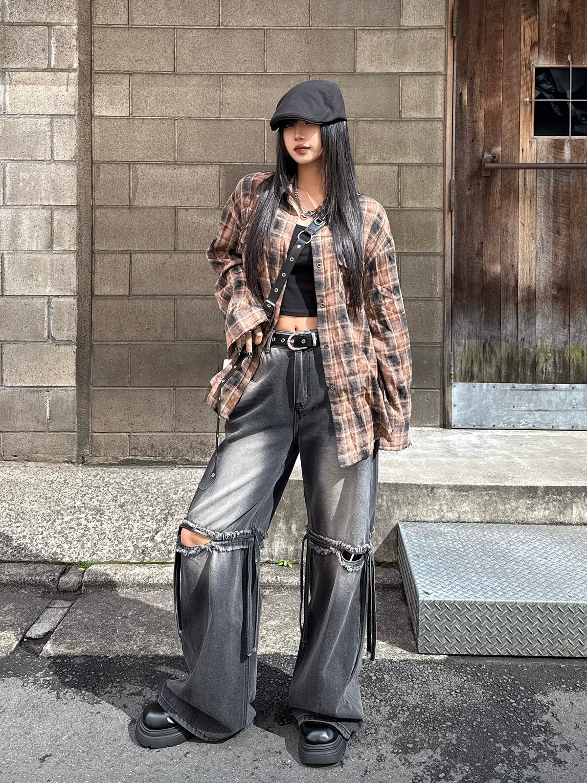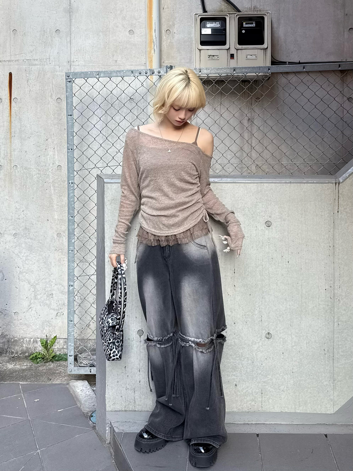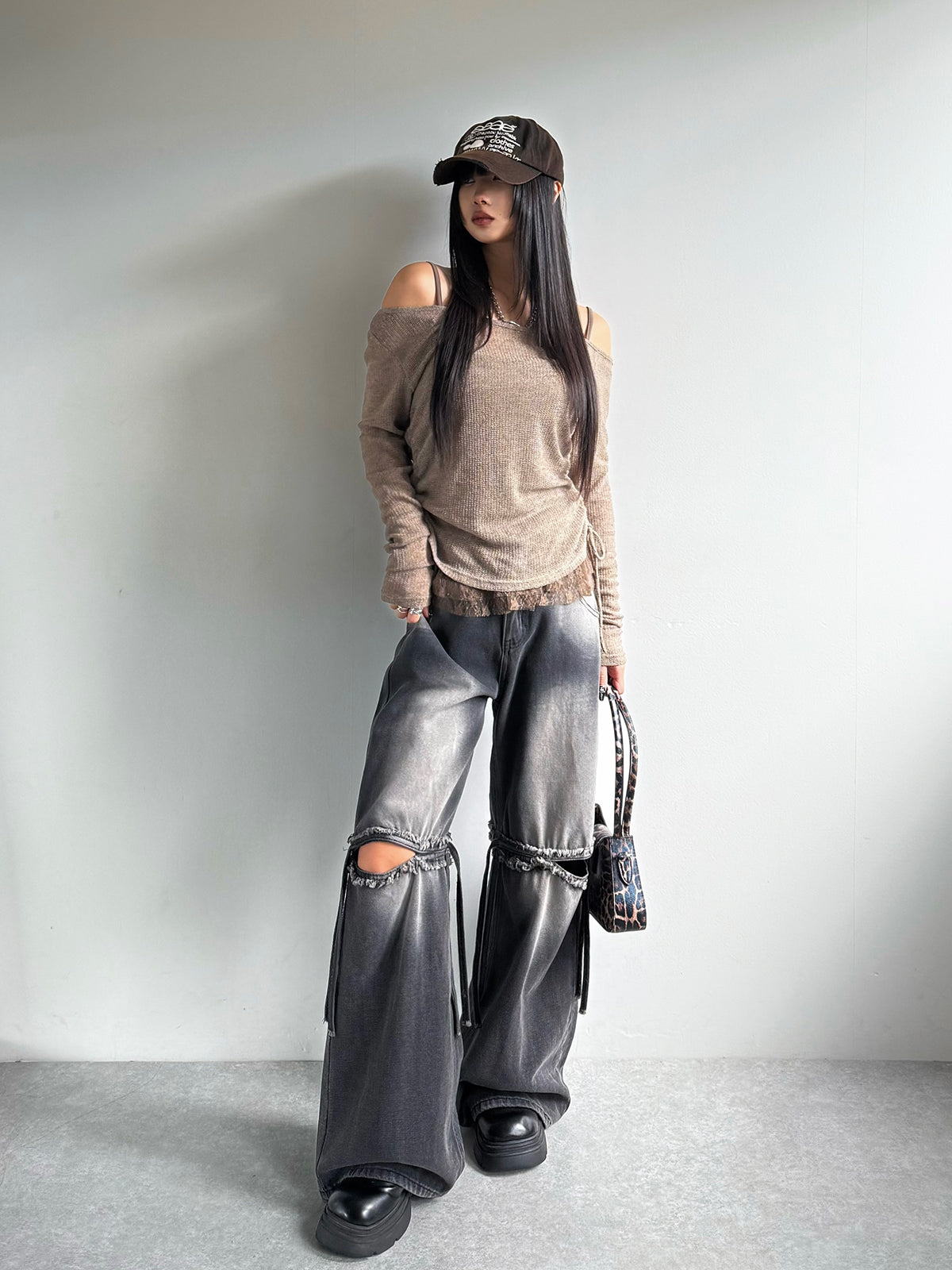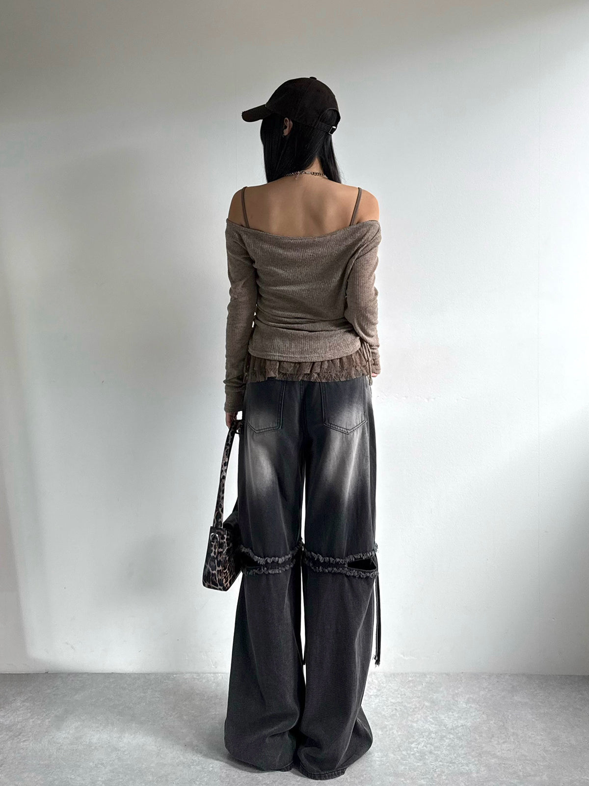 カットアウトワイドデニムパンツ