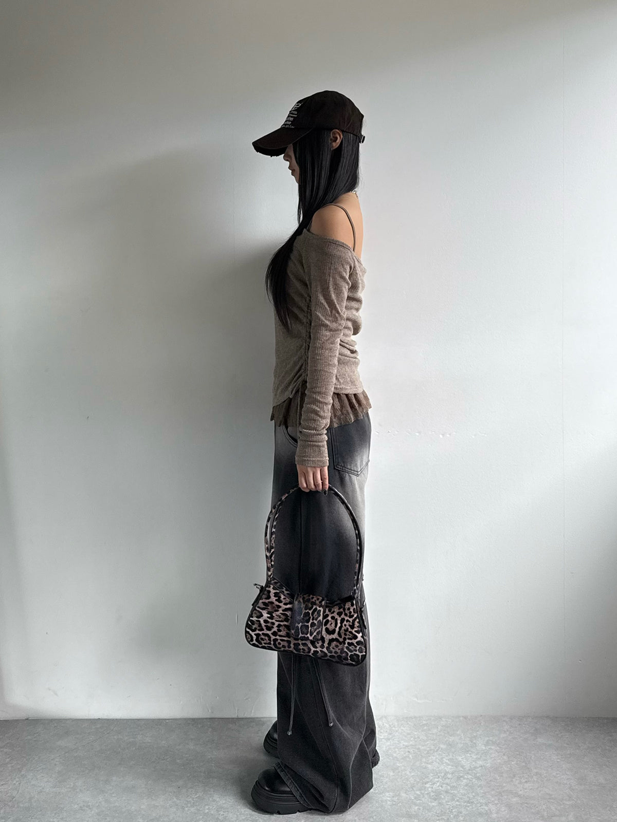 歩くたびに揺れるストラップ紐が目を惹くアイテムです。