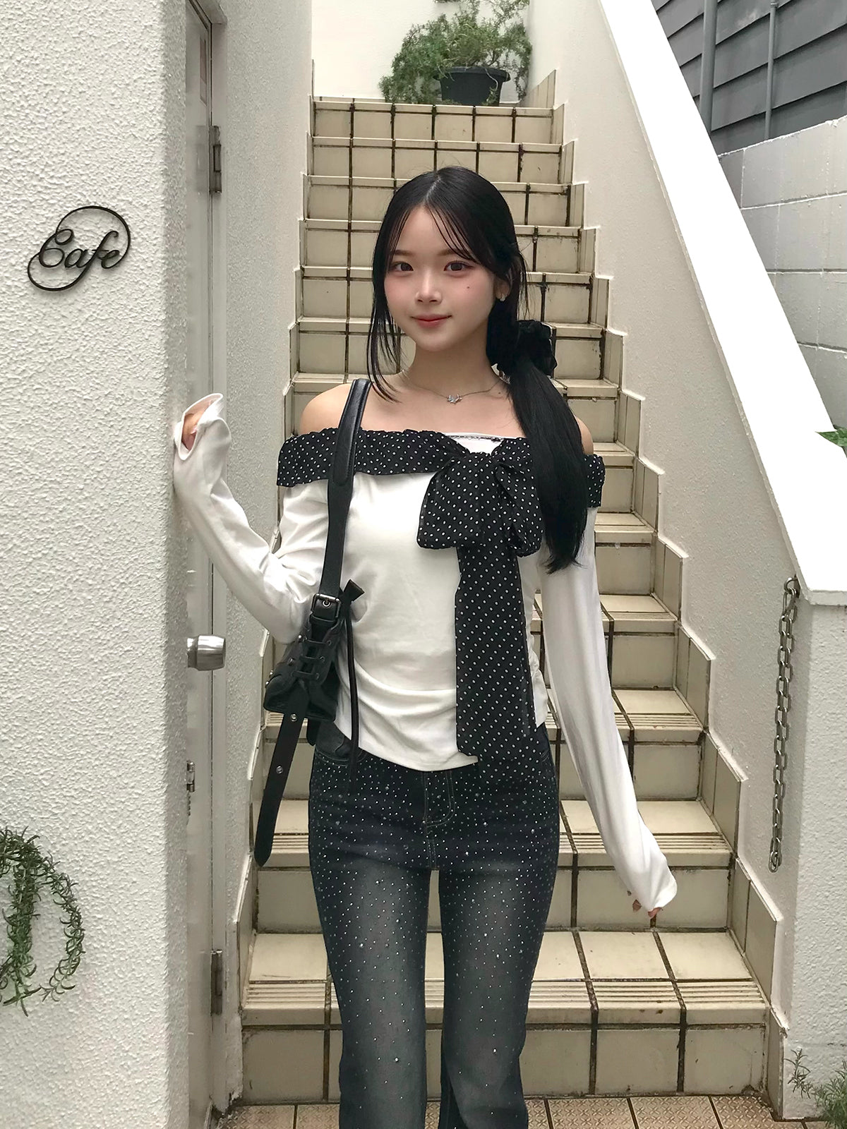 ドットリボンオフショルカットソー