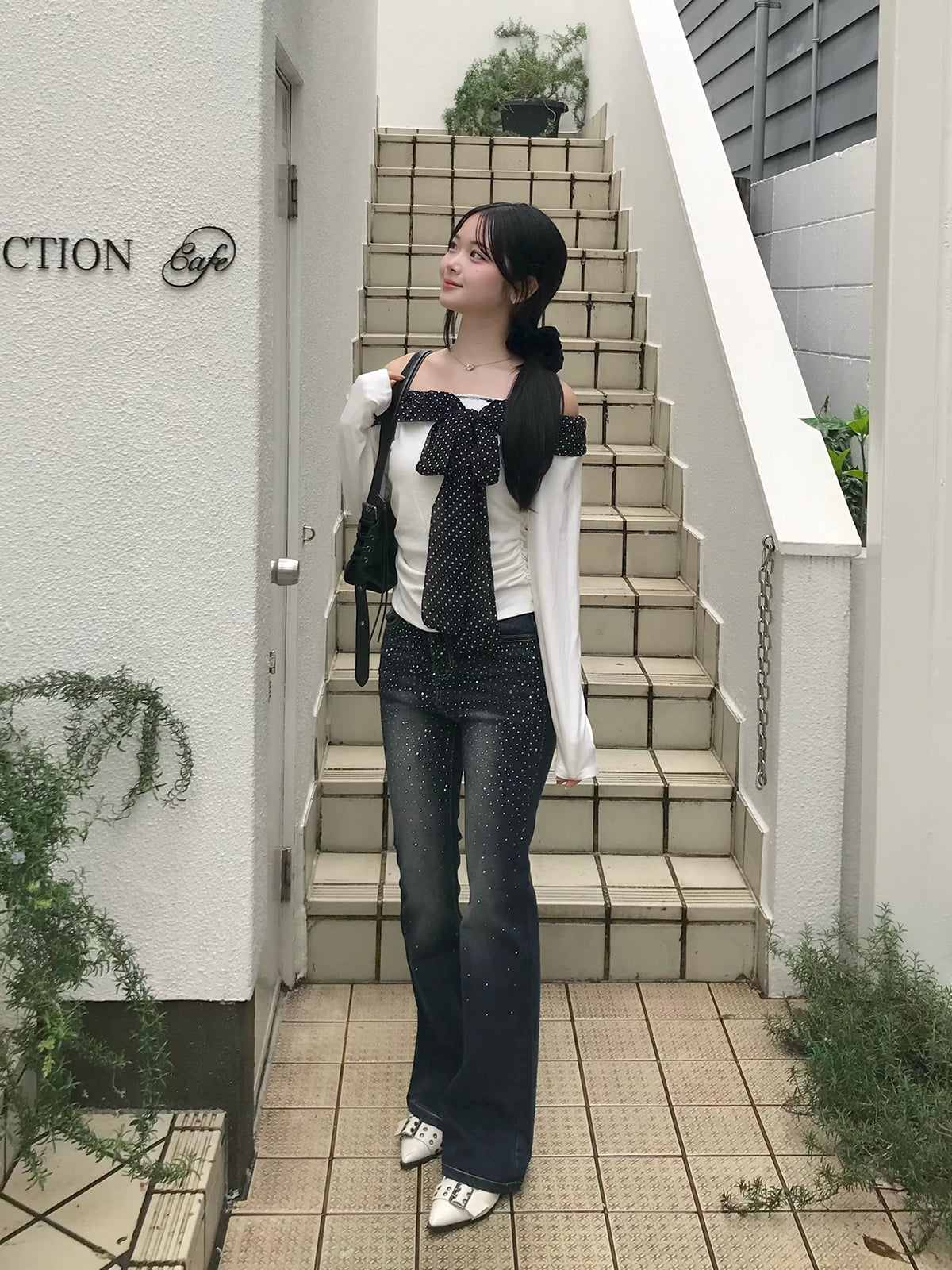 ・ラインストーンウォッシュフレアデニムパンツ