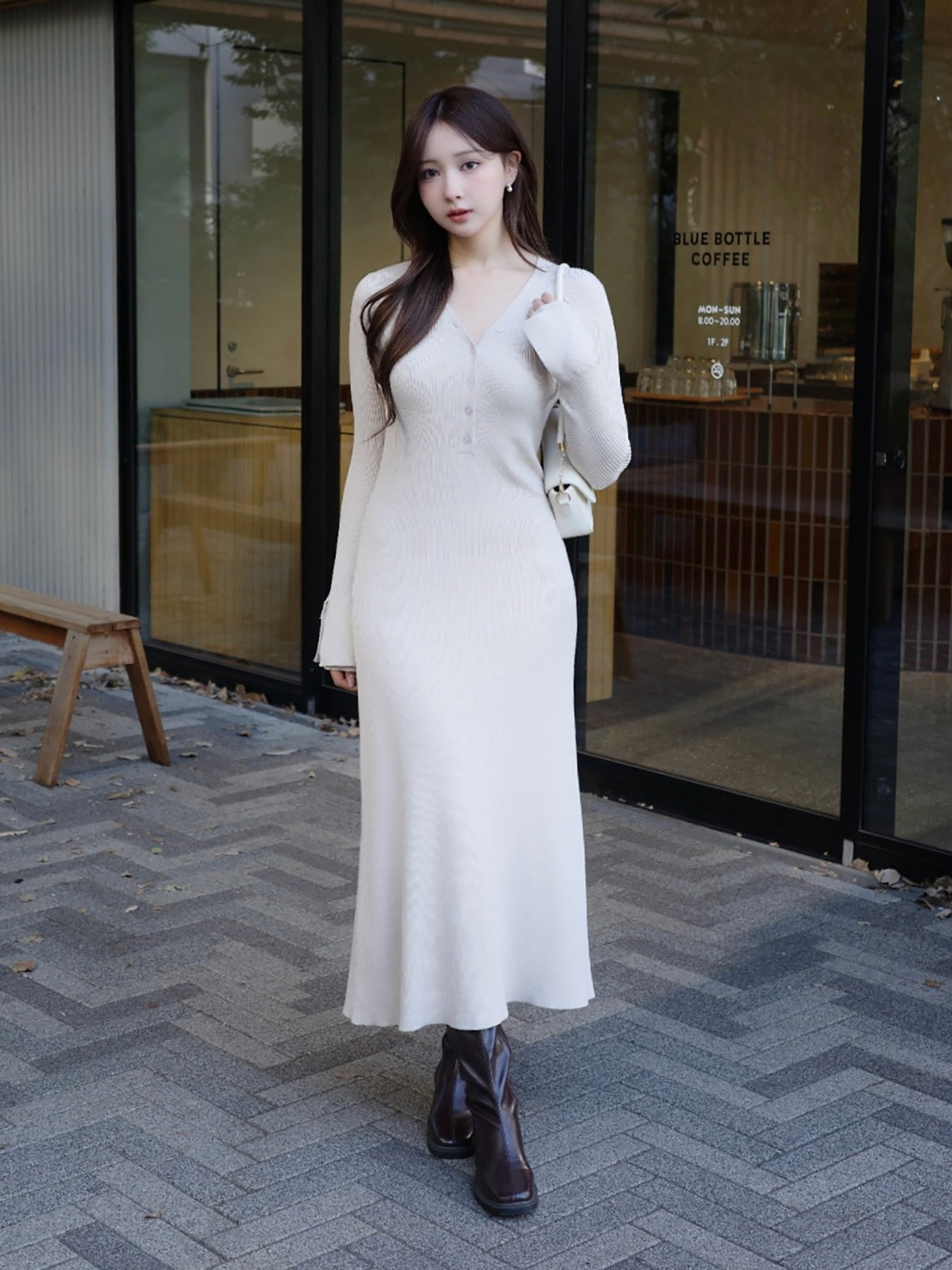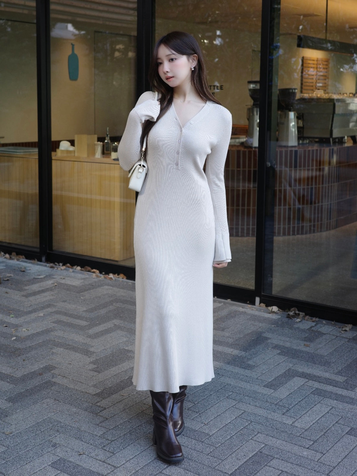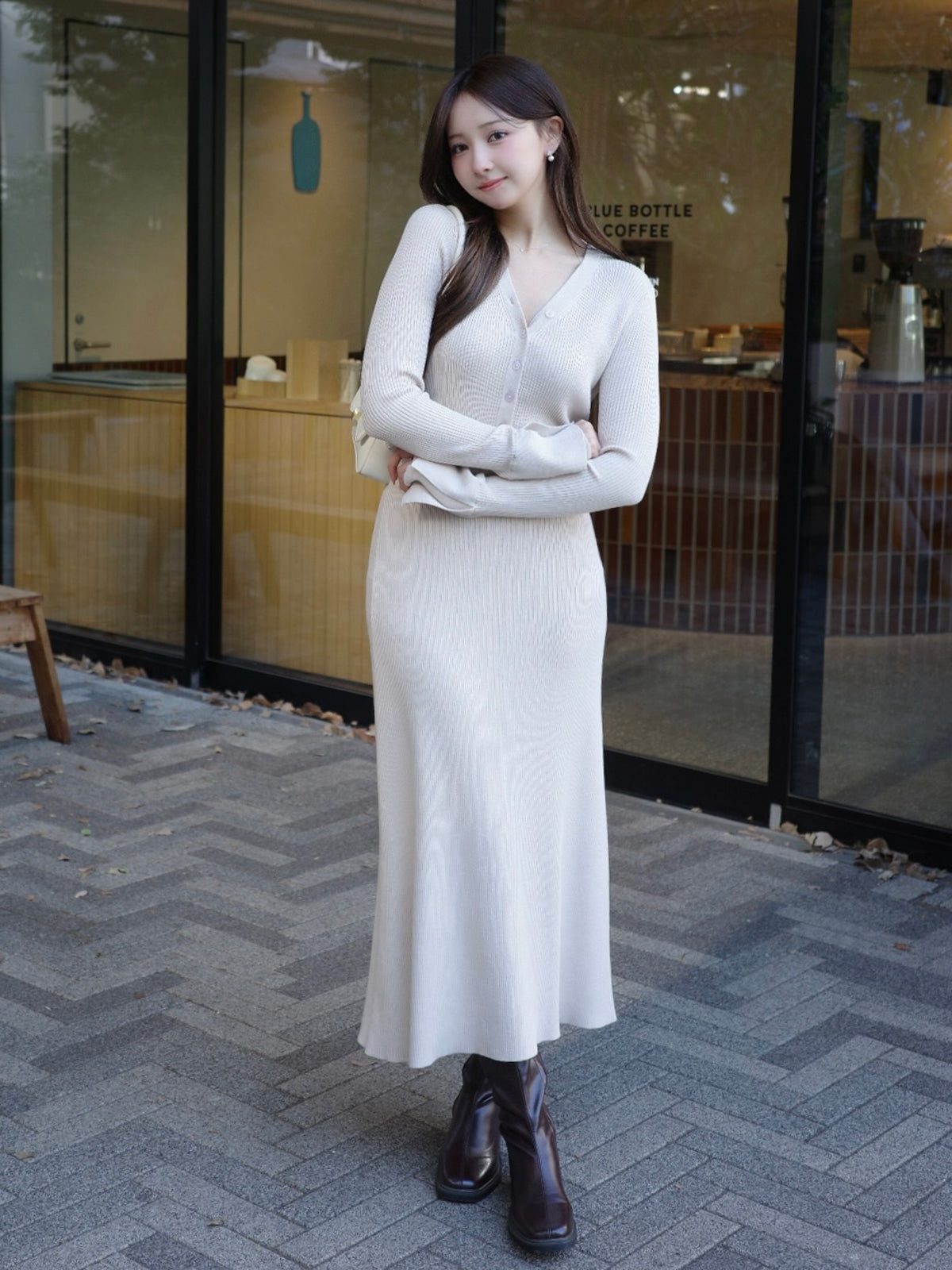 【新色・新素材】フロントボタンフレアニットワンピース