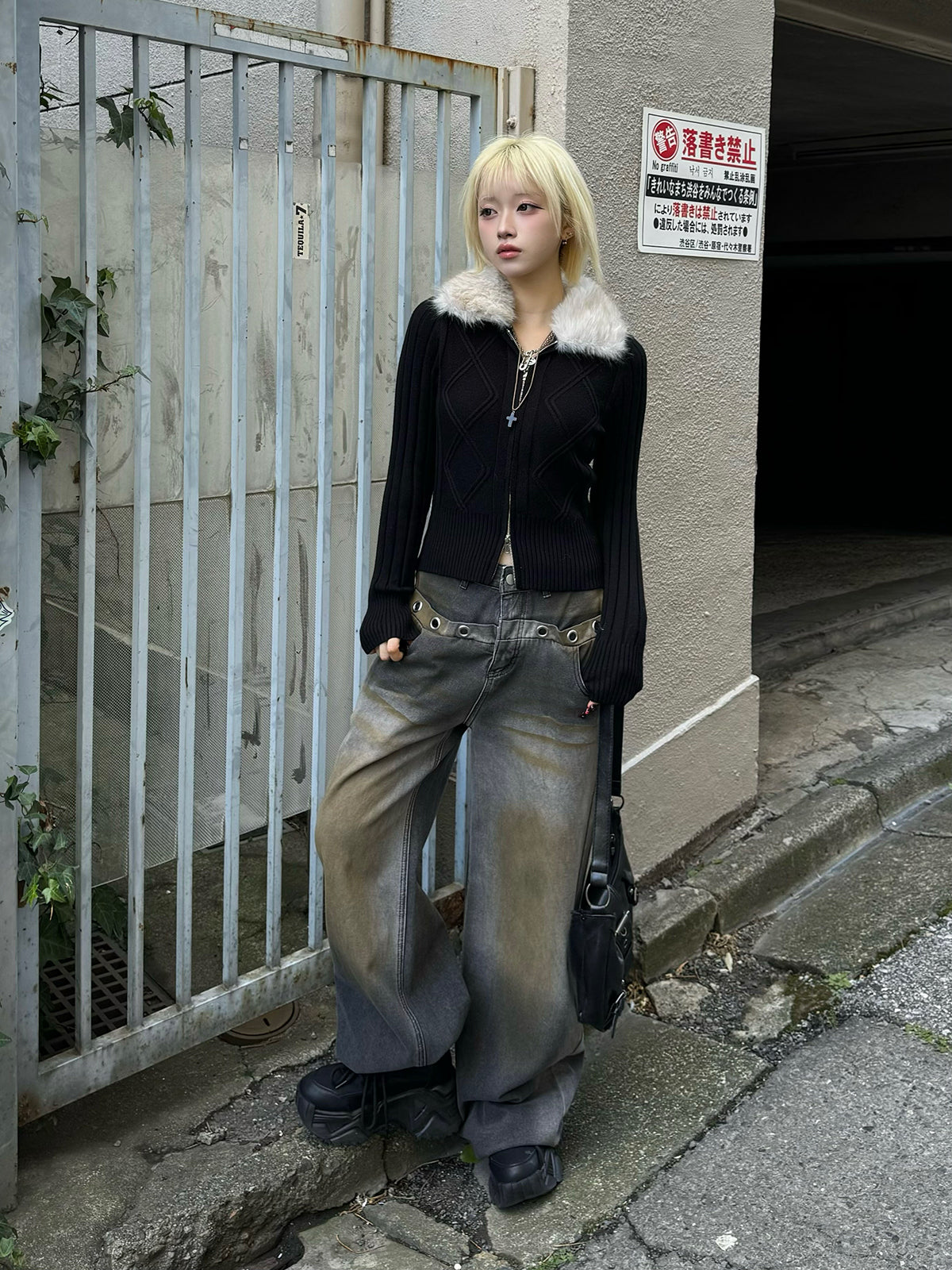 ファータッチカラーダブルジップニット