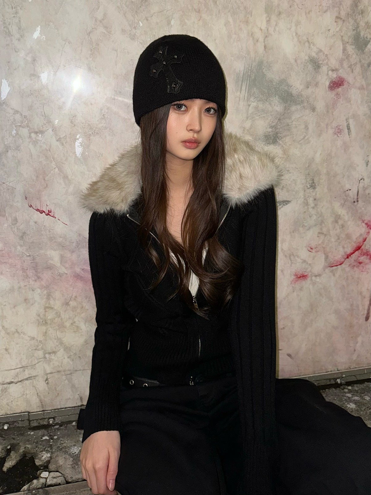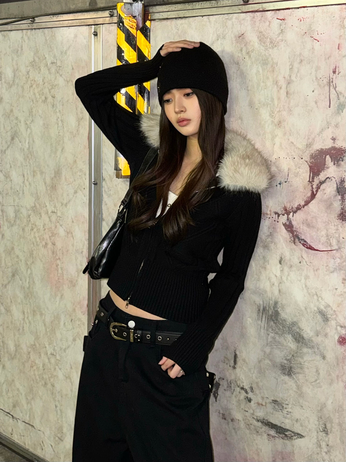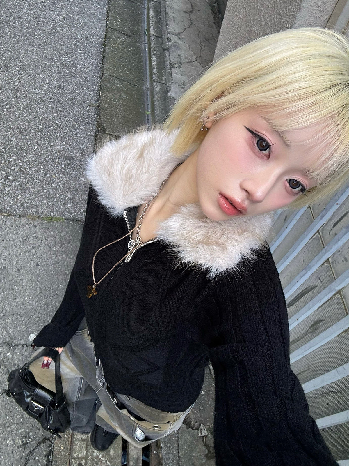 ふわっとしたファータッチの襟が季節感を引き寄せるダブルジップニット。