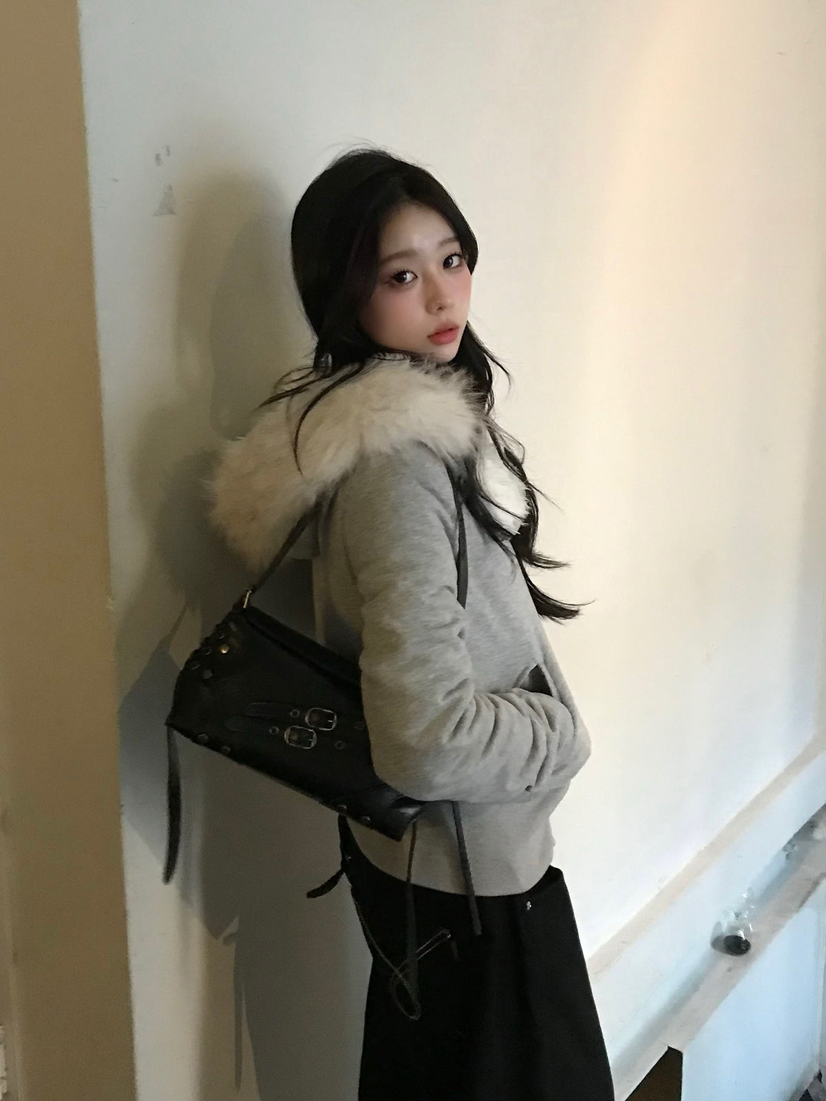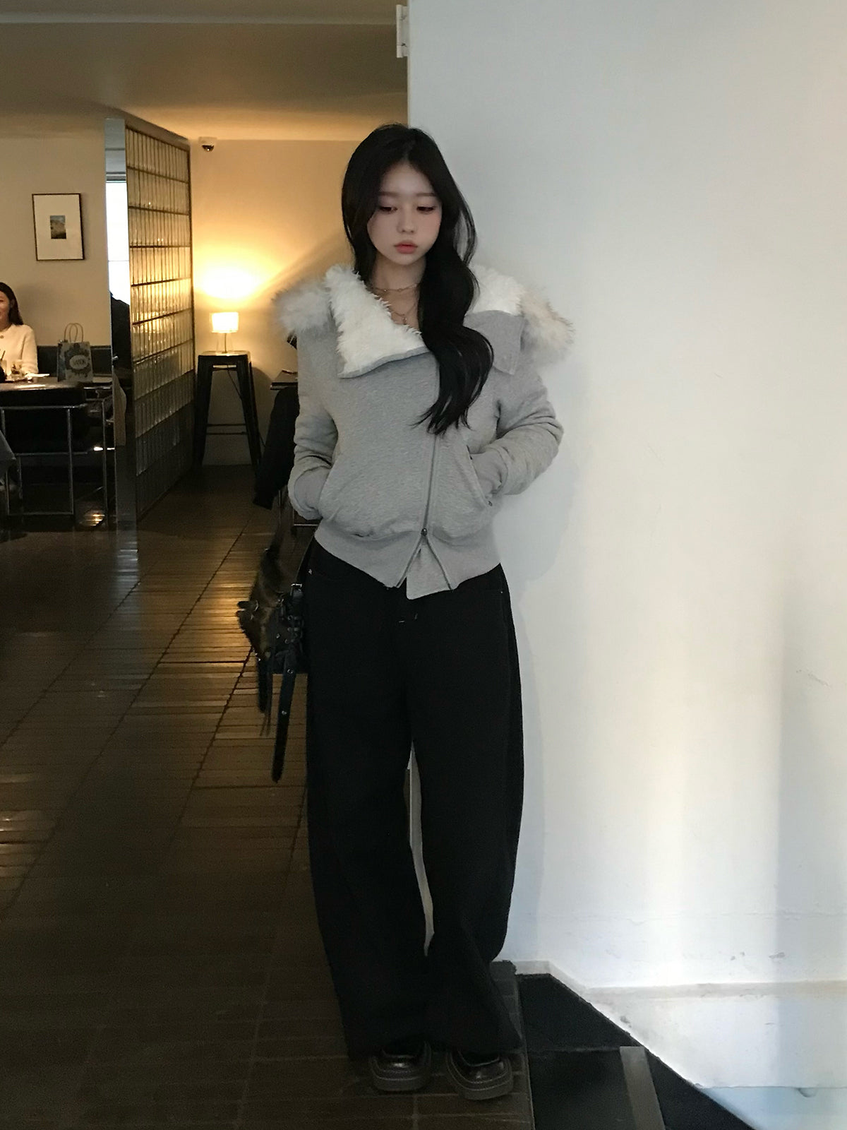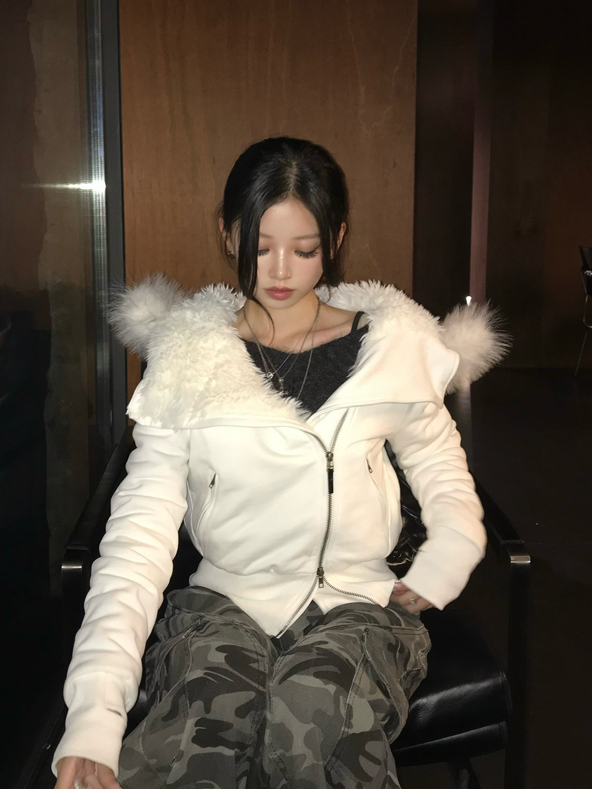 ふわっとしたファータッチ素材を内側まで使用し、暖かさと着心地の良さを兼ね備えたライダース風ジャケット。