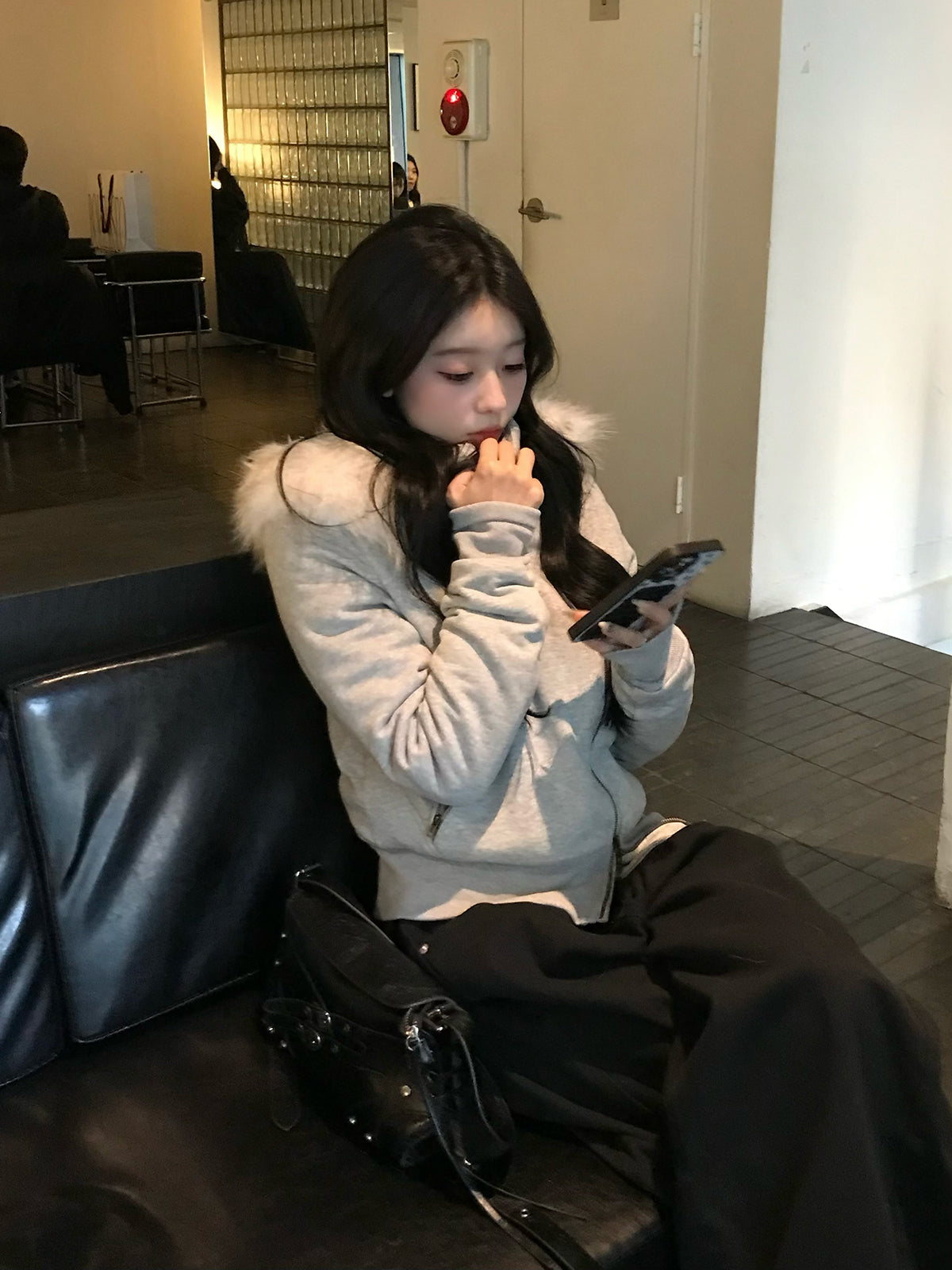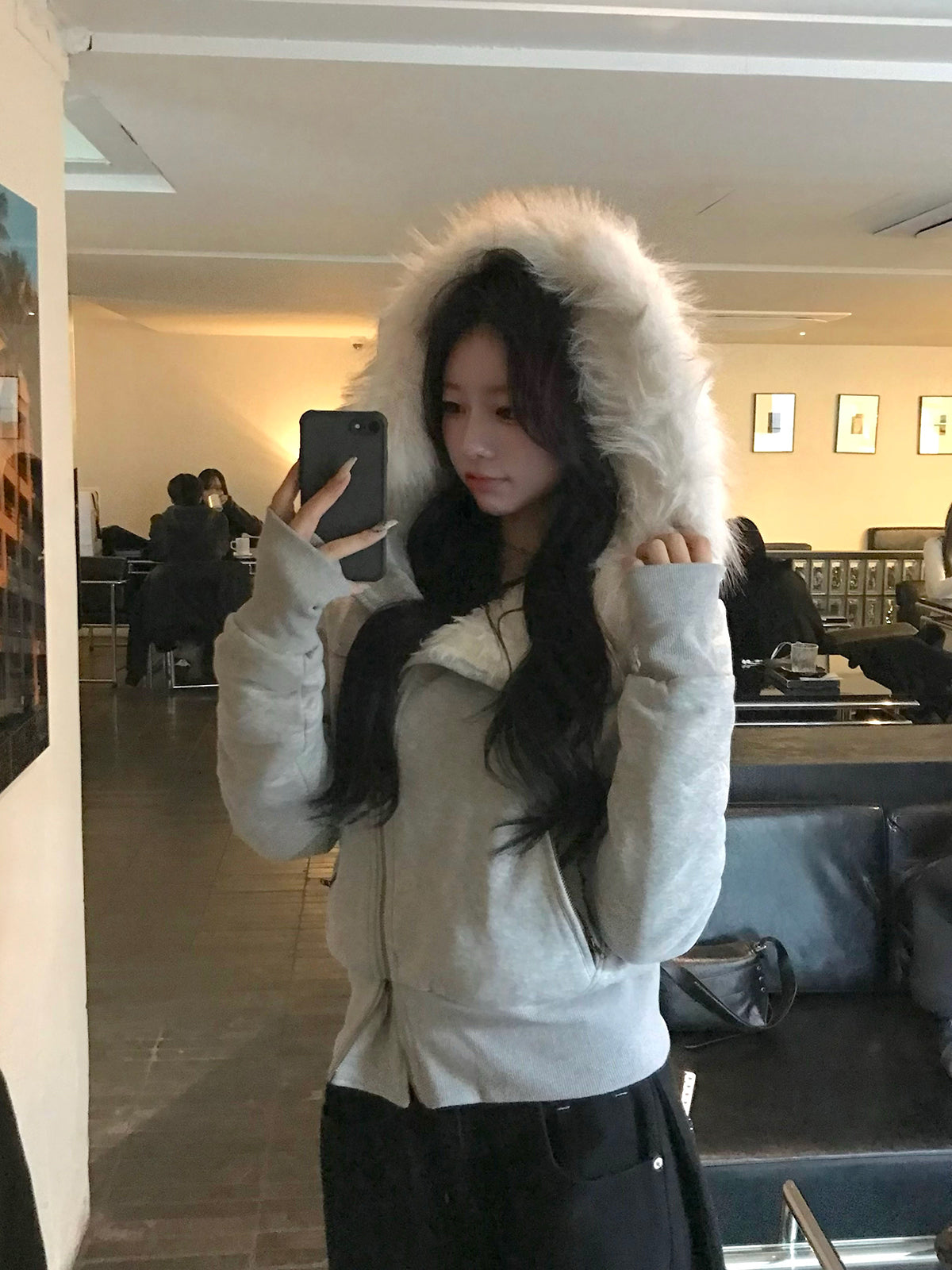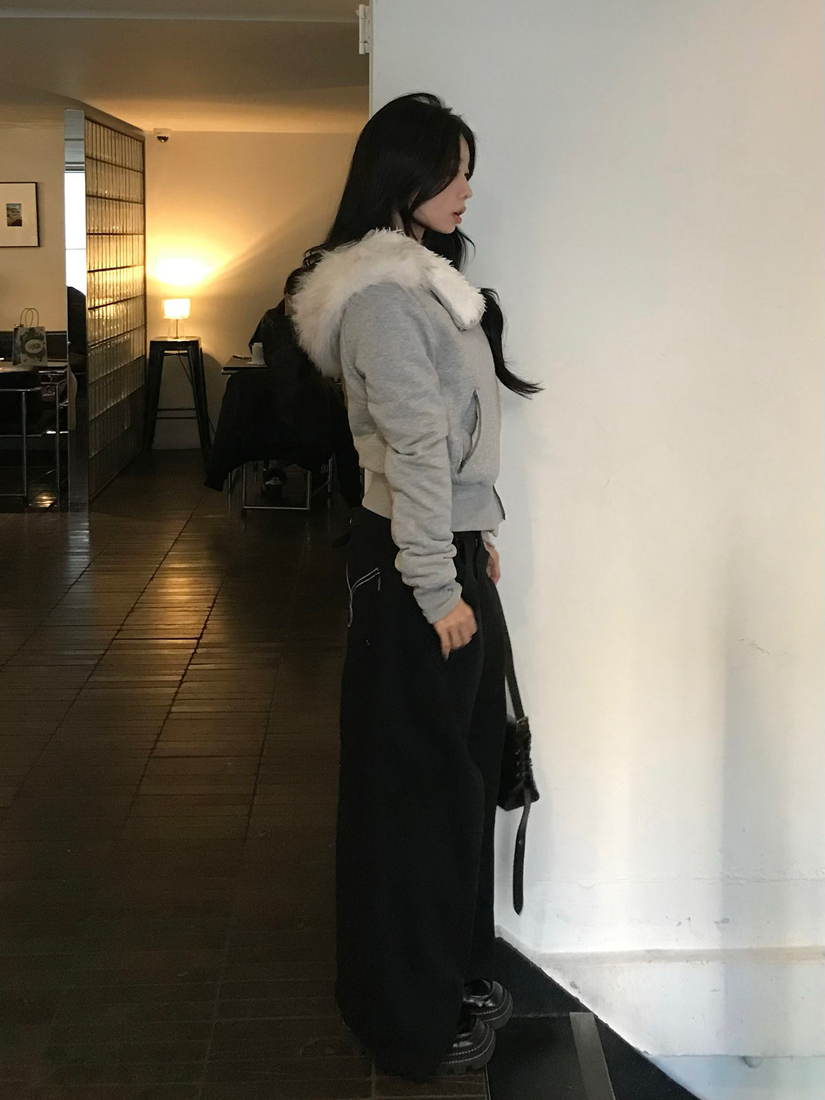 ふわっとしたファータッチ素材を内側まで使用し、暖かさと着心地の良さを兼ね備えたライダース風ジャケット。