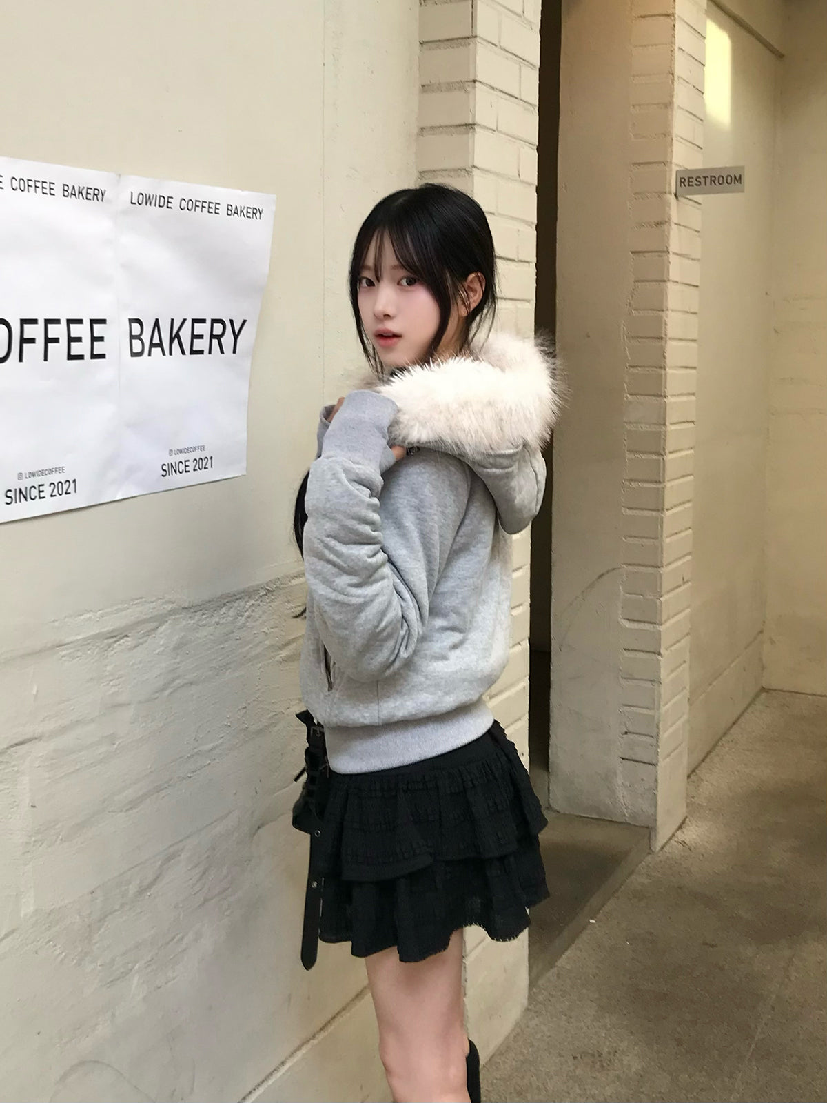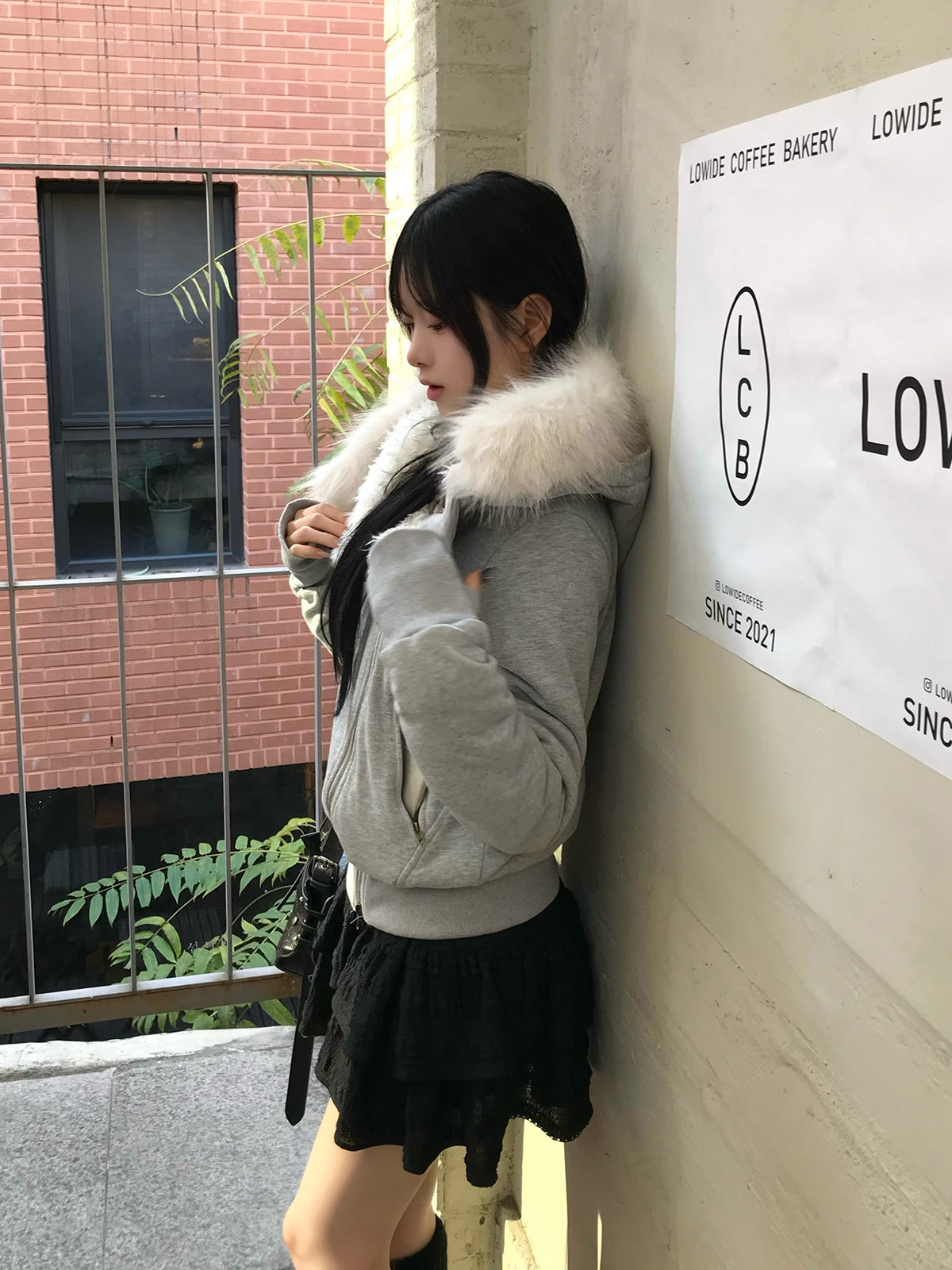 フード付きのデザインがライダース特有の硬さを和らげ、ほどよく力の抜けたムードに。