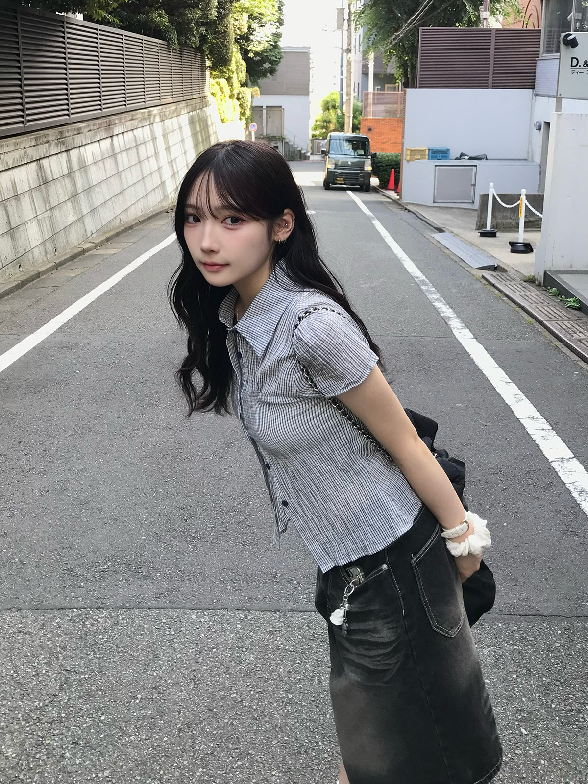 ほんのり透け感のある素材とタイトめなシルエットが、上品さと抜け感を両立。