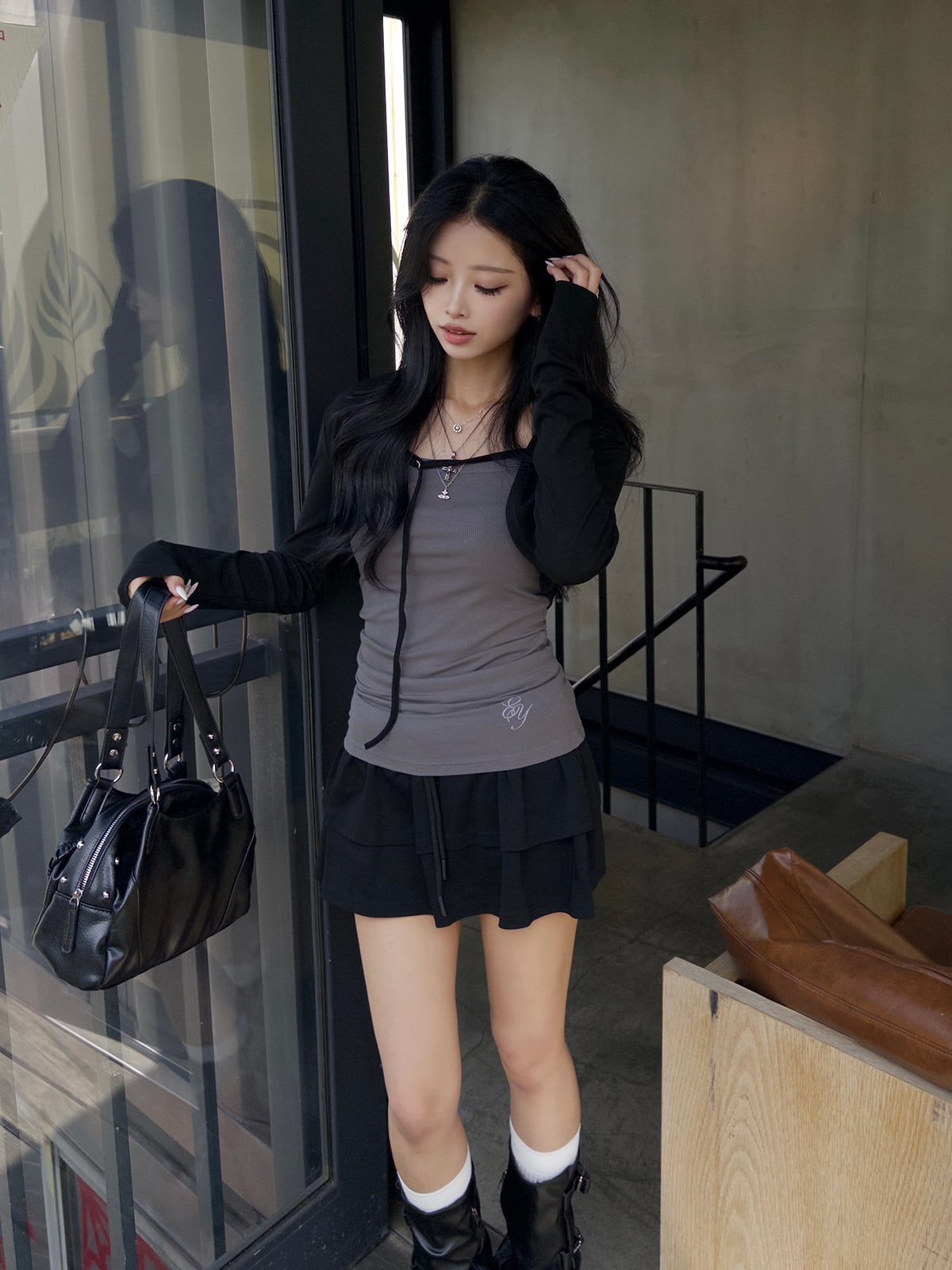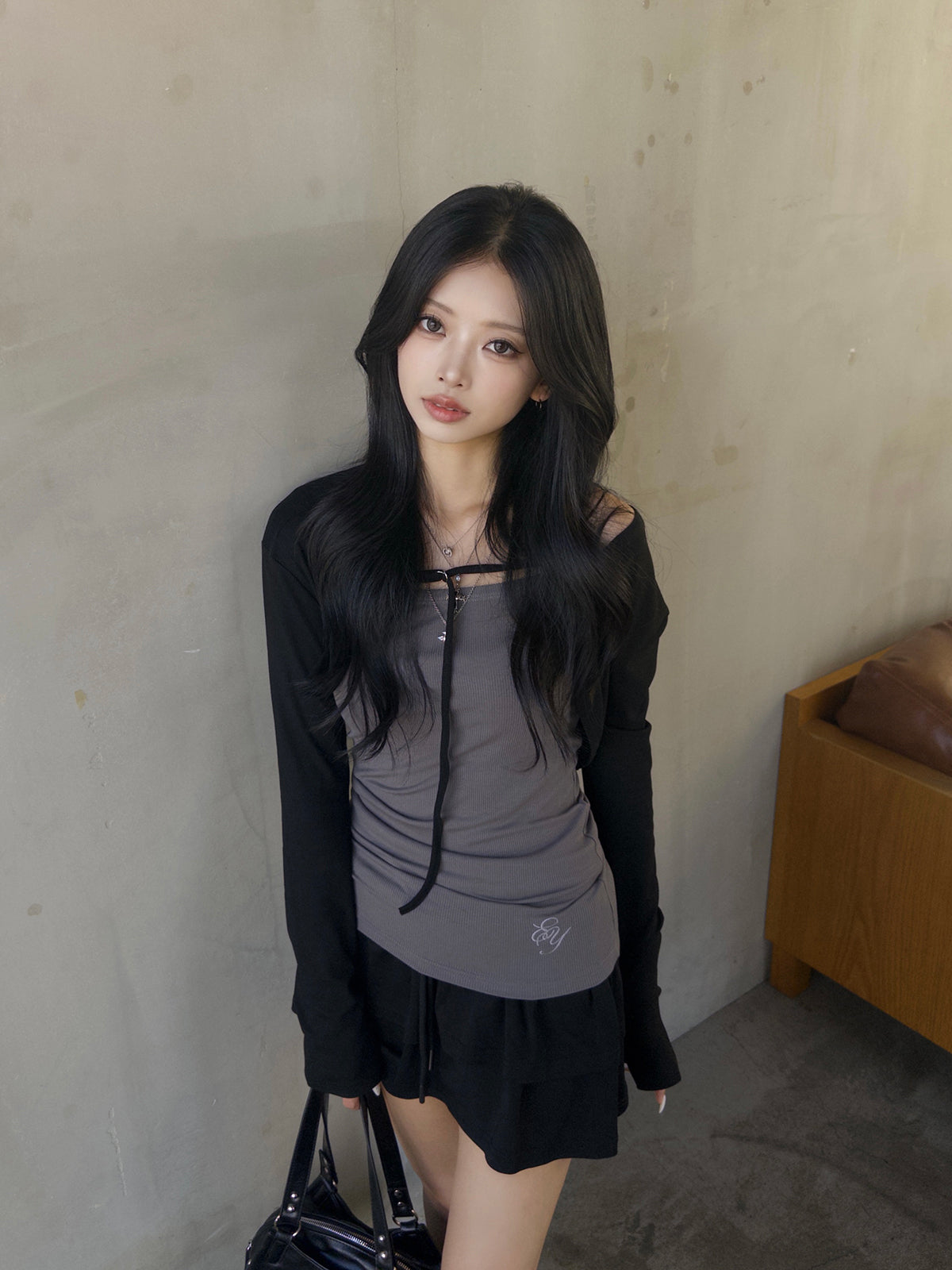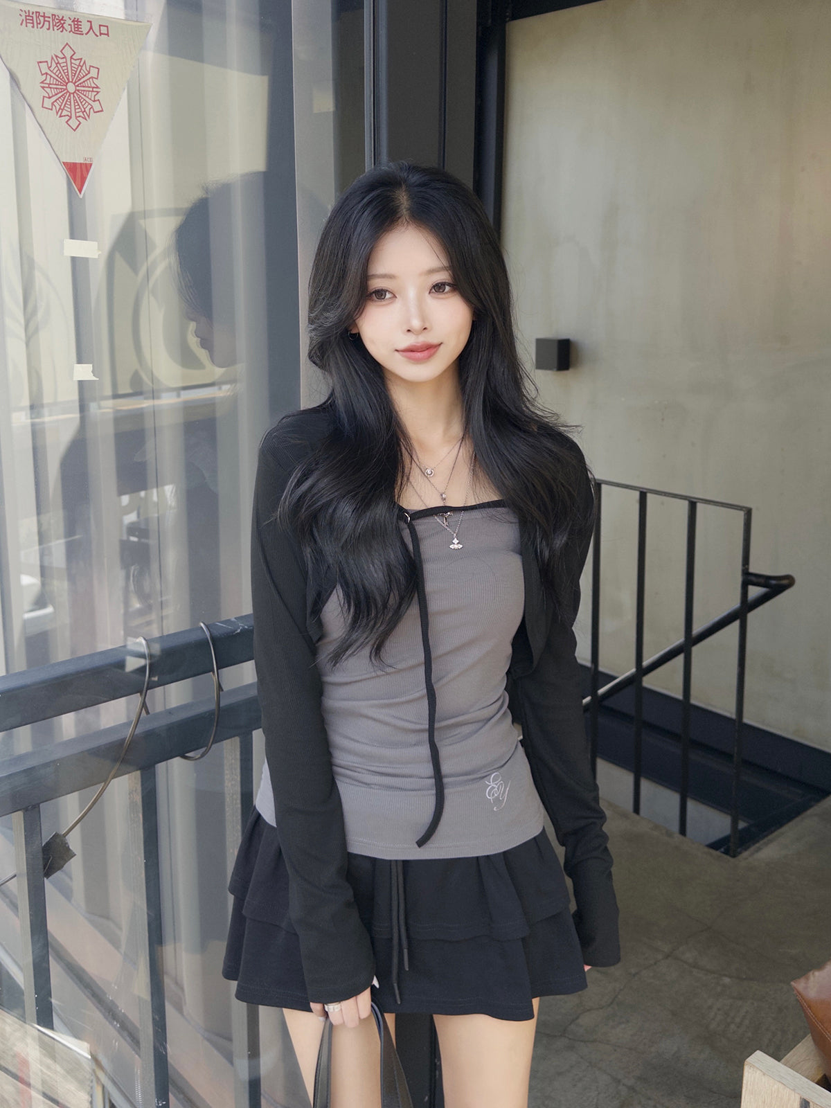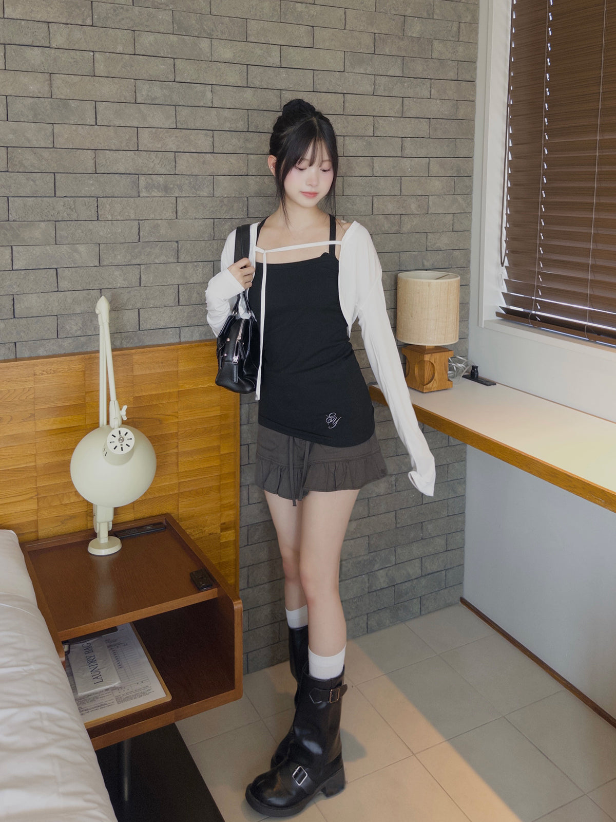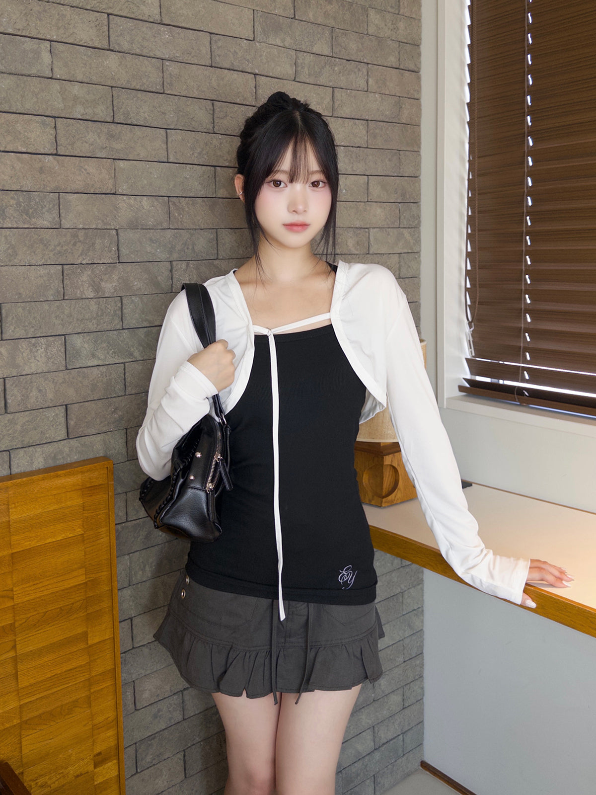 ボレロはフロントの紐でシルエットを調整でき、コーデにニュアンスをプラス。