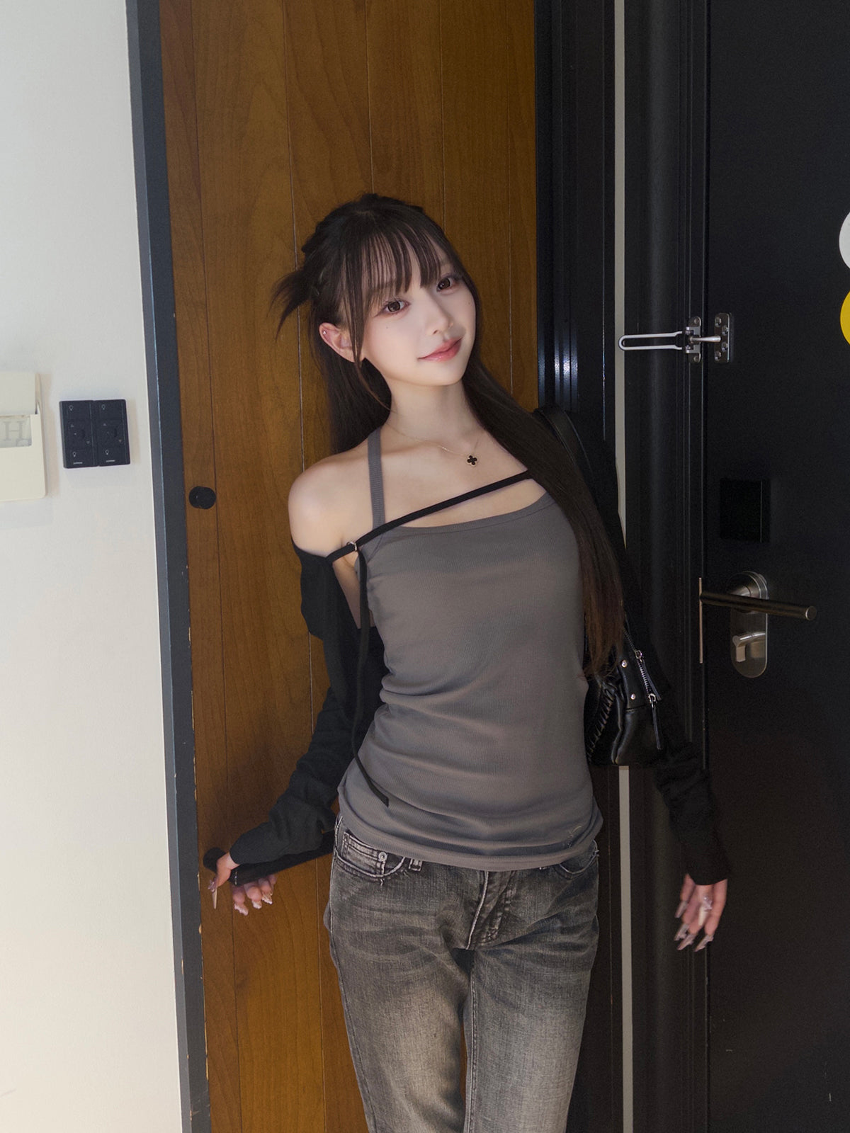 軽やかなリブ素材で仕立てた、キャミソールとボレロのセットアイテム。