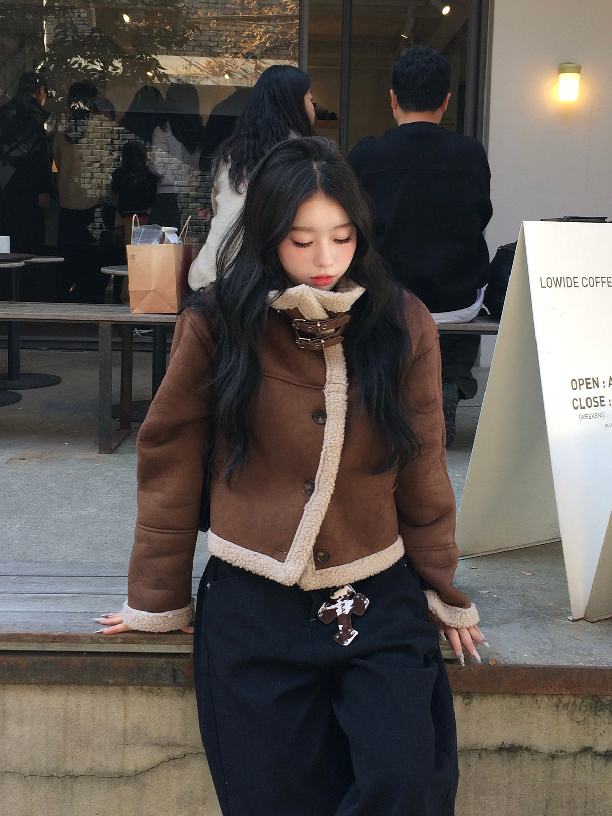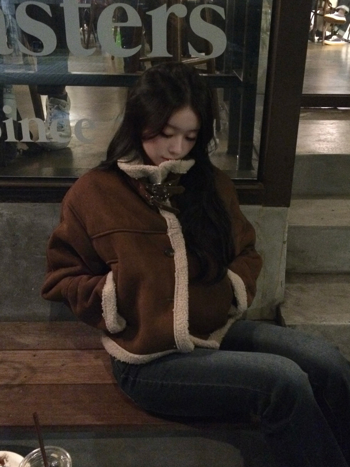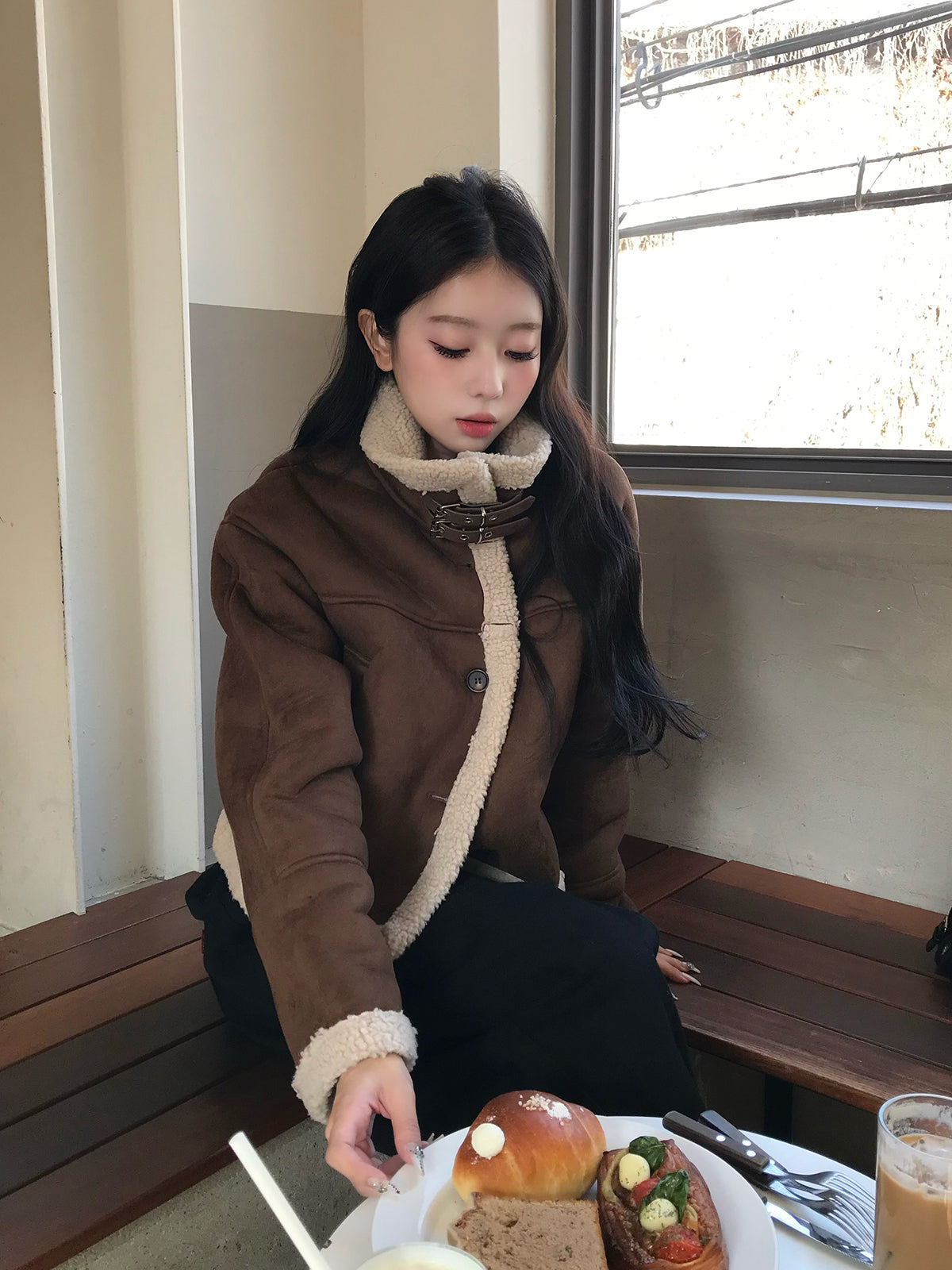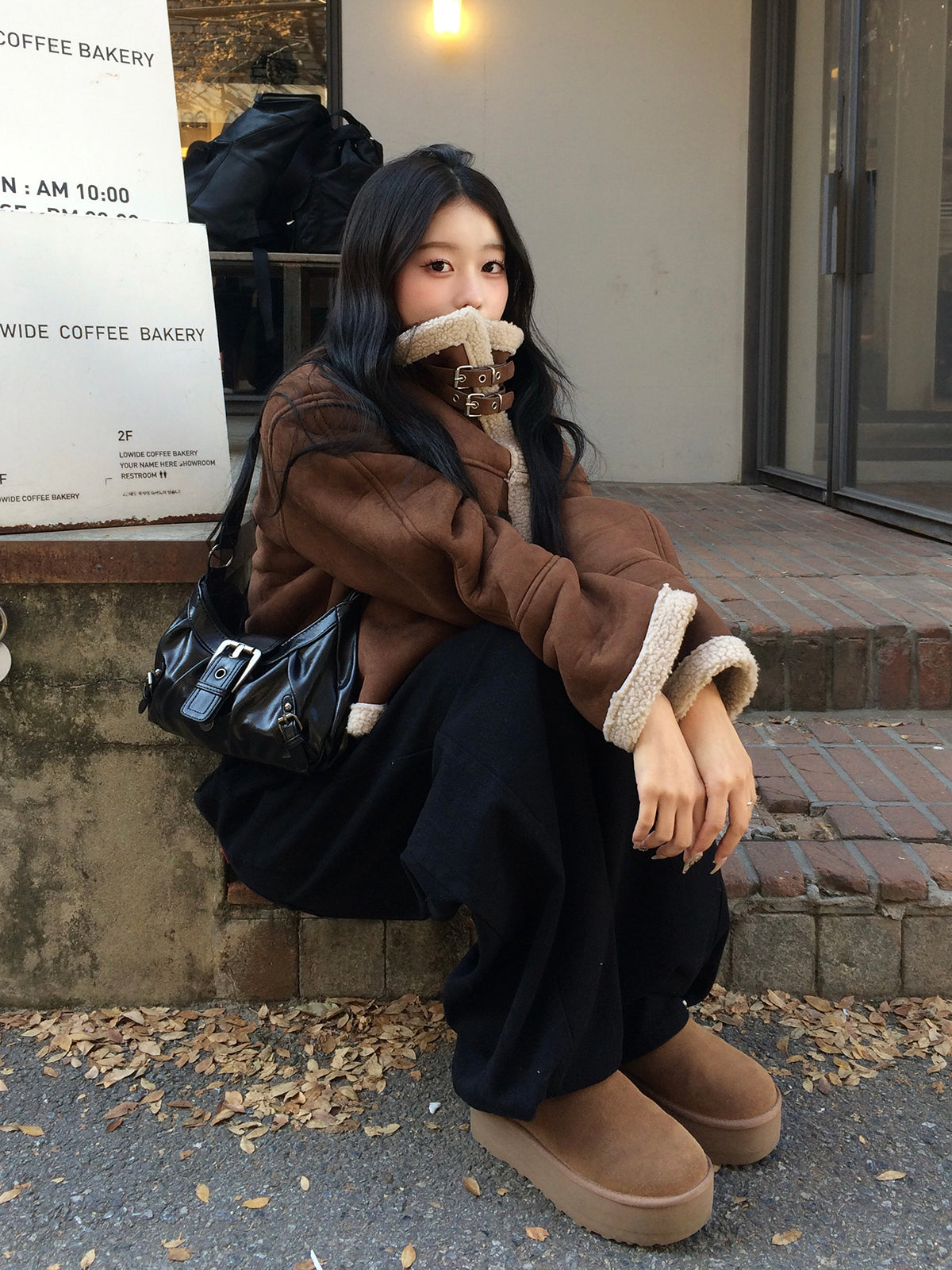 あたたかみのあるムートンタッチ素材とふんわりボアの組み合わせが魅力のコート。
