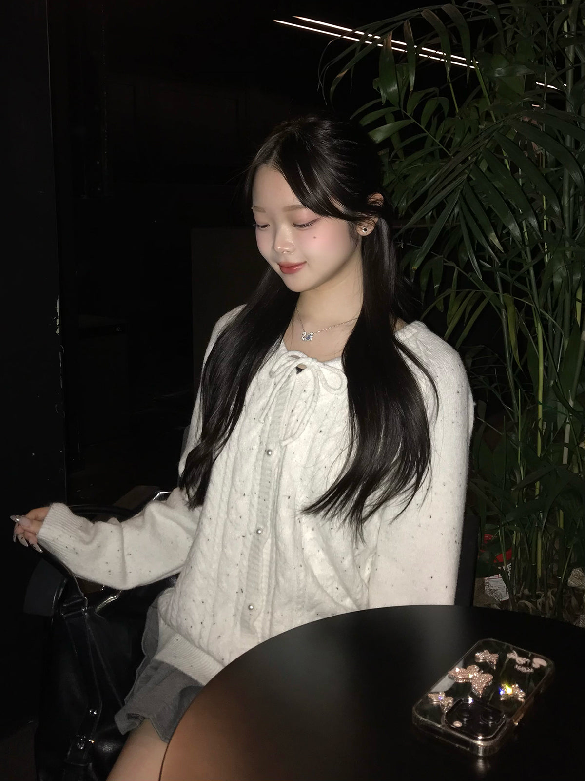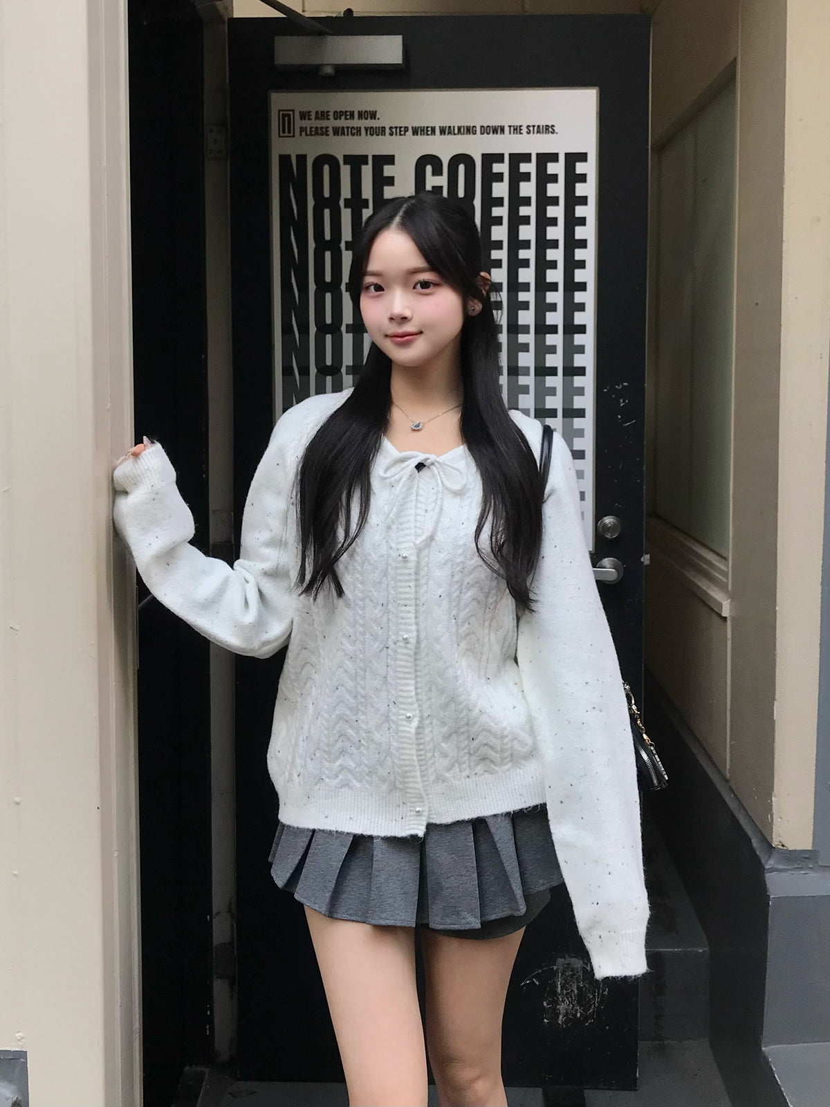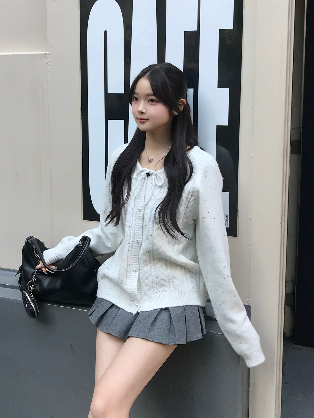 ところどころに散りばめられた粒がさりげない奥行きをつくるニットカーディガン。