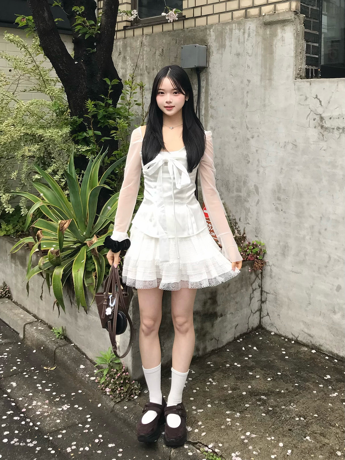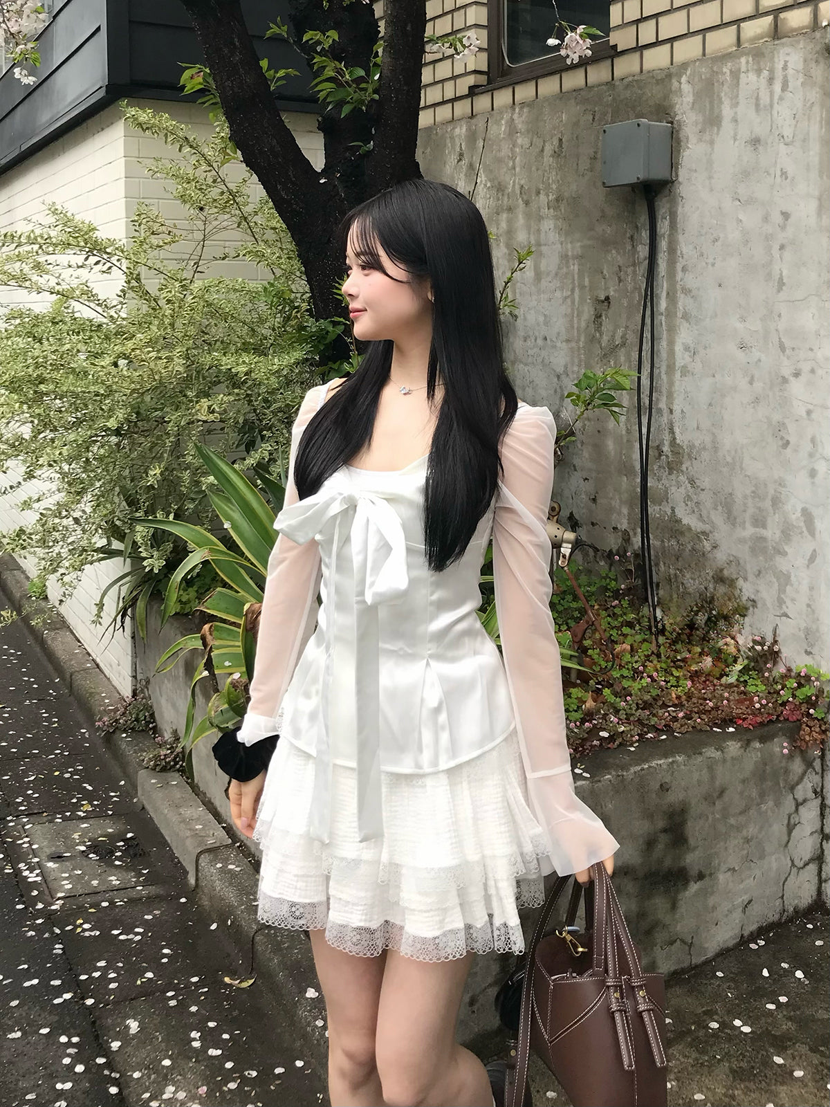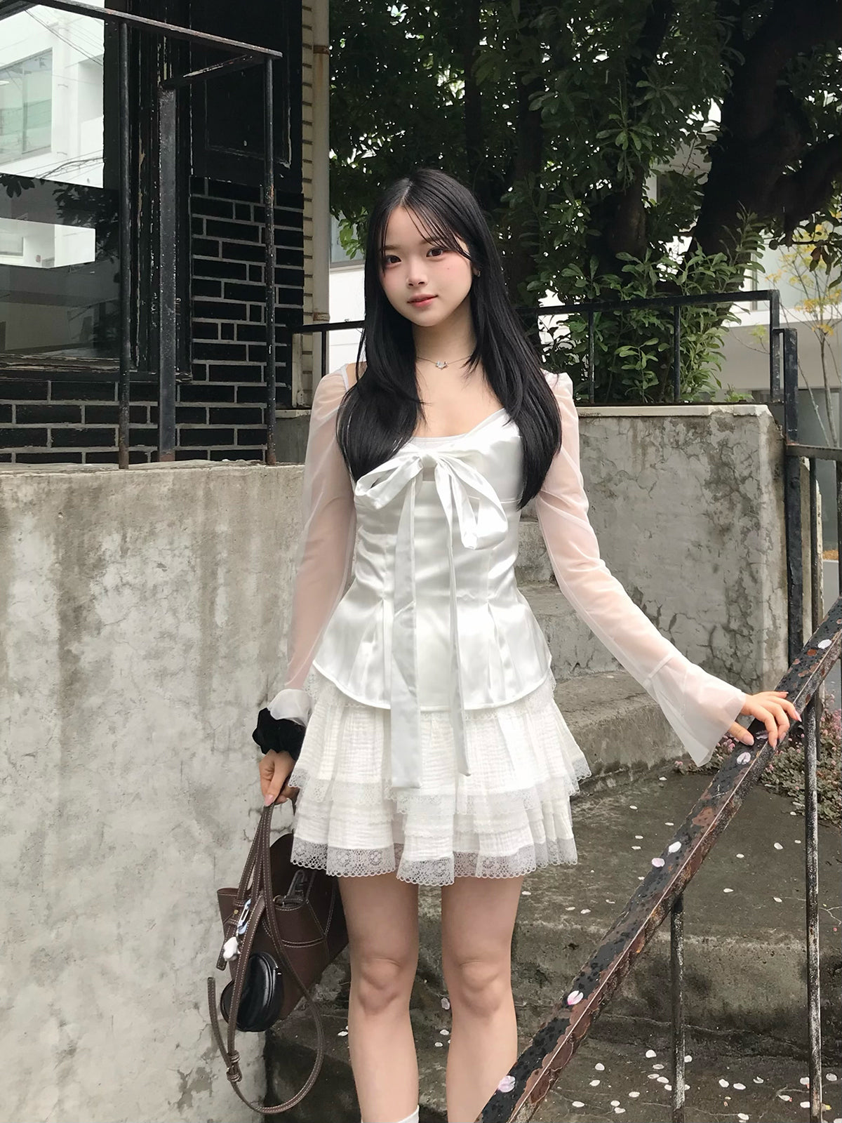 立体感のあるリボンディテールとタイデザインが、スタイリングに奥行きをプラス。